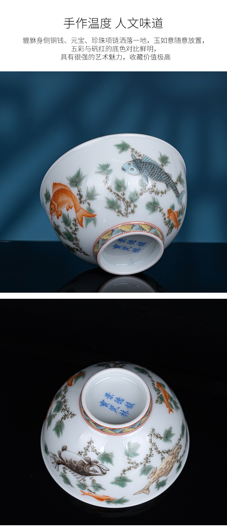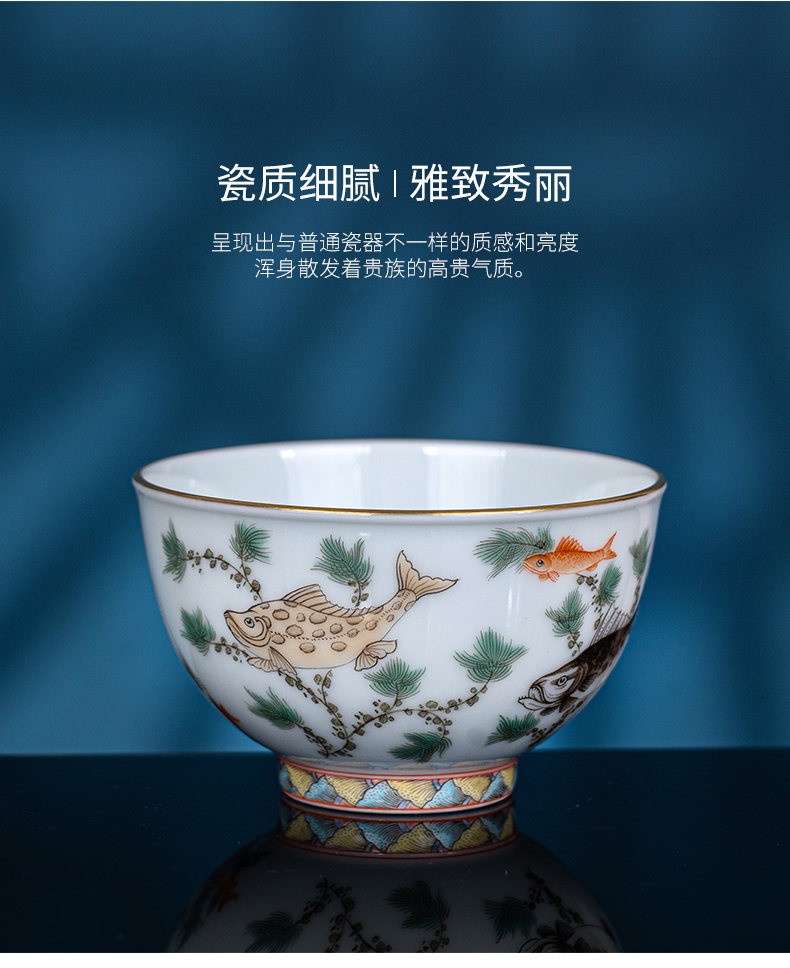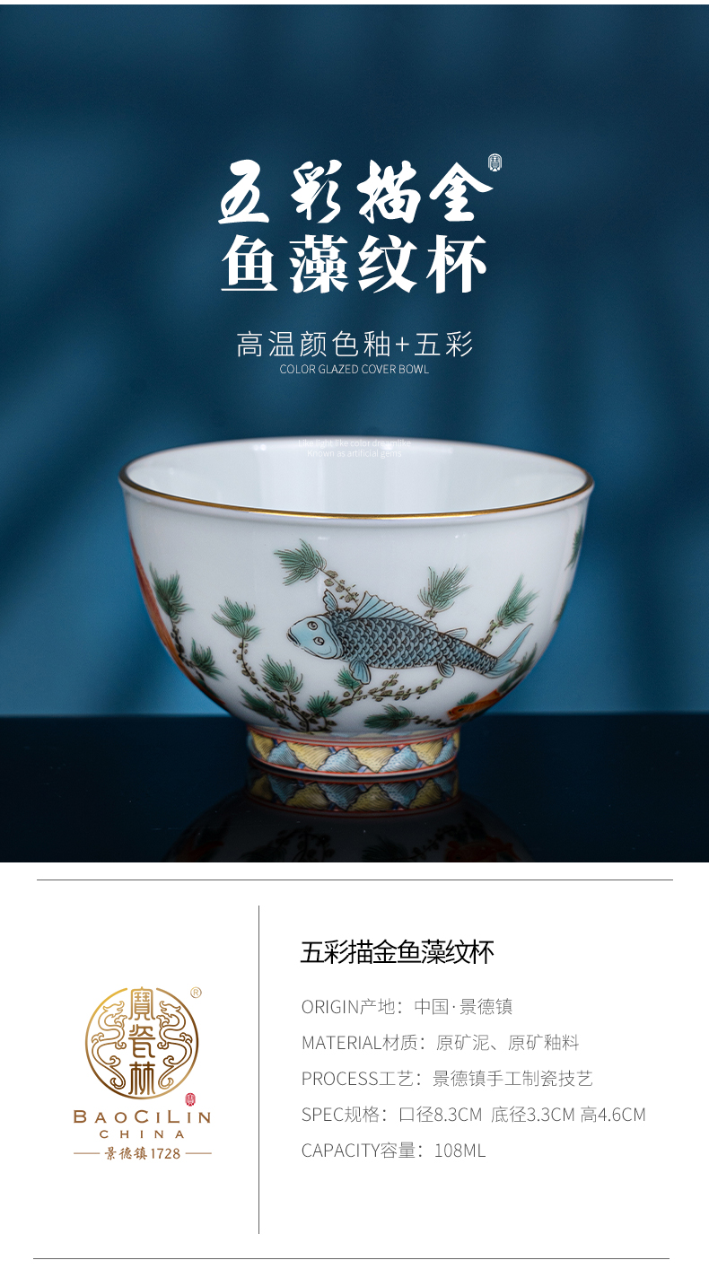 五彩描金鱼藻纹杯
