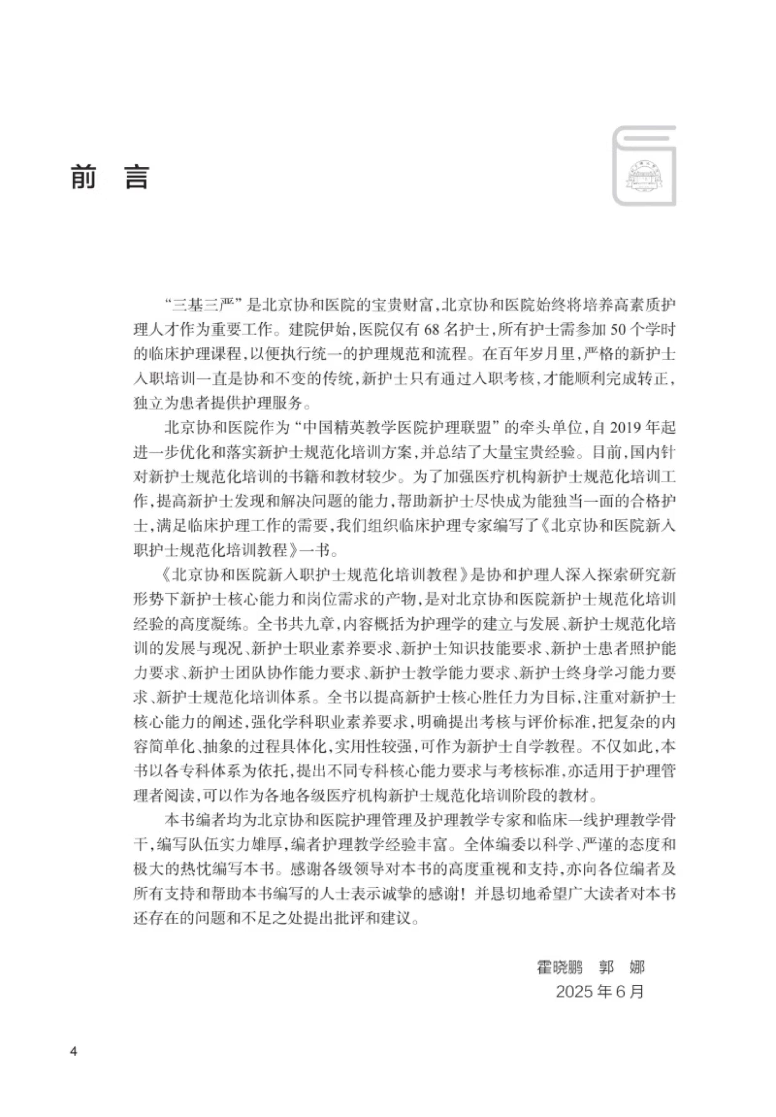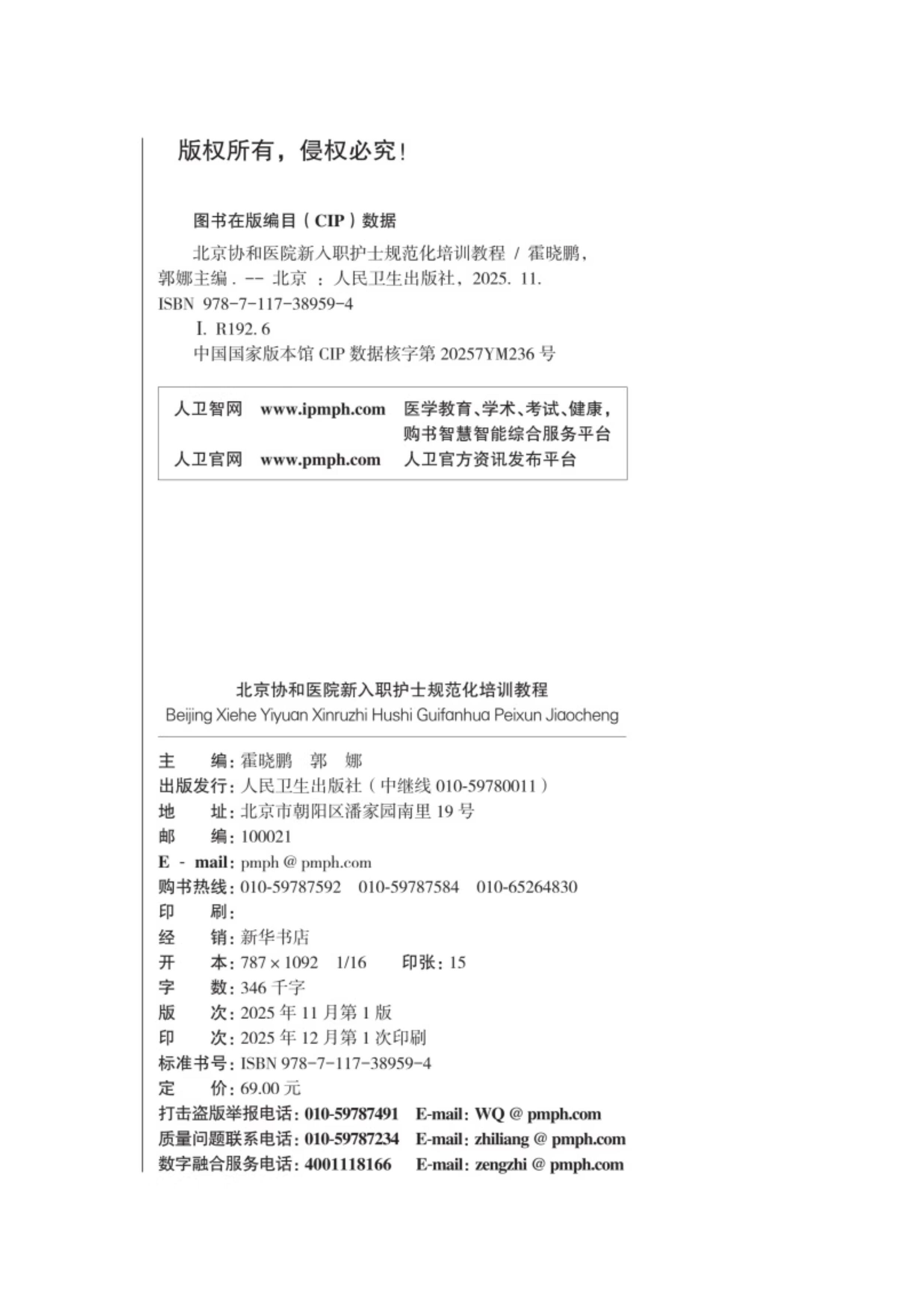 书名:北京协和医院新入职护士规范化培训教程