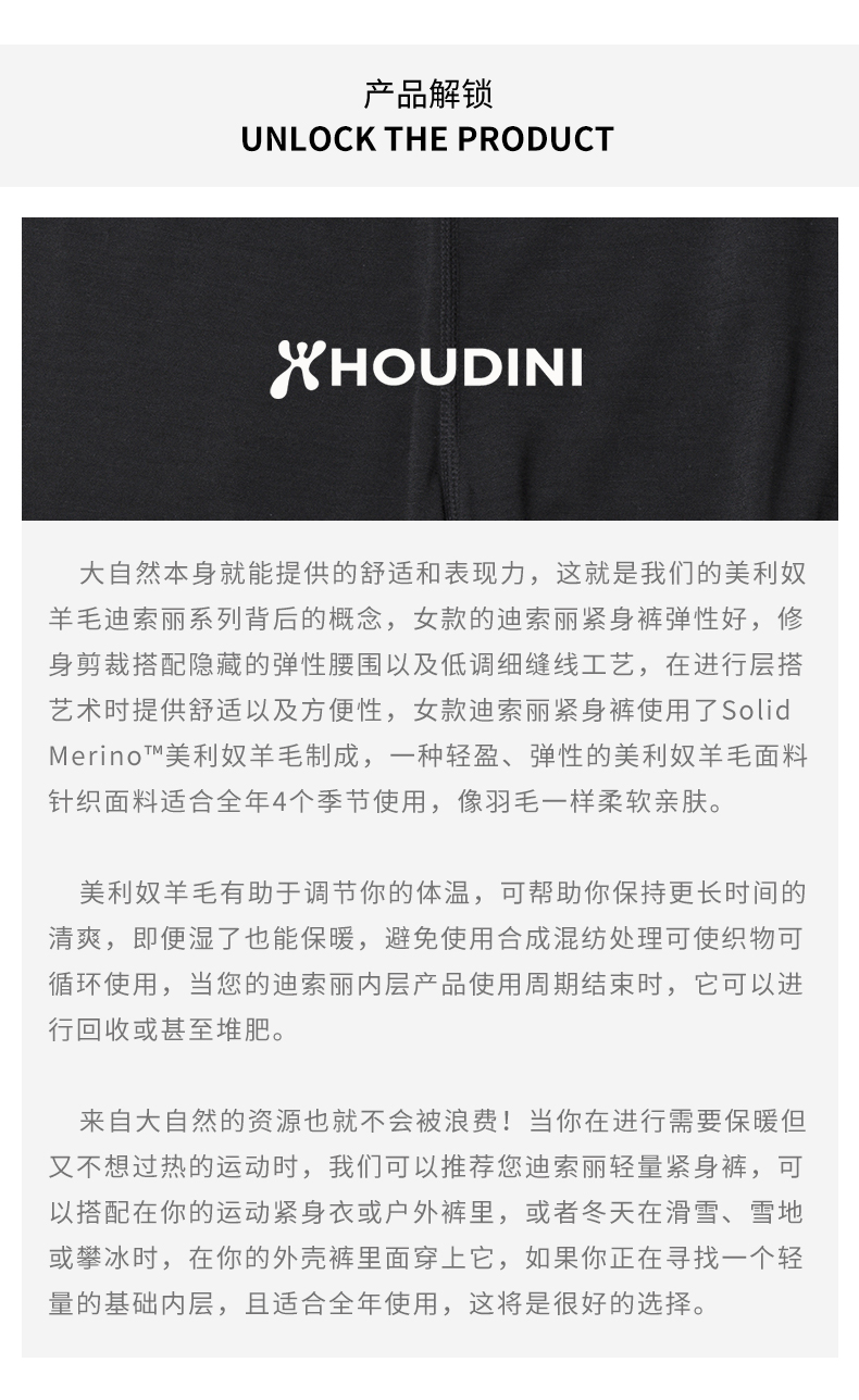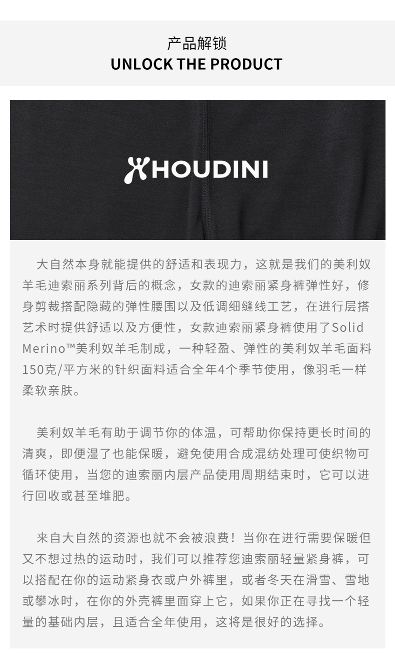HOUDINI胡丁尼 Desoli Light Tights 迪索丽 女保暖美利奴紧身裤 840028