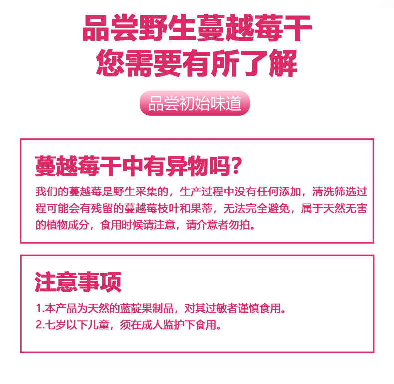 | 【产品特色:】 | 生长于小兴安岭自然保护区,精选深山老林中阳坡的野生蔓越莓。野生生长,香味浓郁,营养丰富。 |