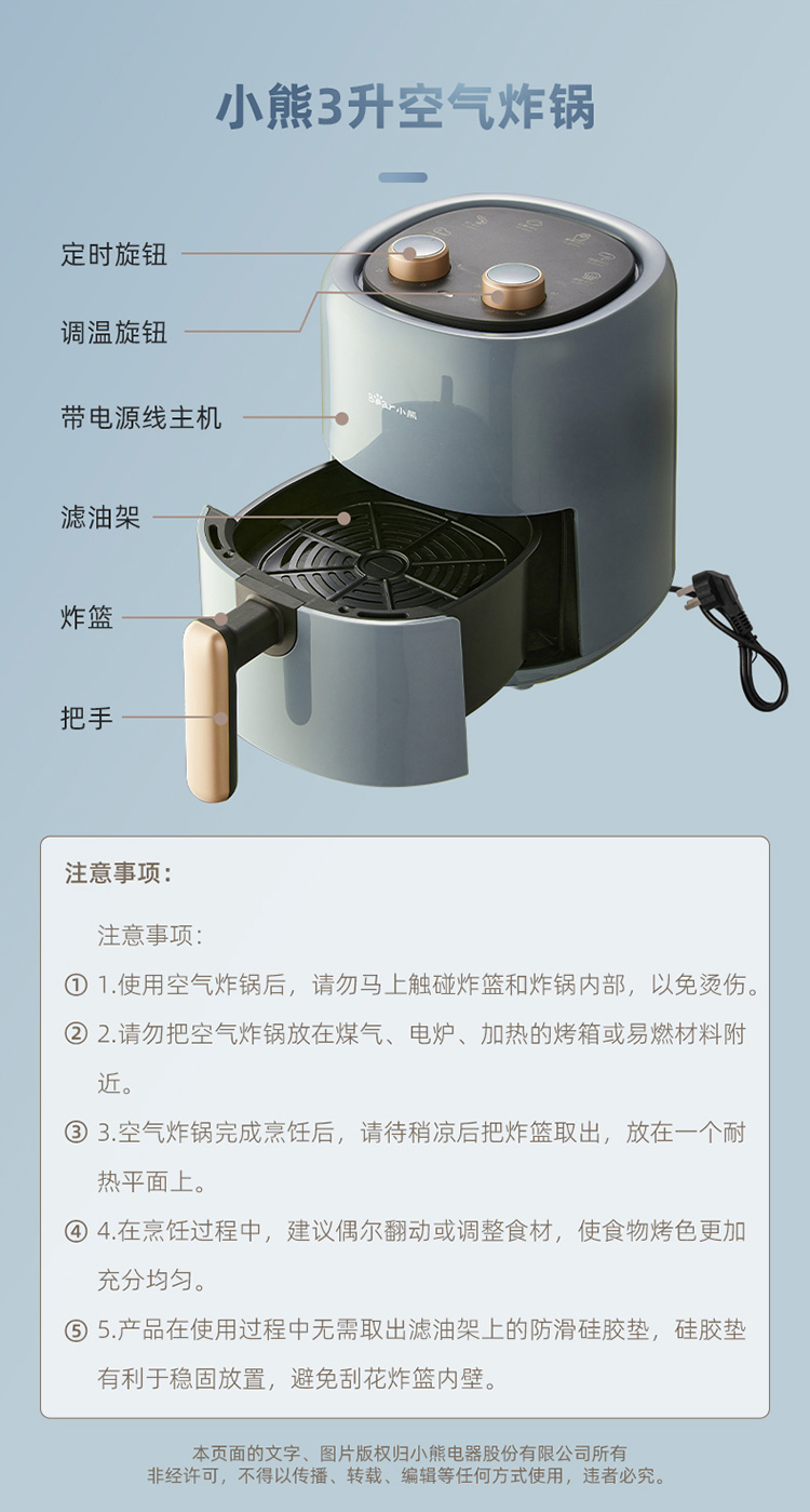 【快递】小熊3升微蒸汽空气炸锅QZG-E12W5