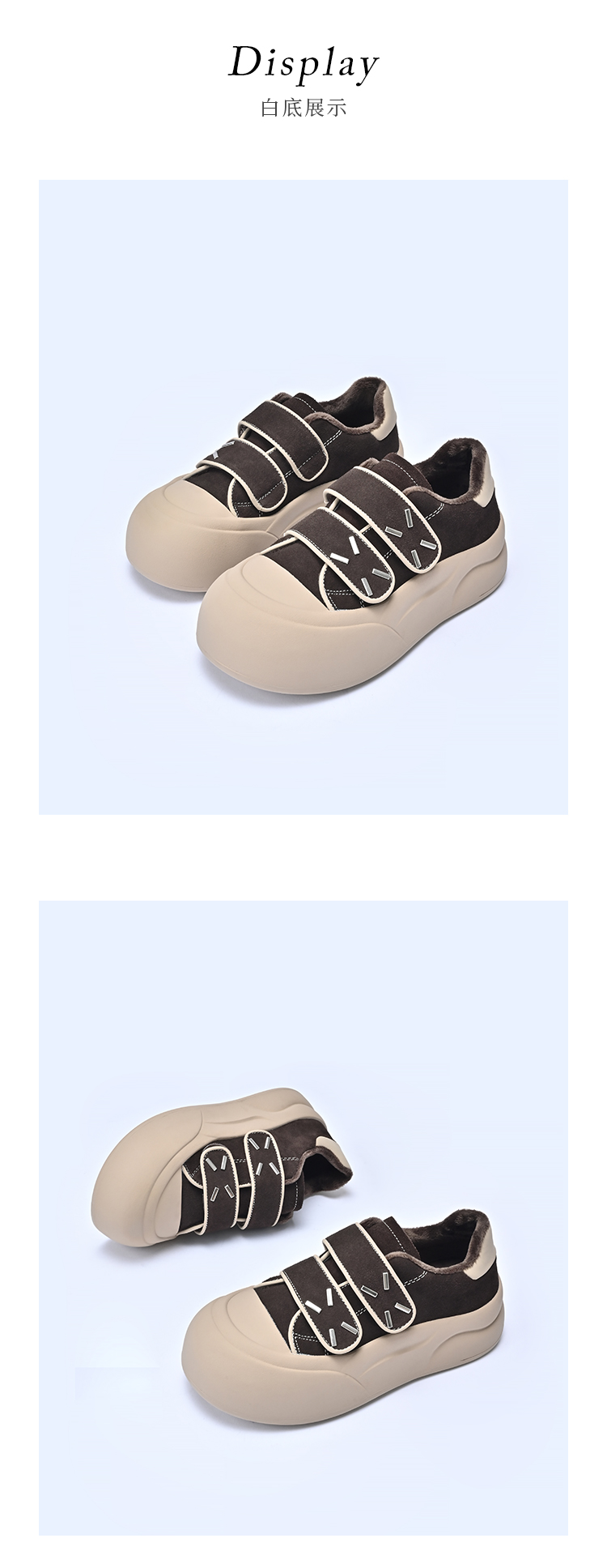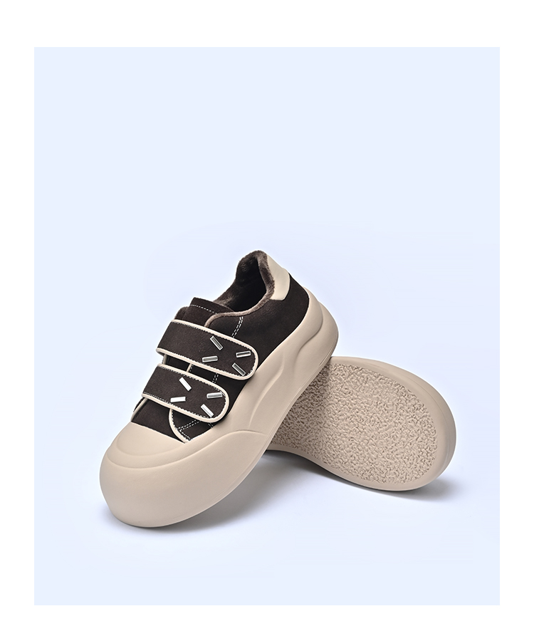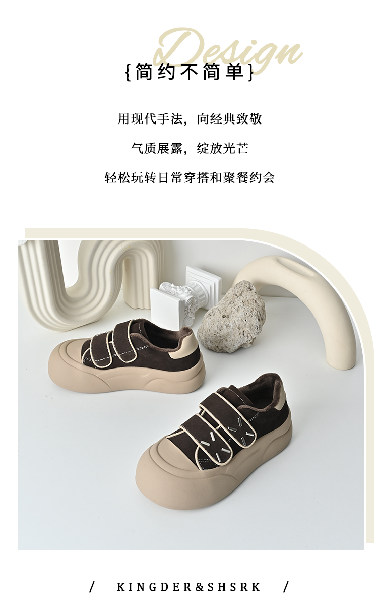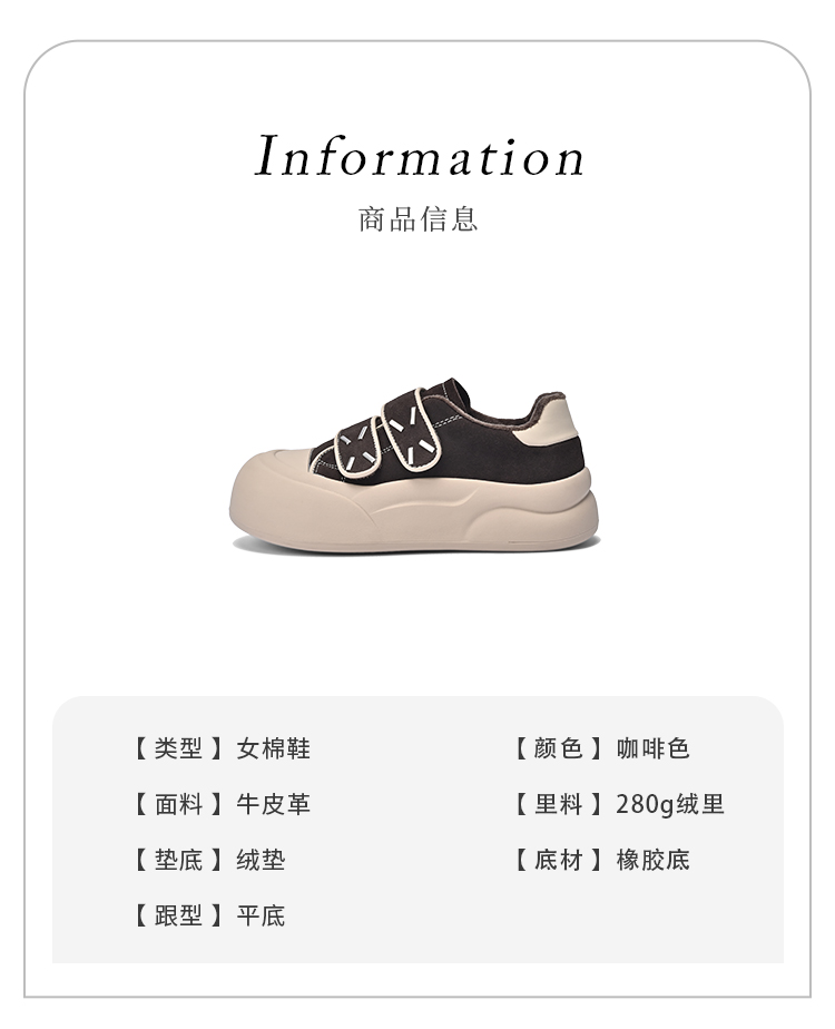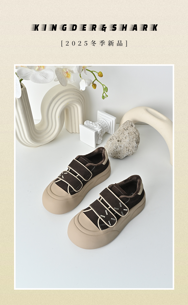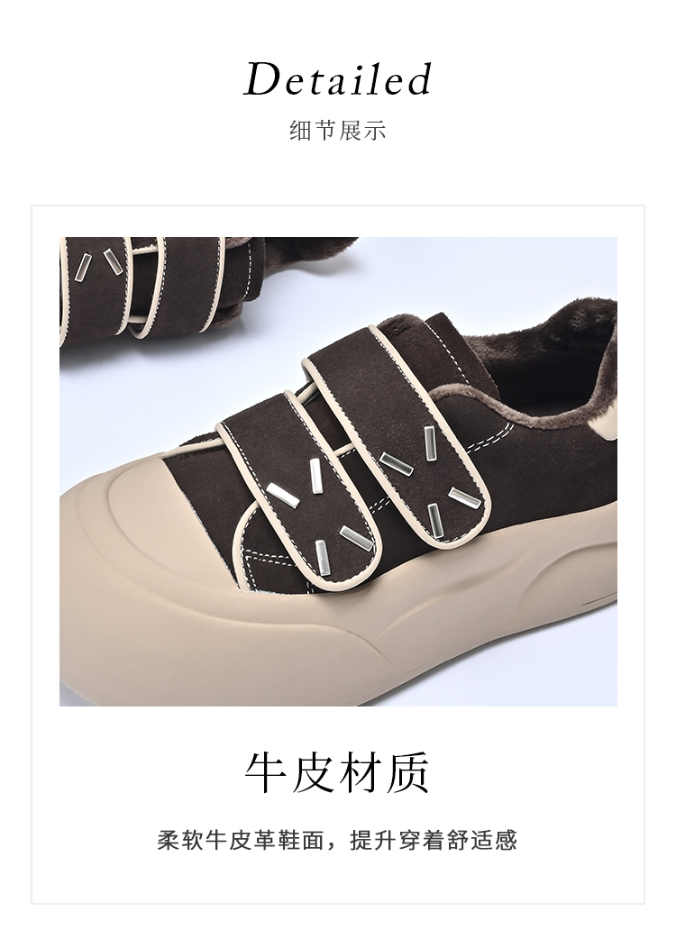 经典鲨2025冬季专柜新款牛皮革加绒厚底魔术贴休闲鞋棉鞋女KW396-558021