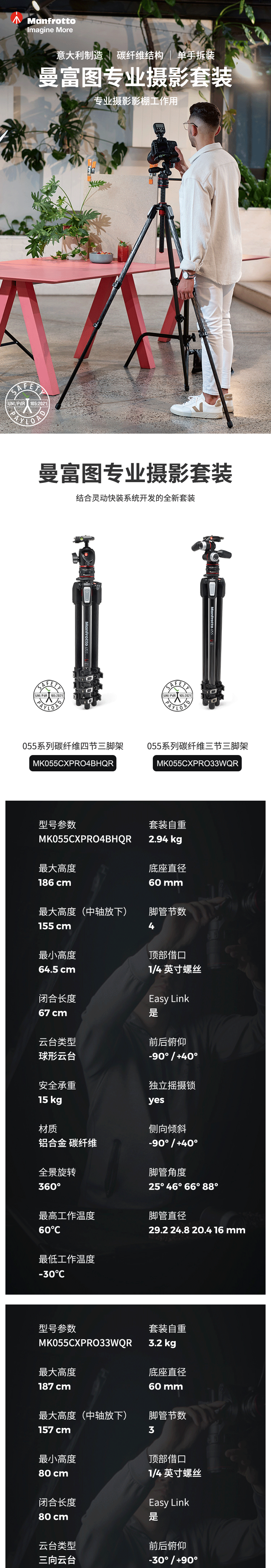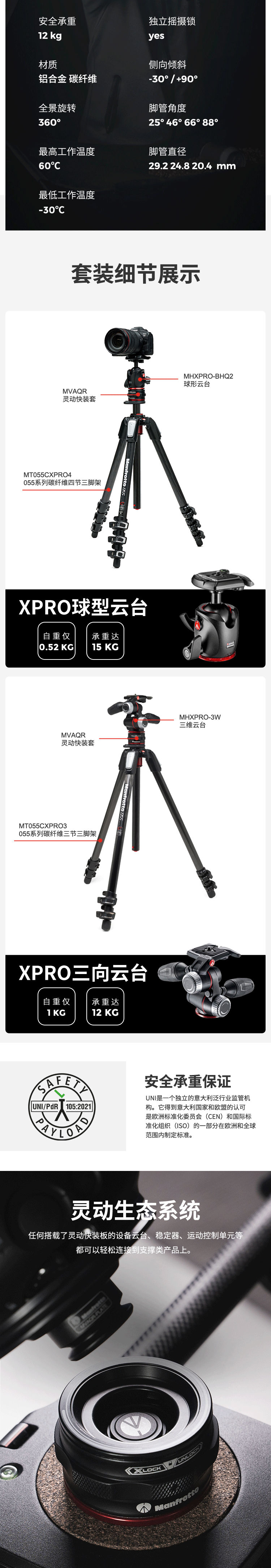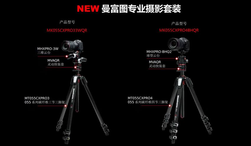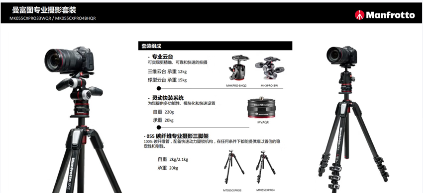 曼富图MK055CXPRO4BHQR 055系列碳纤维四节球型云台灵动快装套