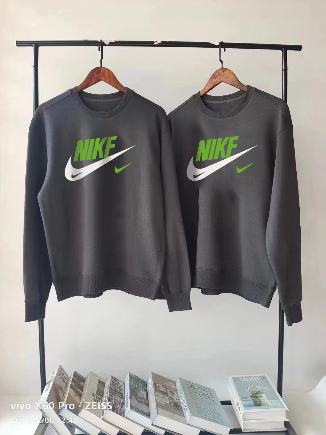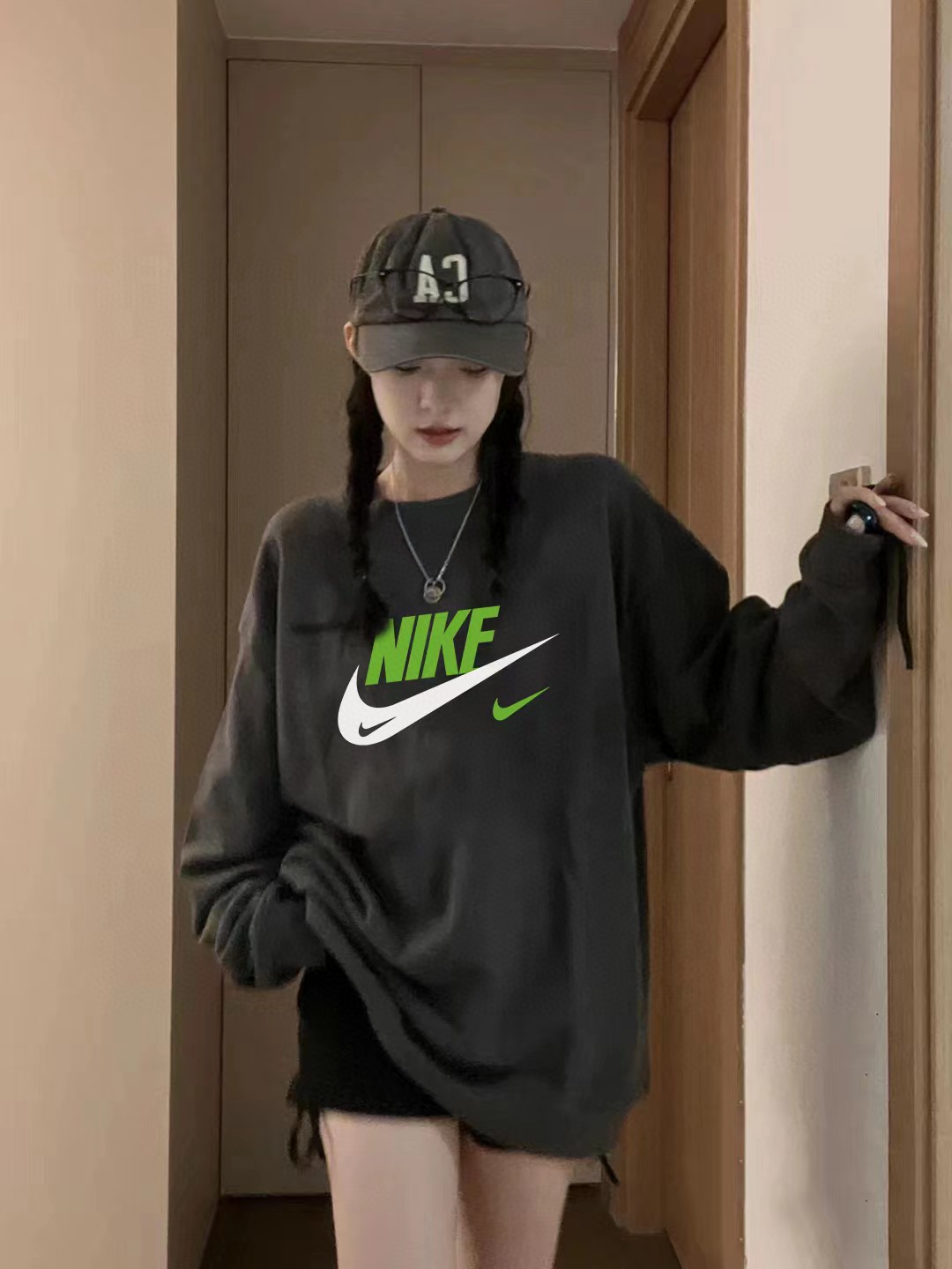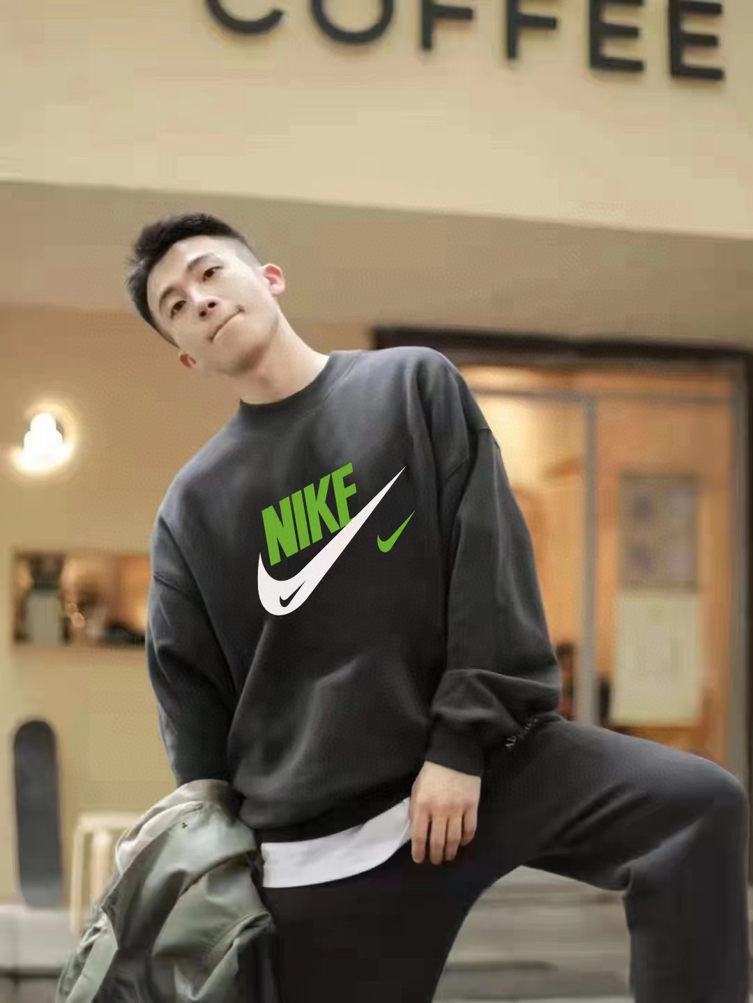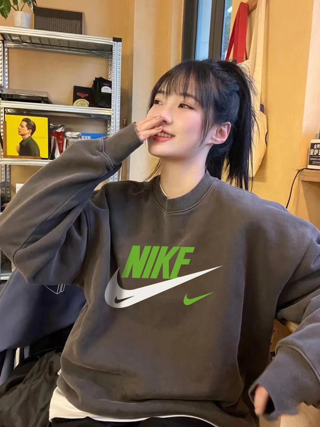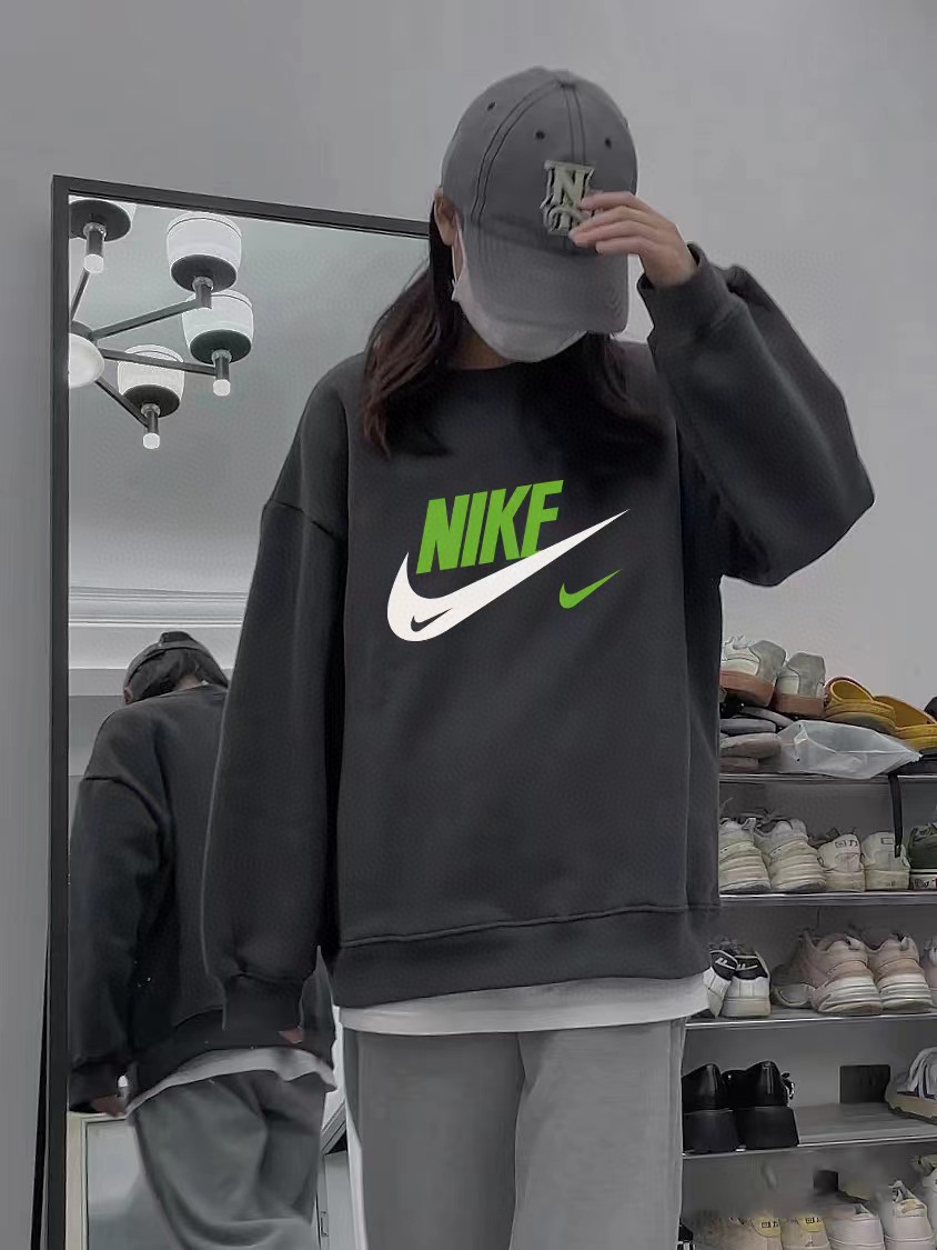 奈克新款高级灰水泥灰印花圆领卫衣情侣款