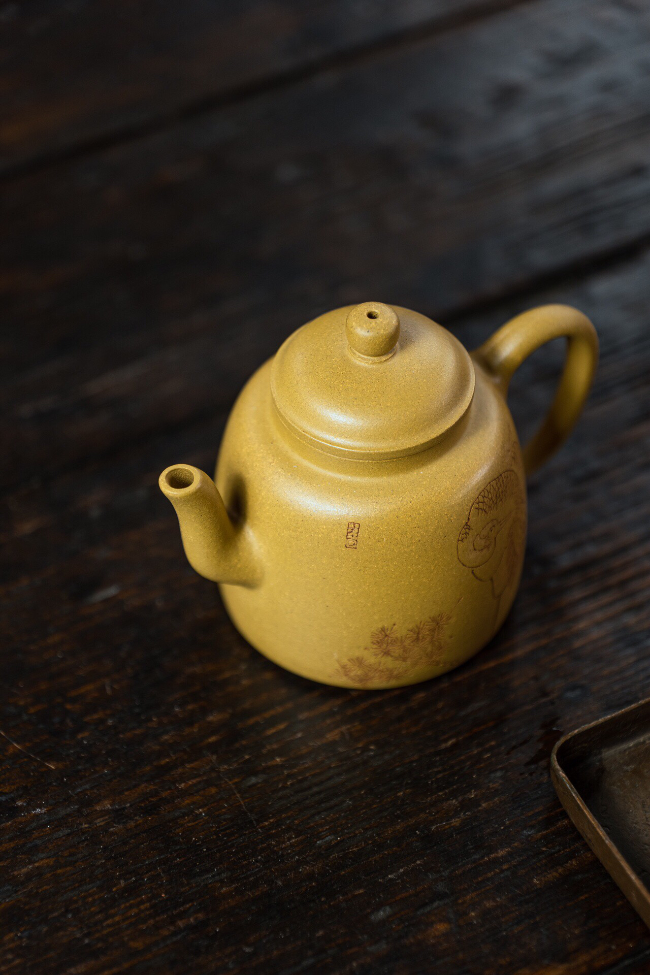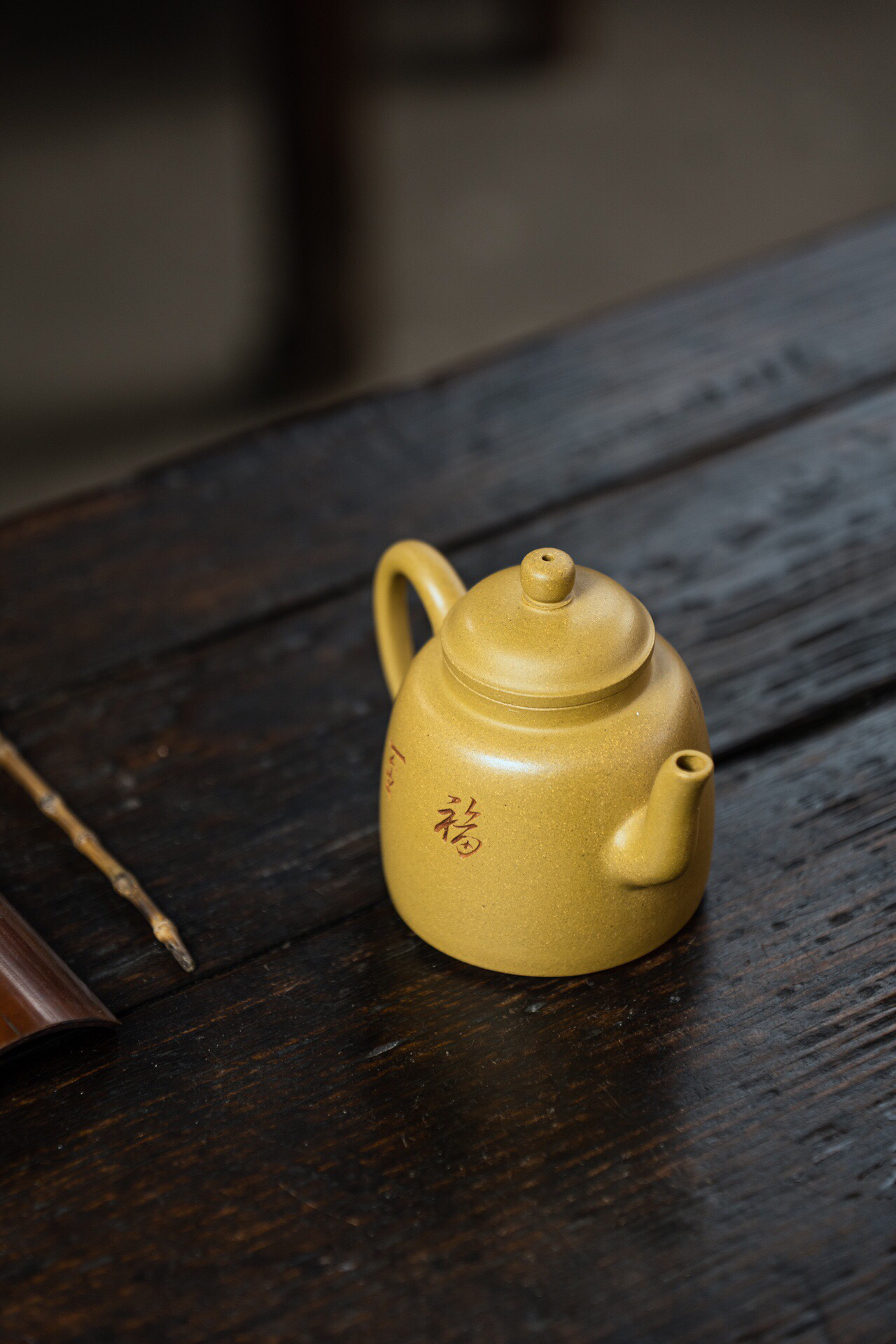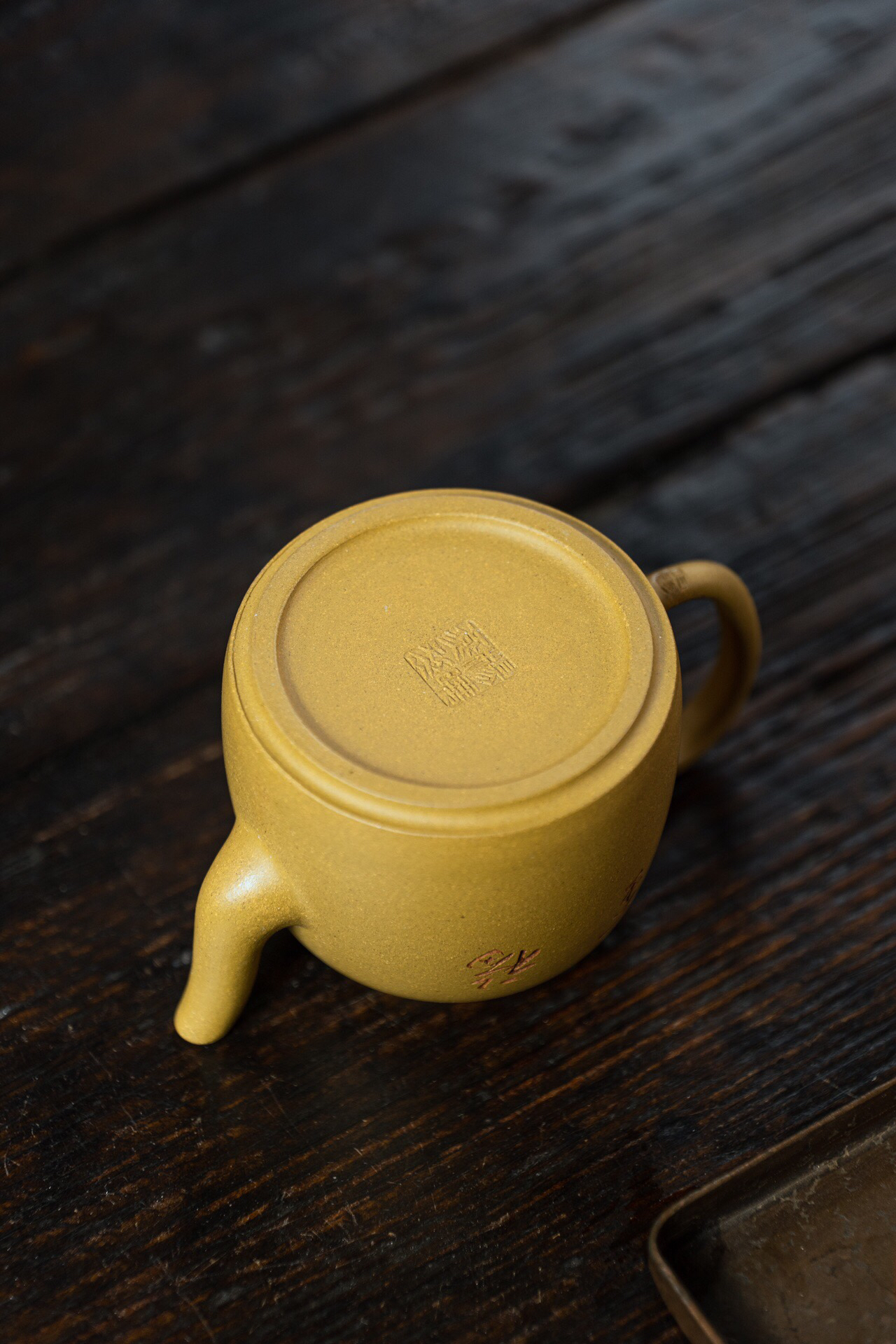 【青山特惠】宜兴 原矿黄金段泥 明执手工紫砂壶.160cc.杨晓燕. 乐之刻绘