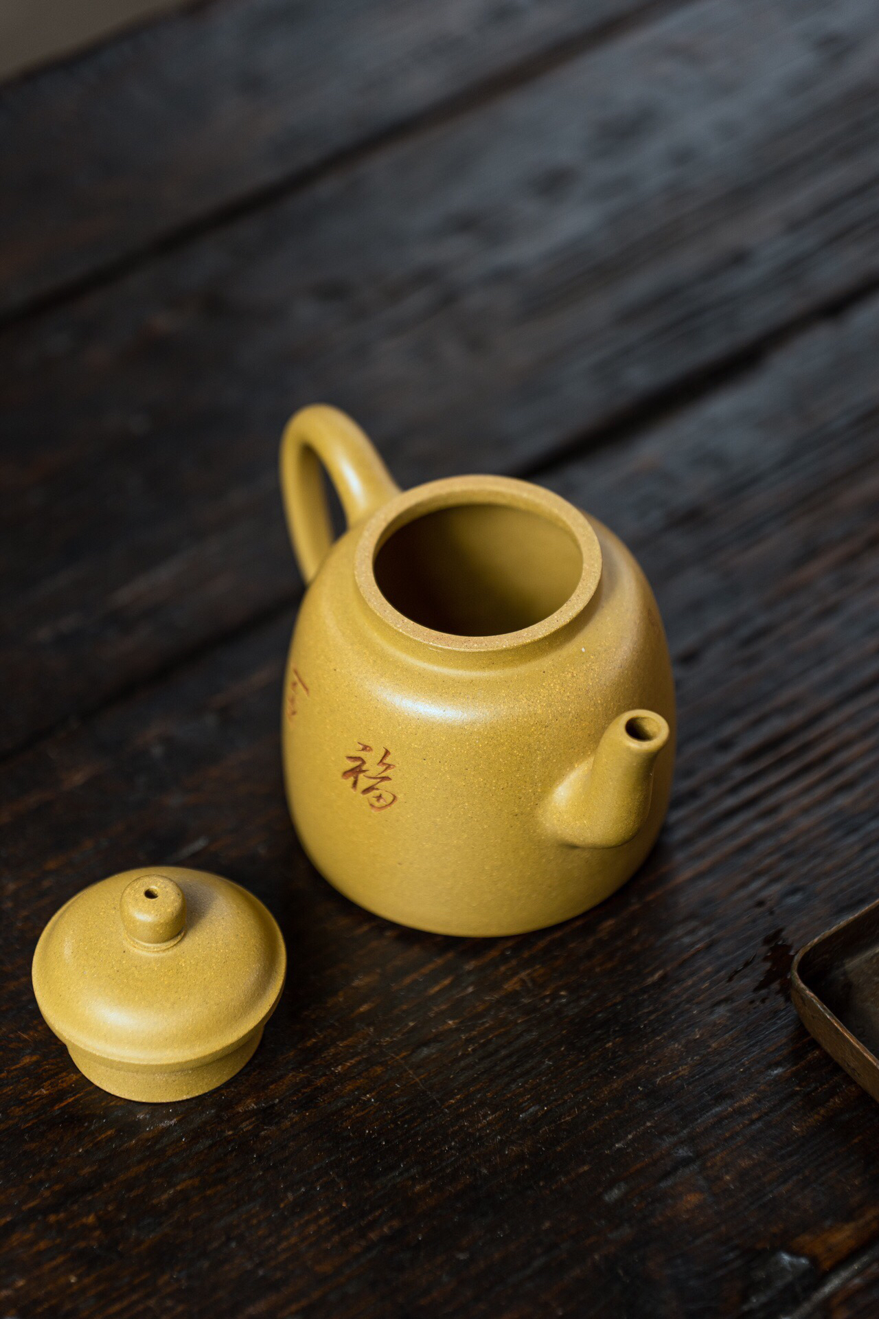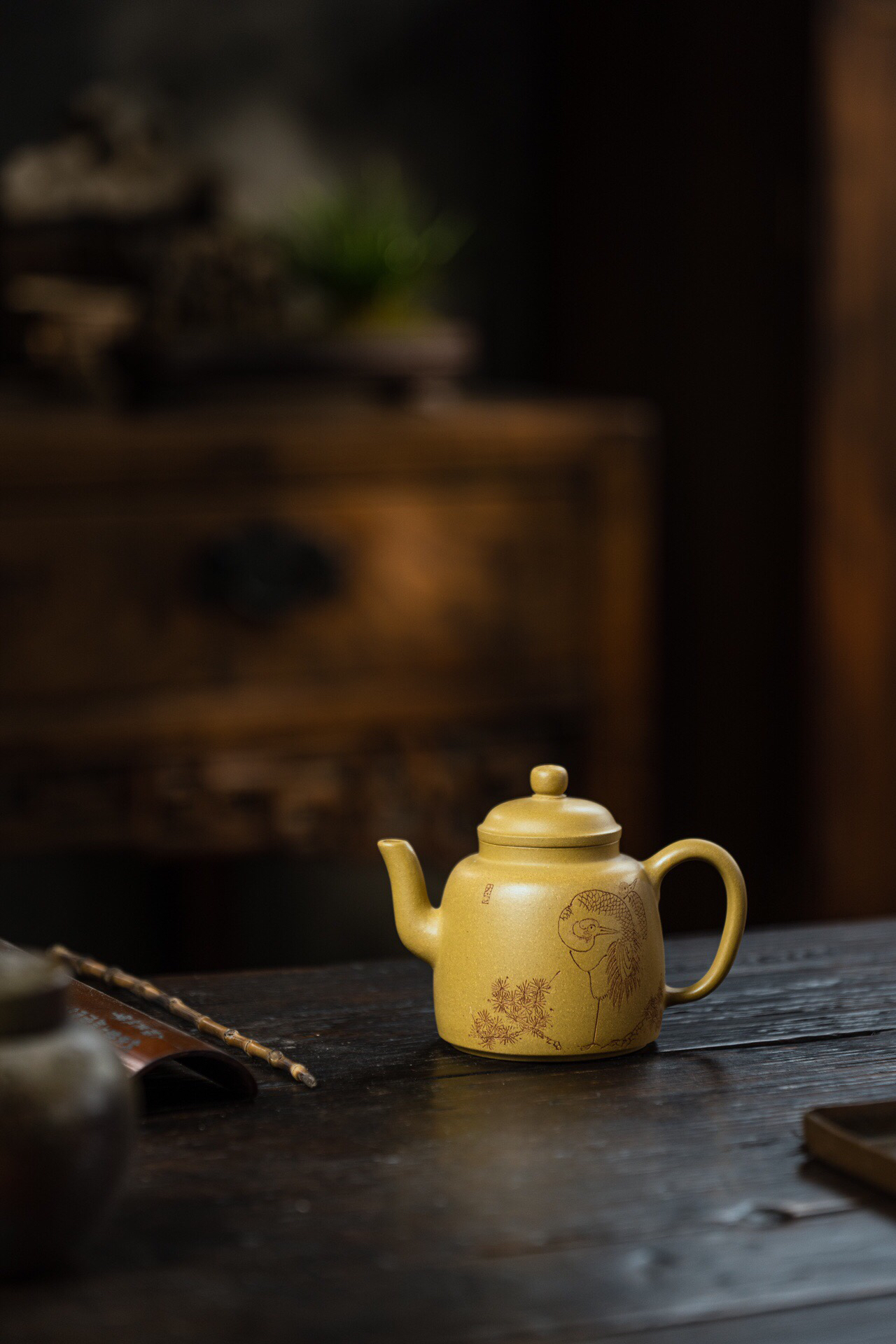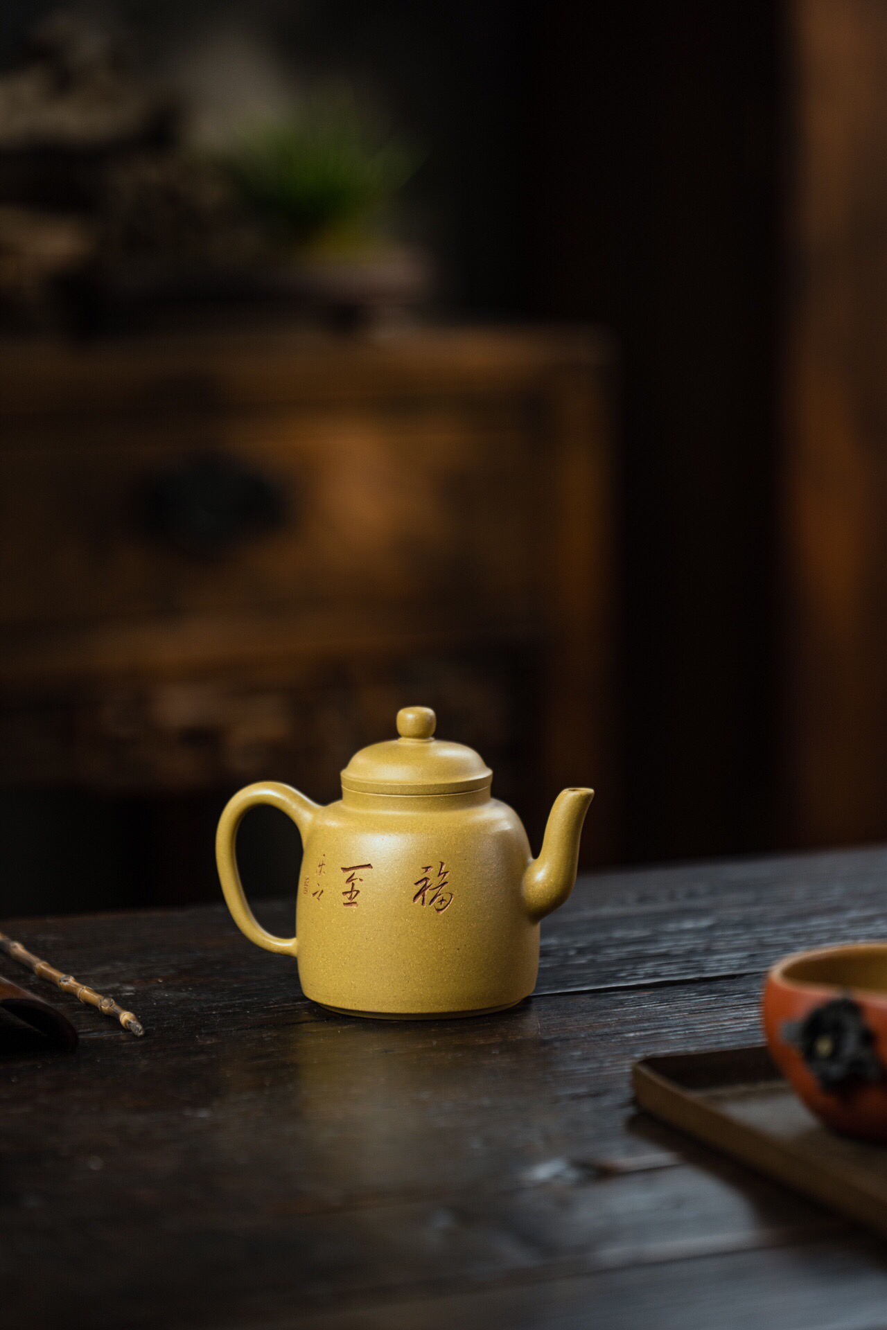 【青山特惠】宜兴 原矿黄金段泥 明执手工紫砂壶.160cc.杨晓燕. 乐之刻绘