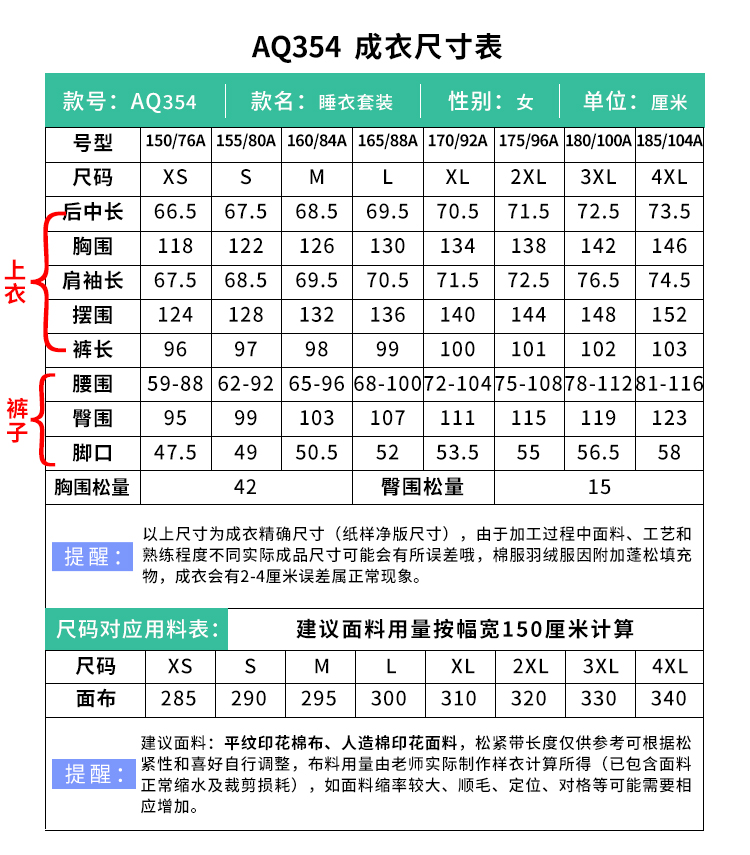 裁缝学苑AQ354中长款睡衣纸样家居服长袖女装人造棉套装打板裁剪