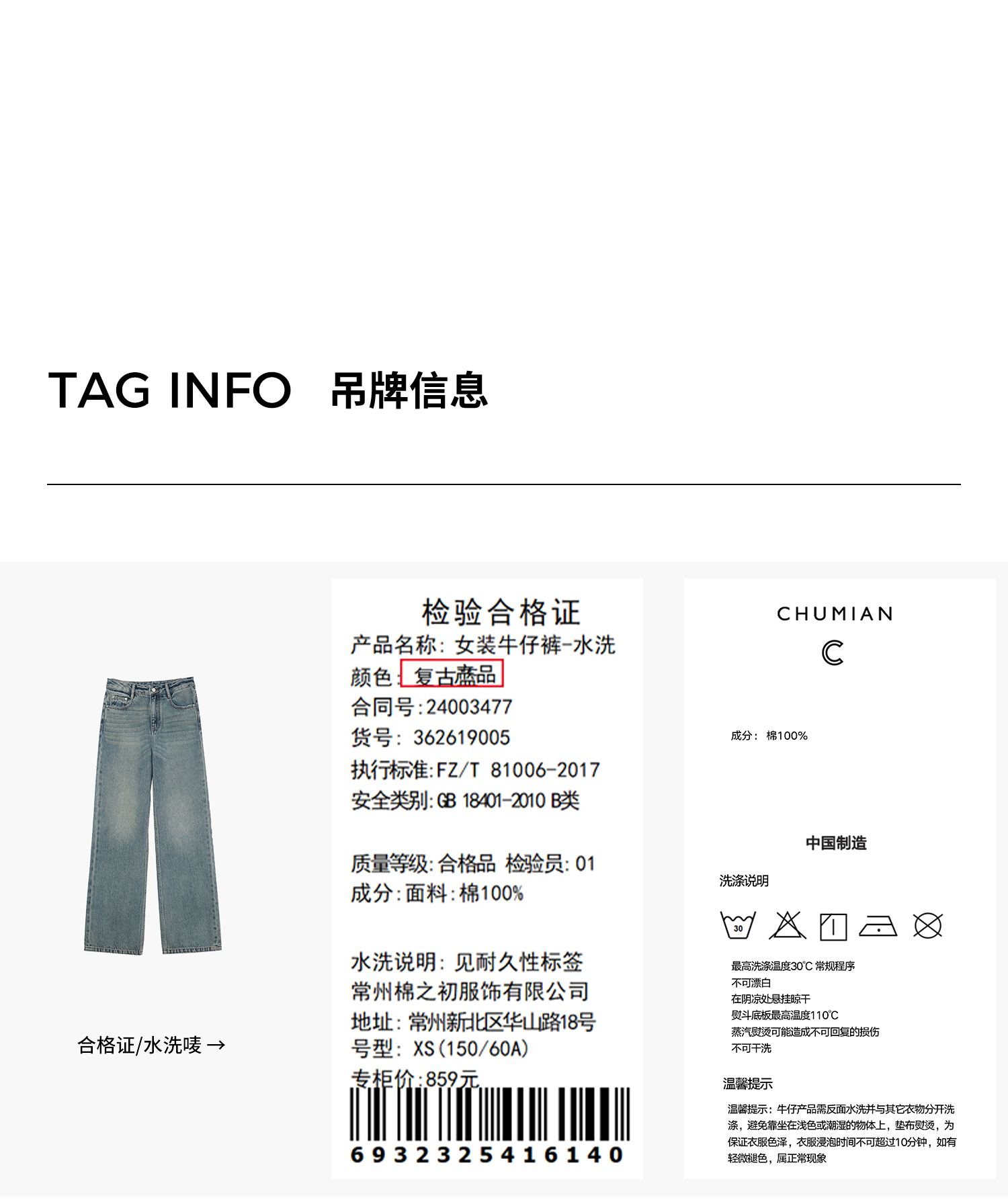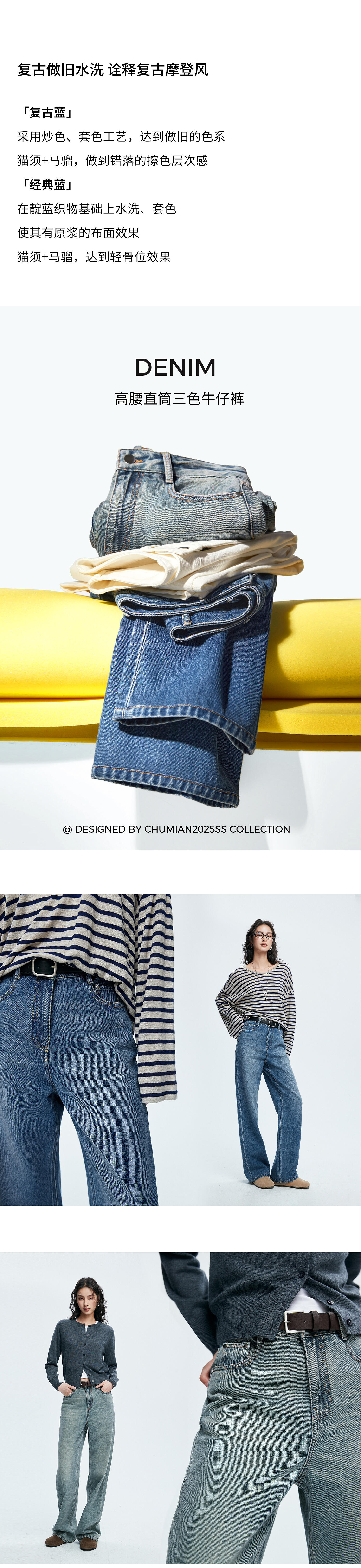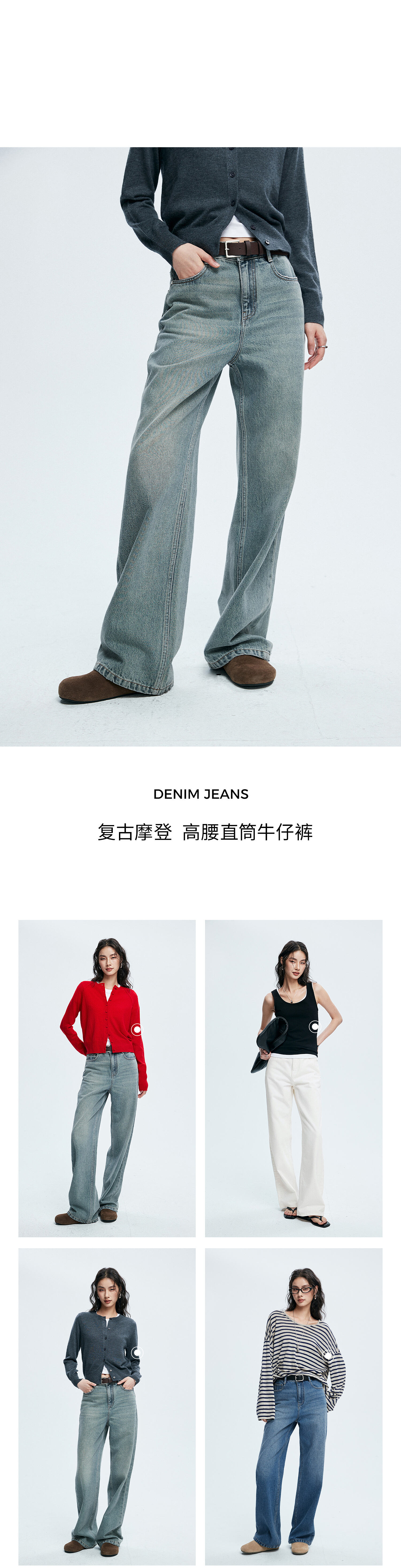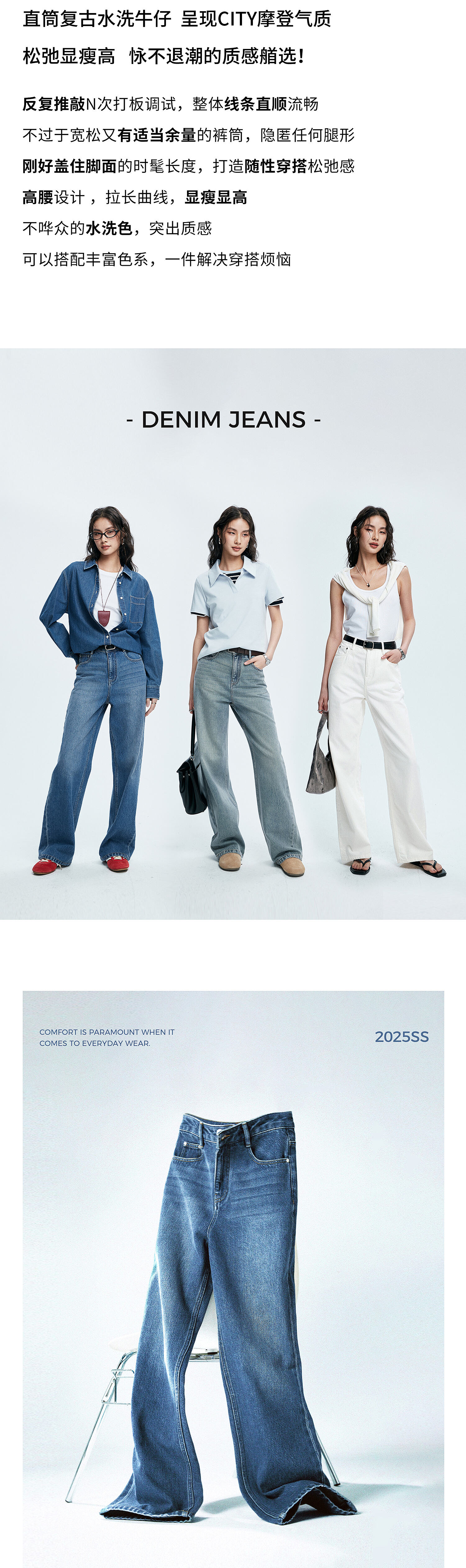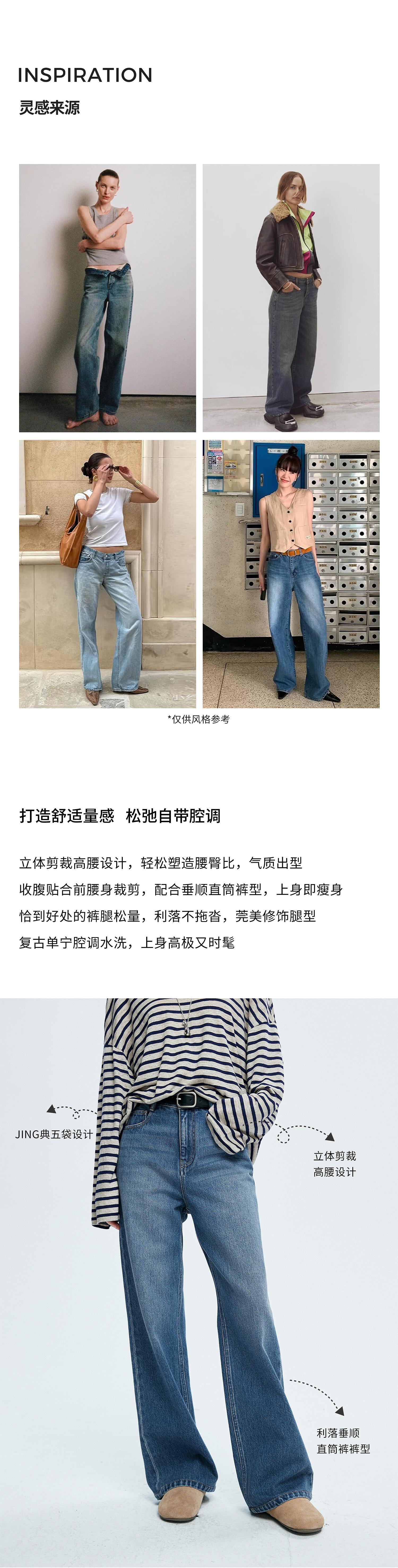 棉仓362619005-理想牛仔,高腰直筒复古丹宁,拖地裤神裤