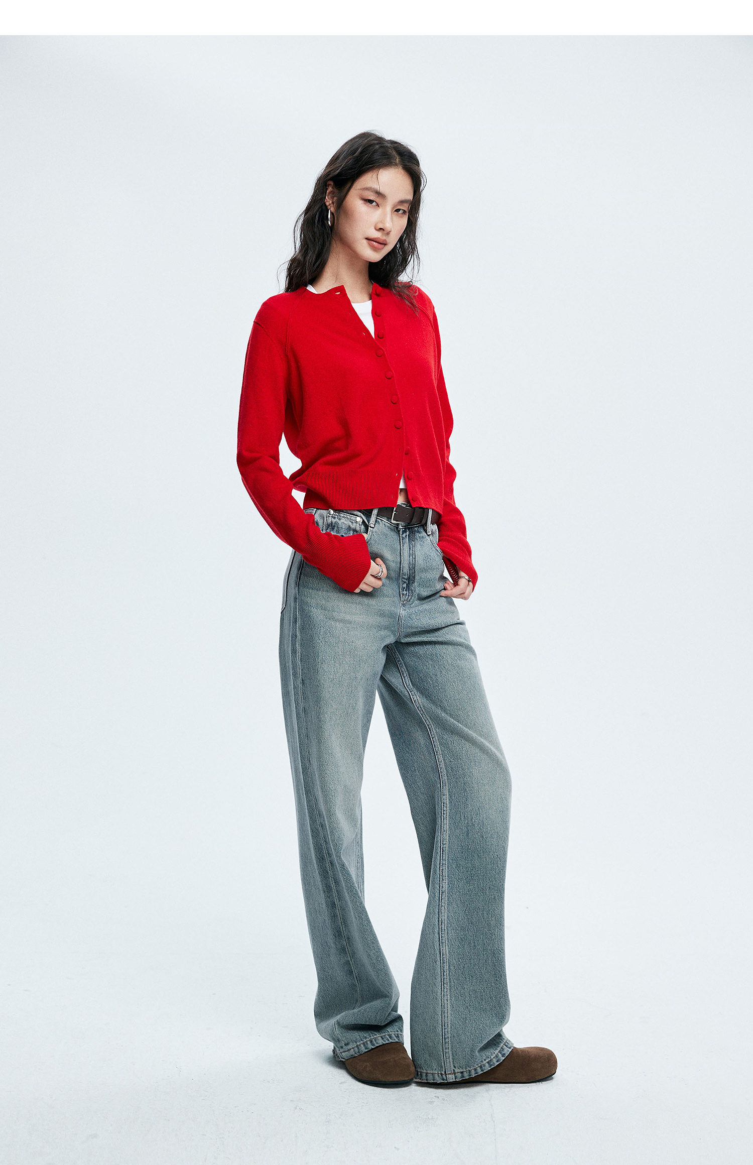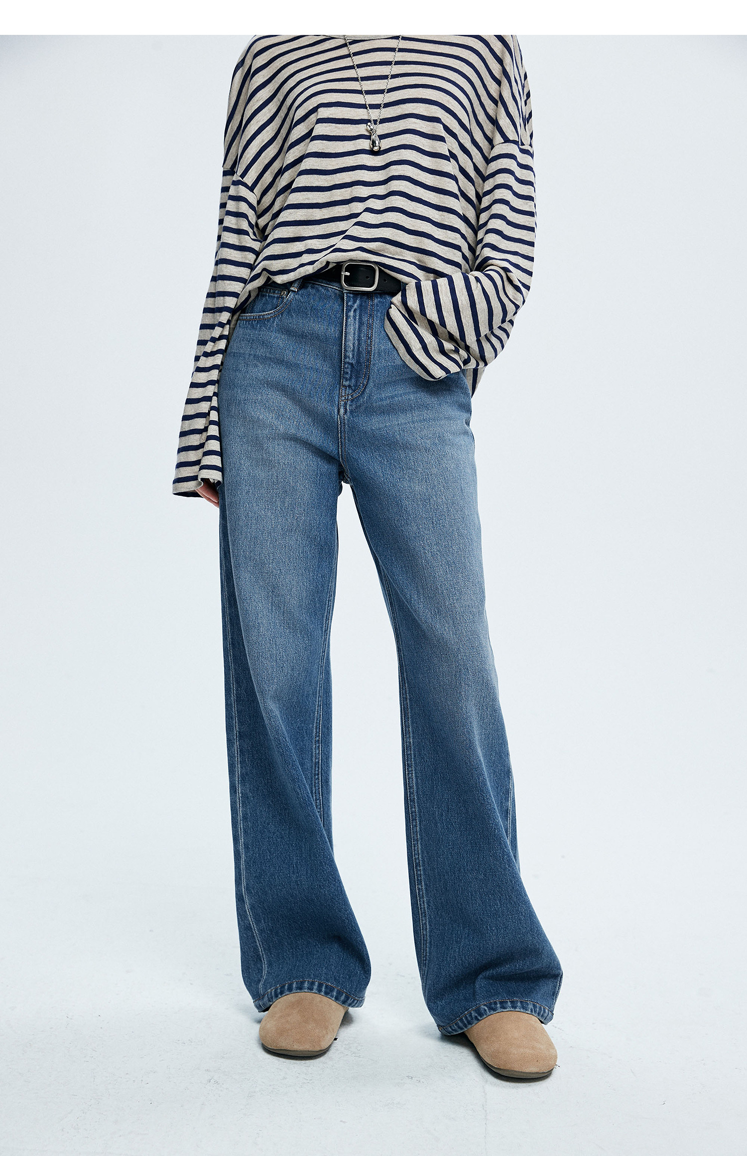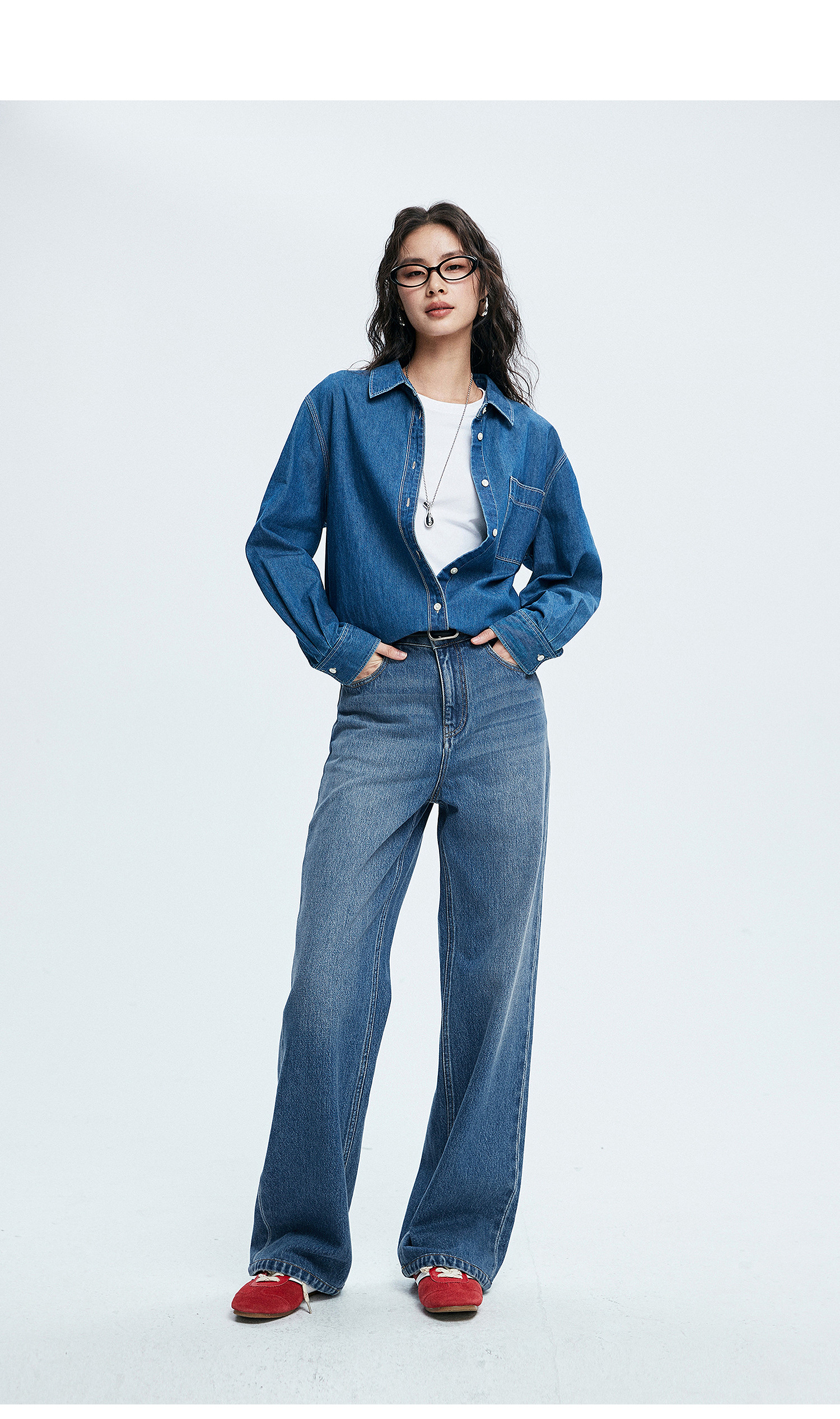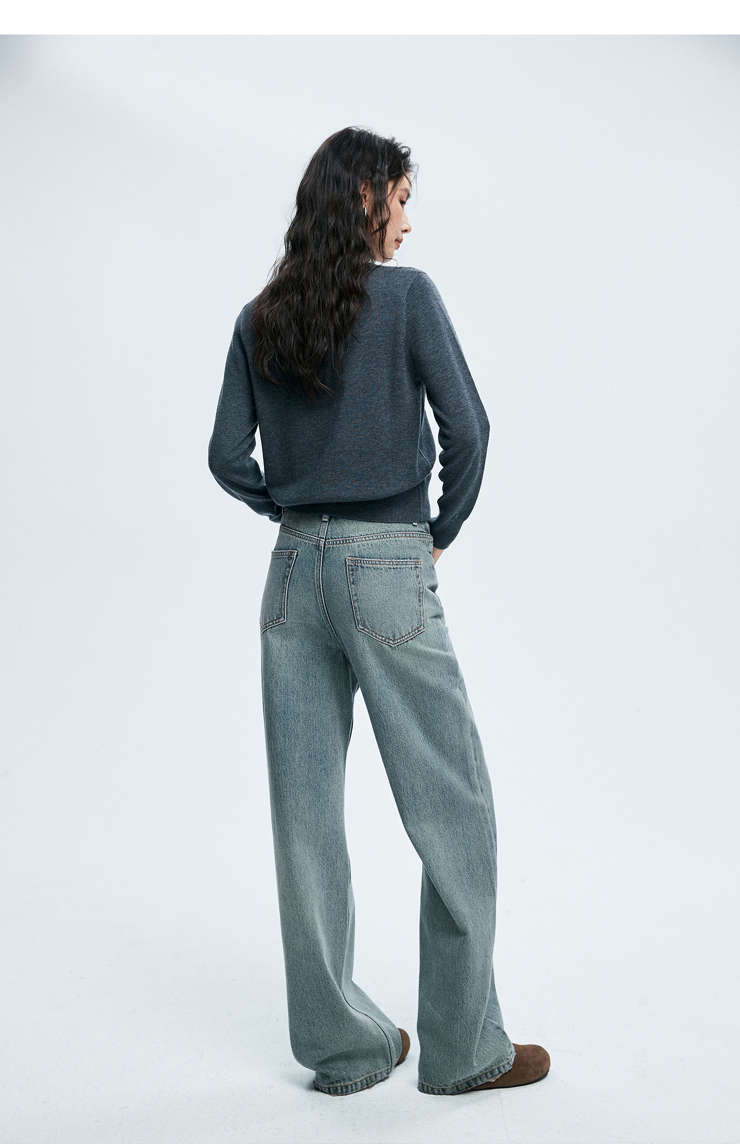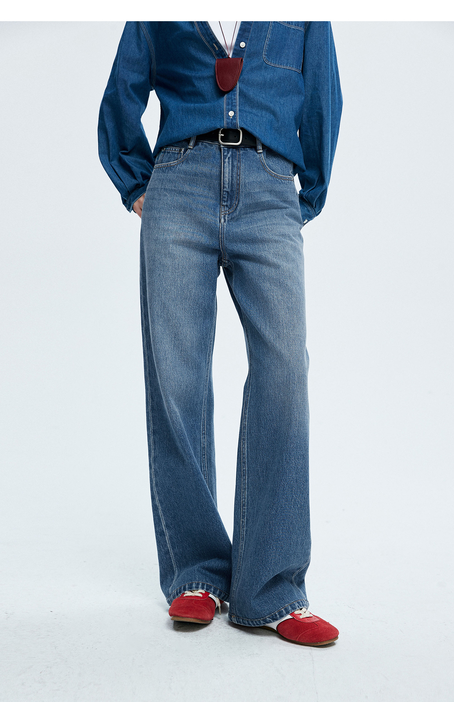 棉仓362619005-理想牛仔,高腰直筒复古丹宁,拖地裤神裤
