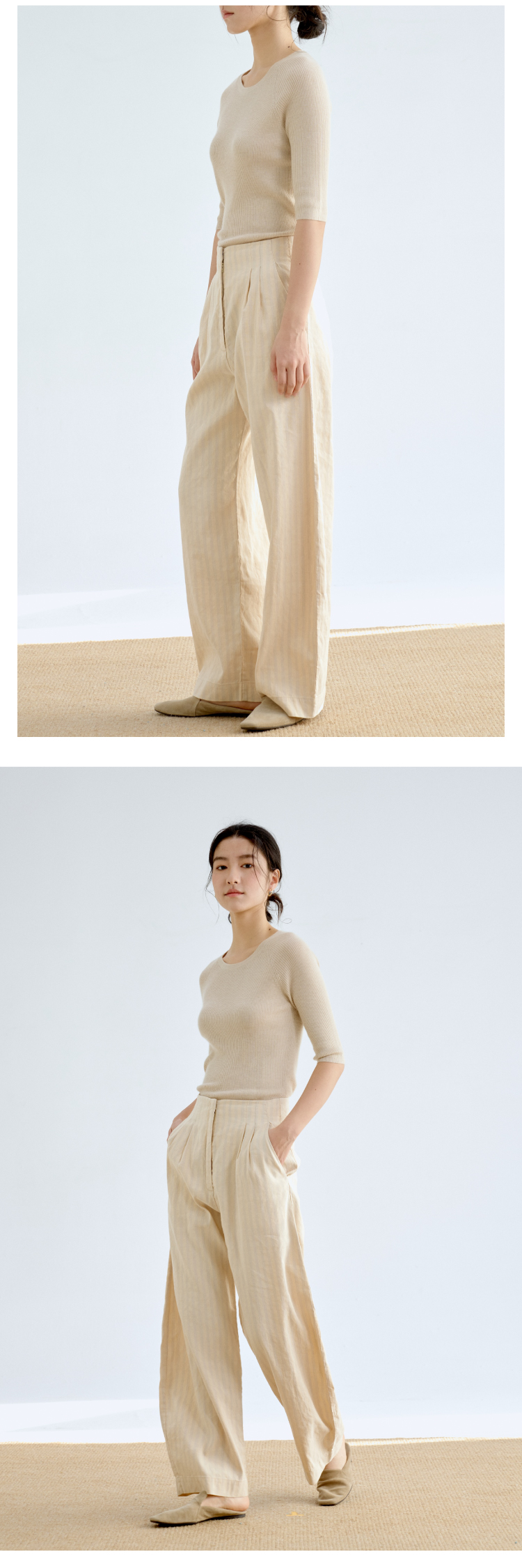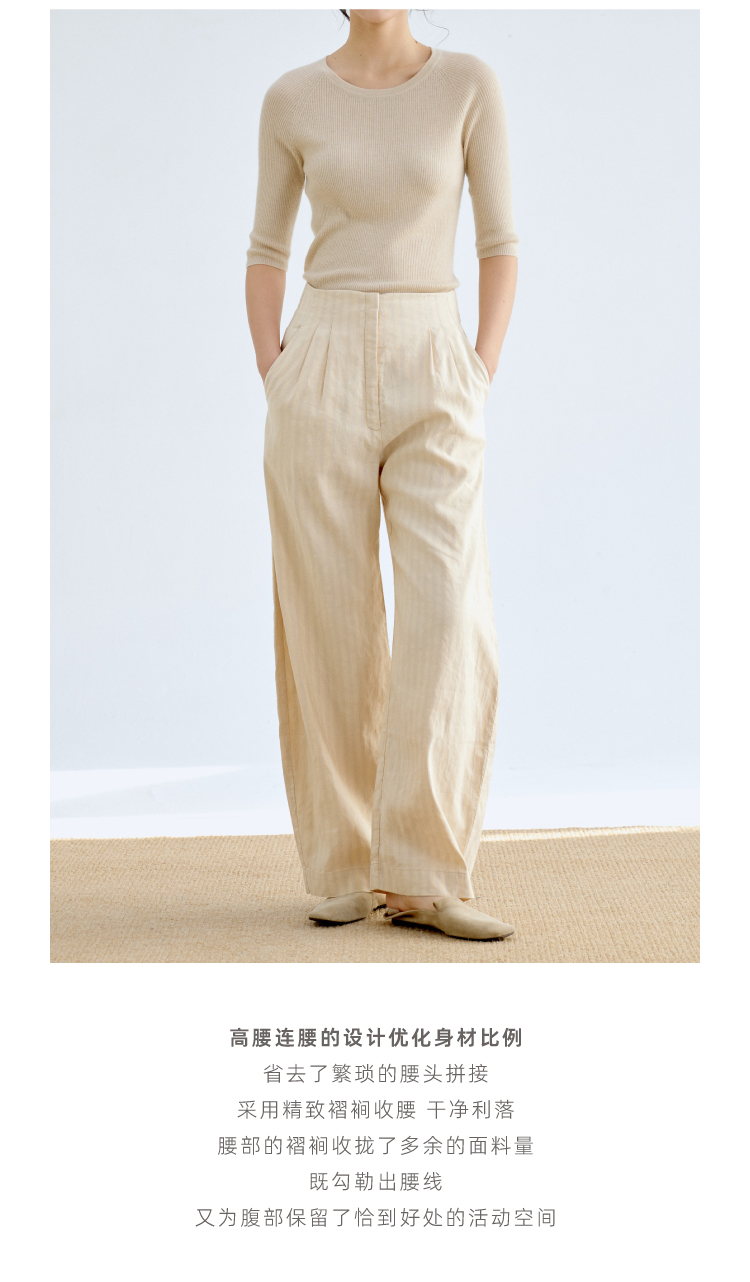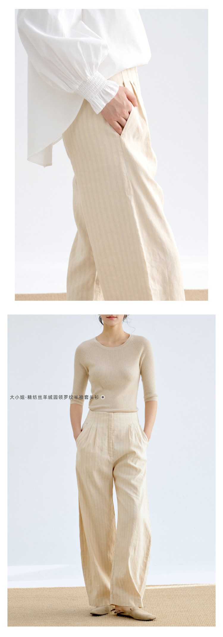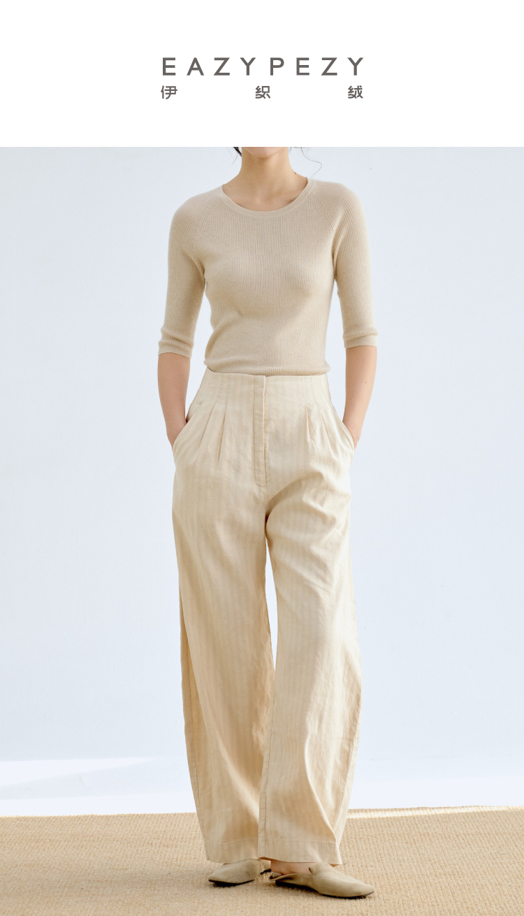 托斯卡纳的艳阳·棉麻丝七分袖翻领针织衫