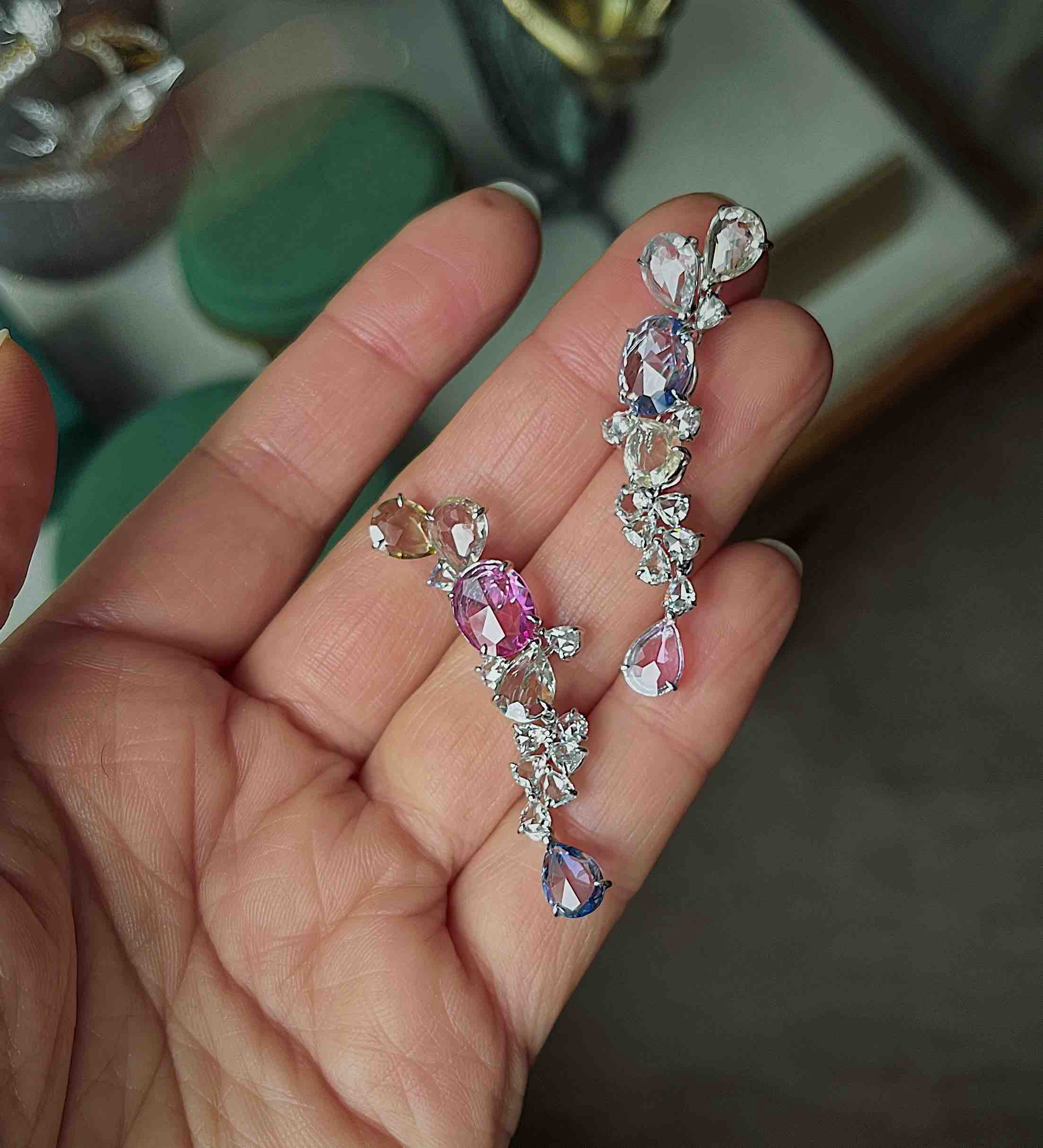 作品名称:ONLY系列 18K镶蓝宝石、钻石和天然锆石耳坠