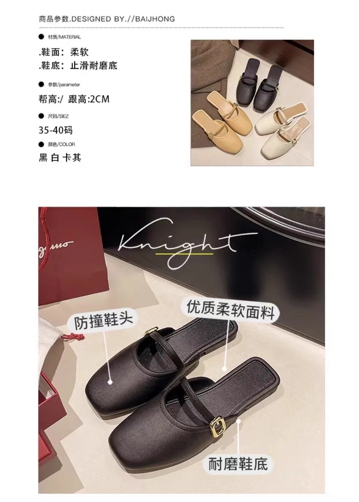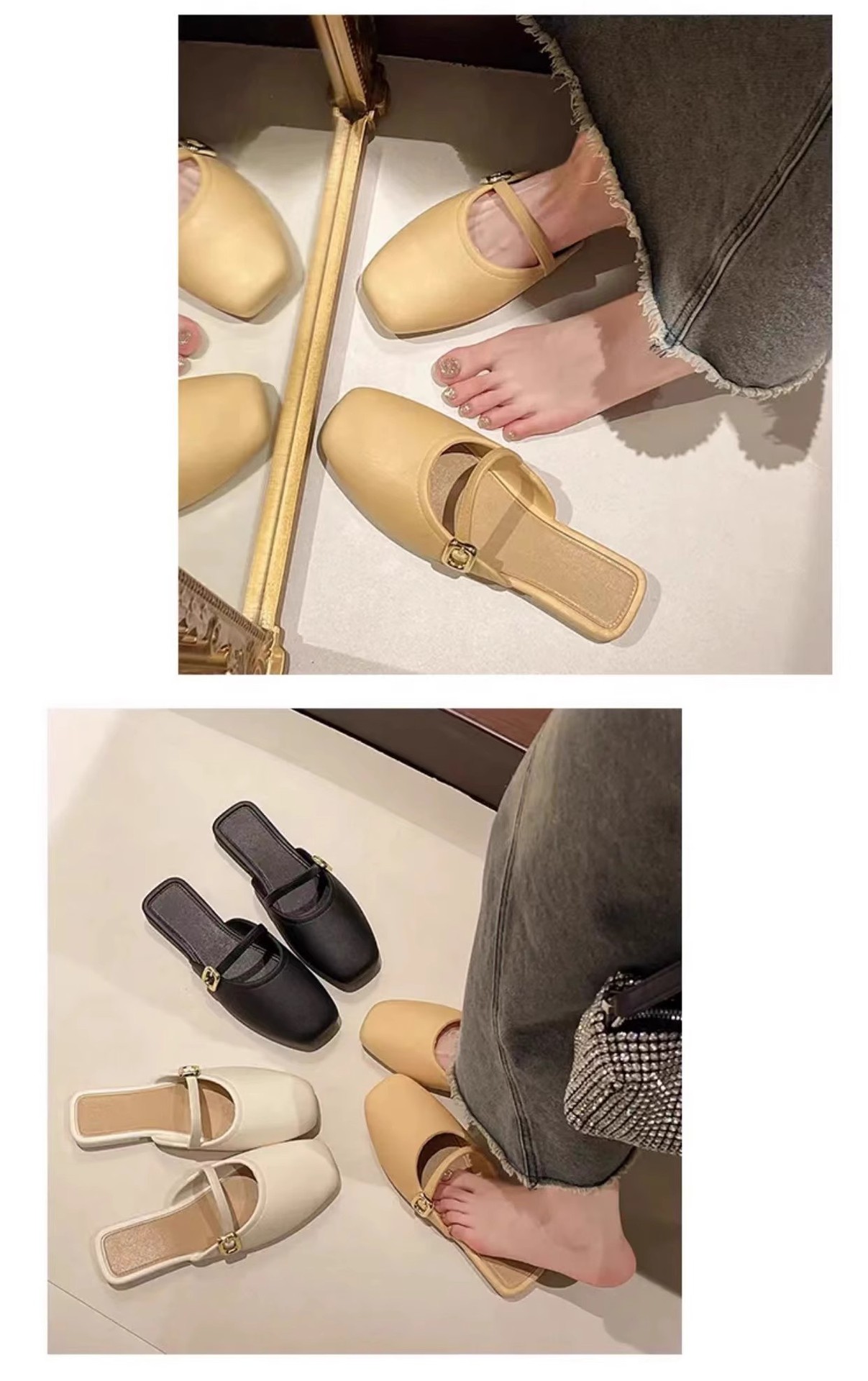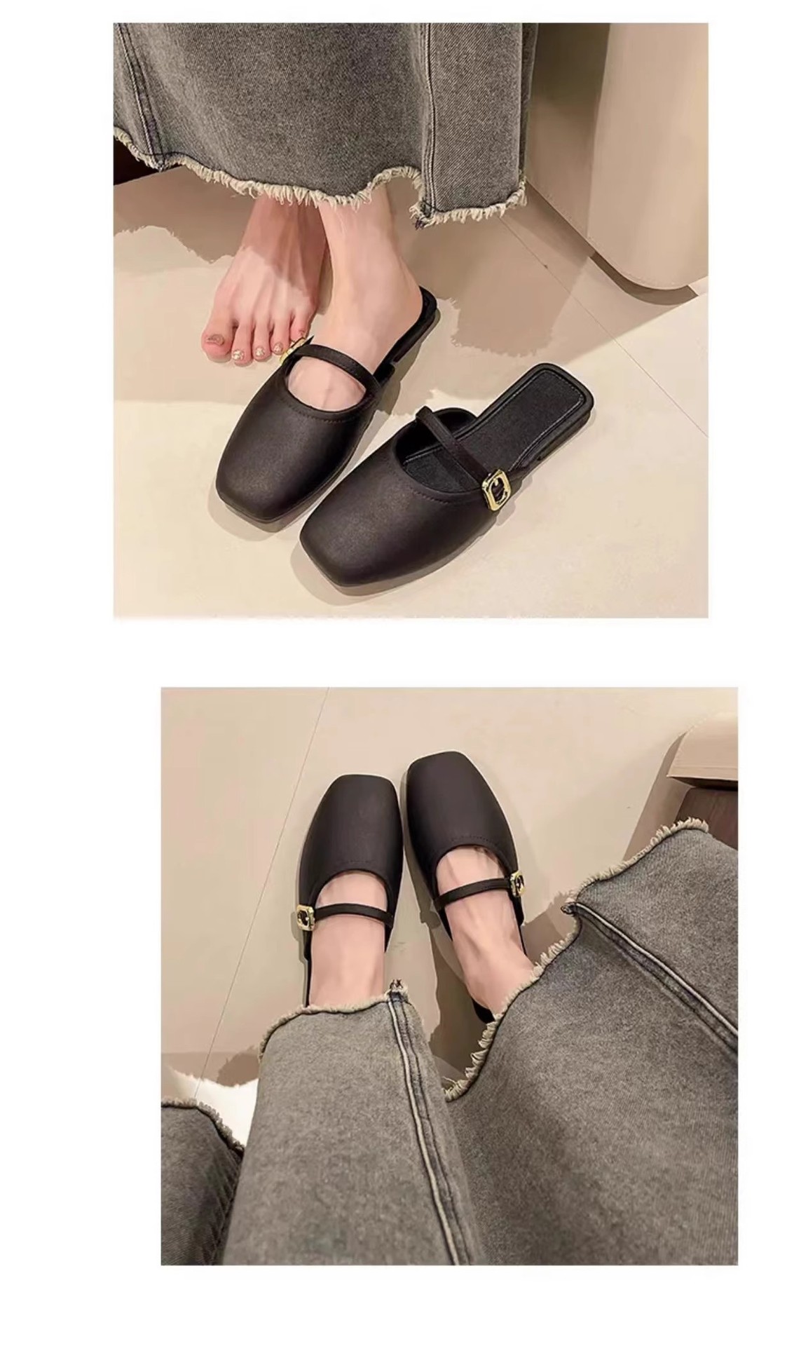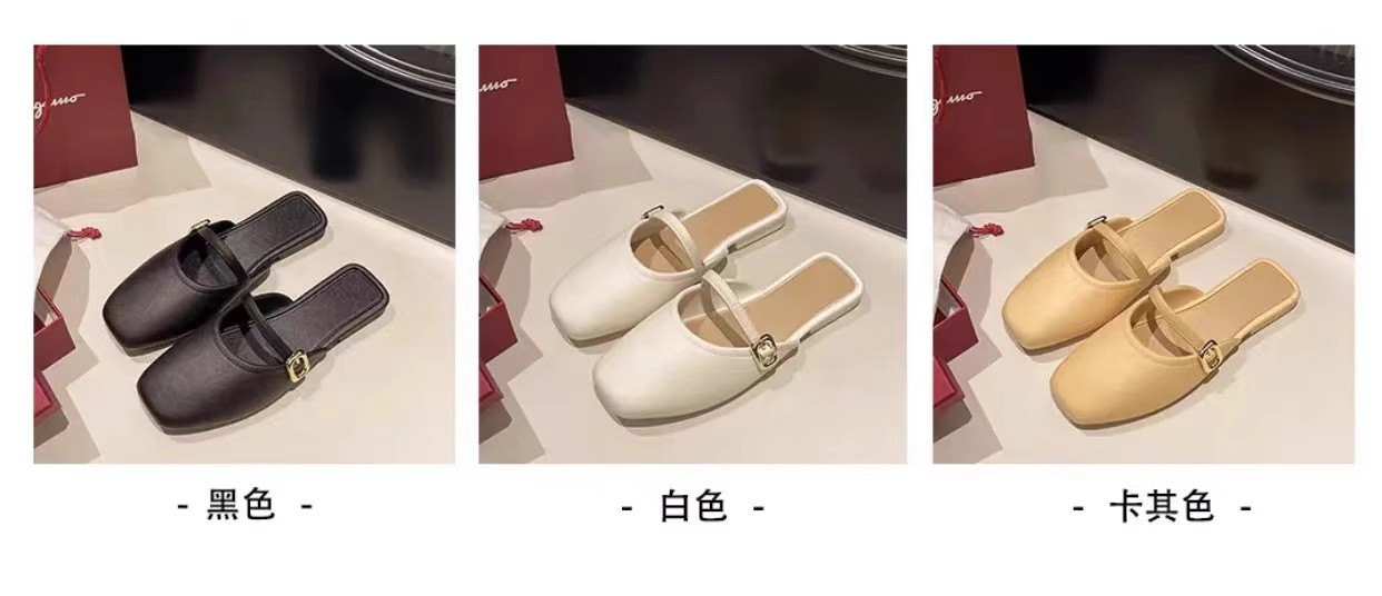 【可甜可酷,简约百搭~】法式包头半拖鞋女外穿 春夏新款百搭软皮穆勒鞋 玛丽珍单鞋低跟-QQ