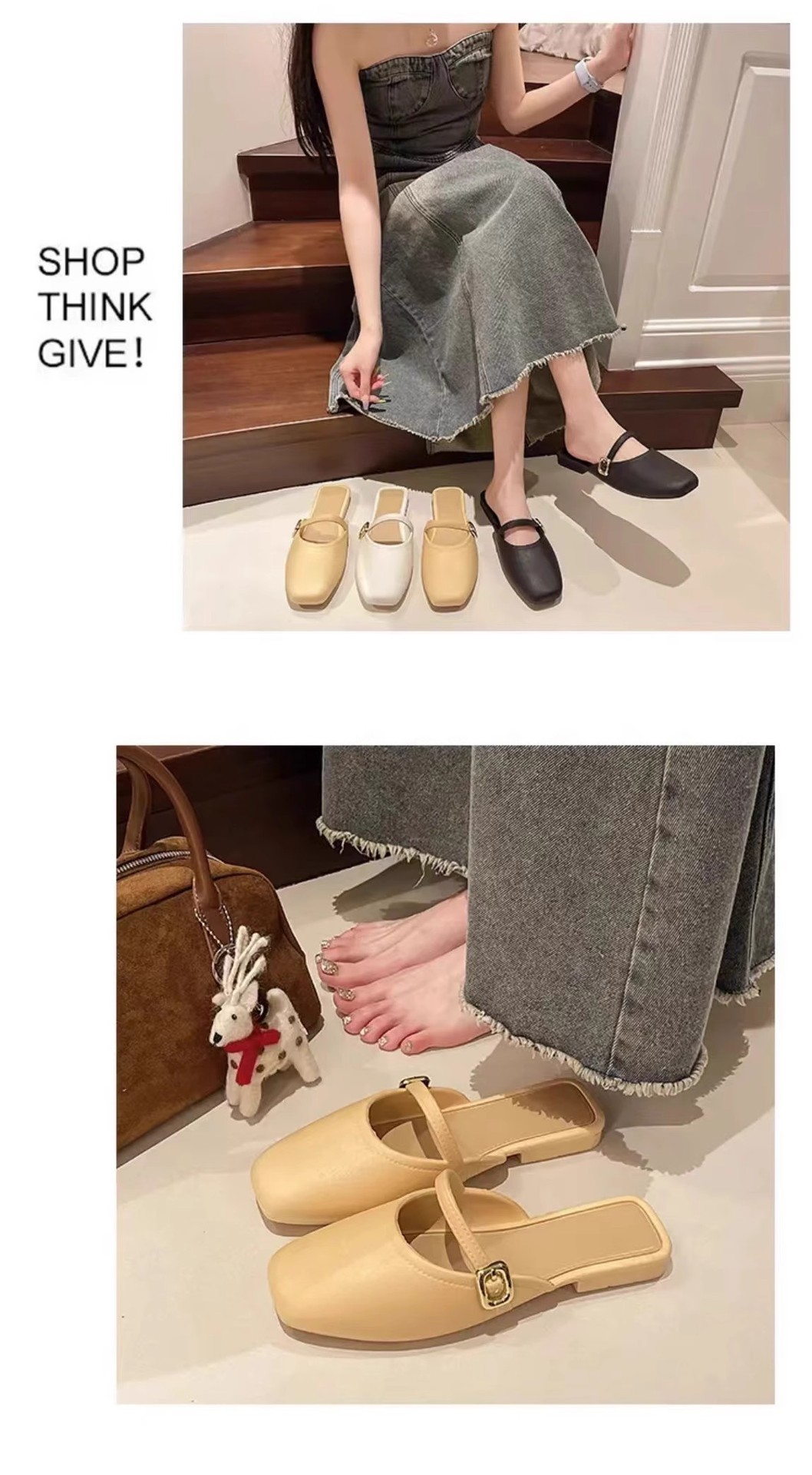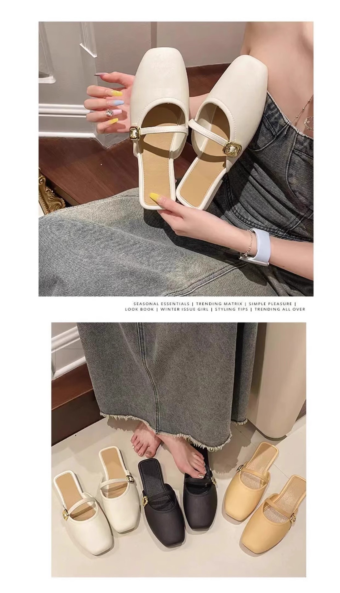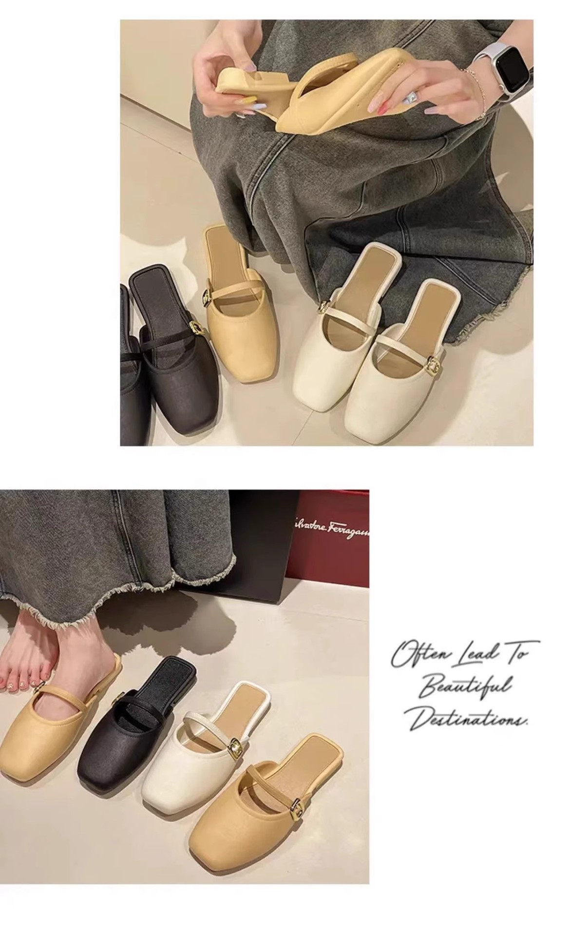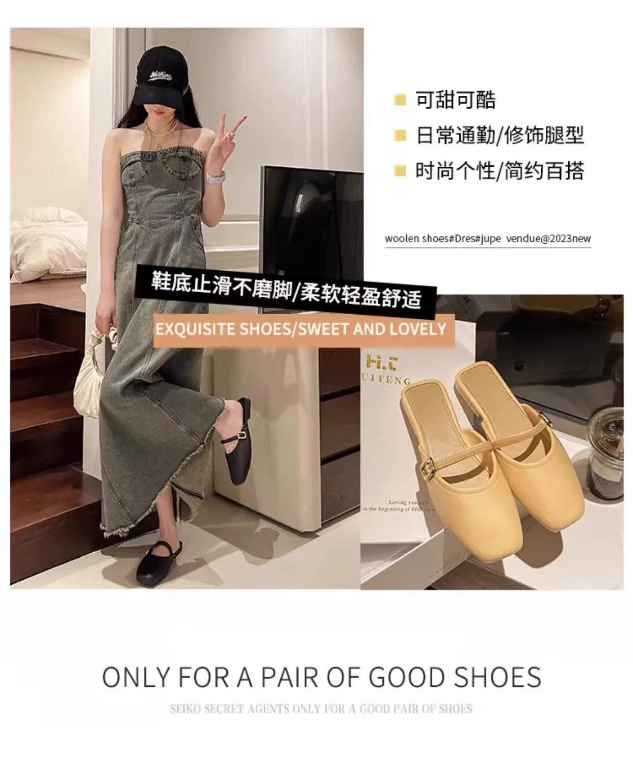 【可甜可酷,简约百搭~】法式包头半拖鞋女外穿 春夏新款百搭软皮穆勒鞋 玛丽珍单鞋低跟-QQ
