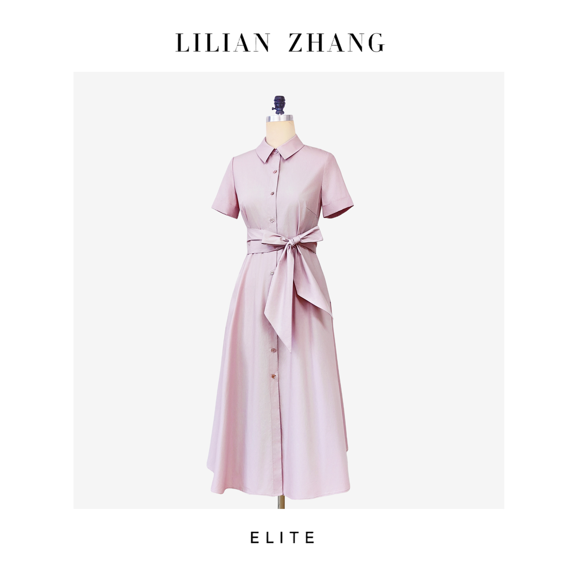 E—“定制”——静奢风——风尚之选——法式柔粉爱琴海系结通勤裙 2501067