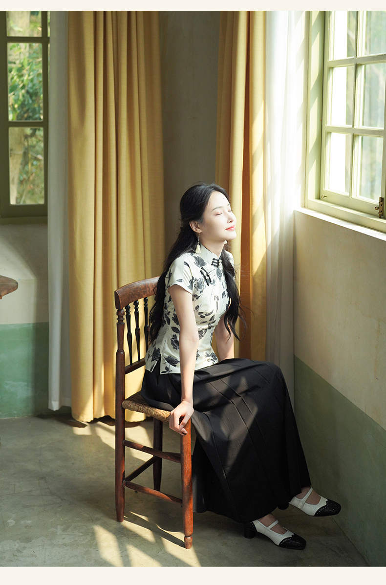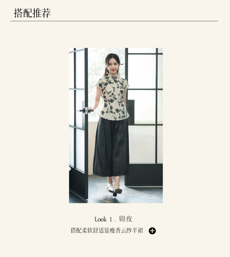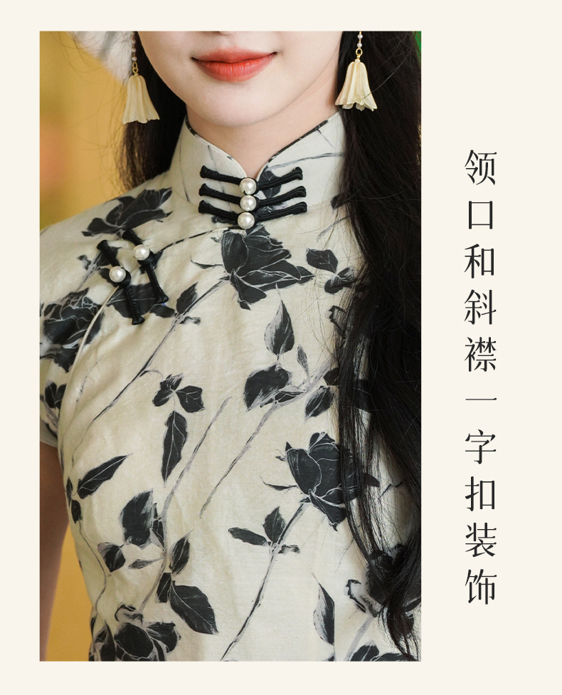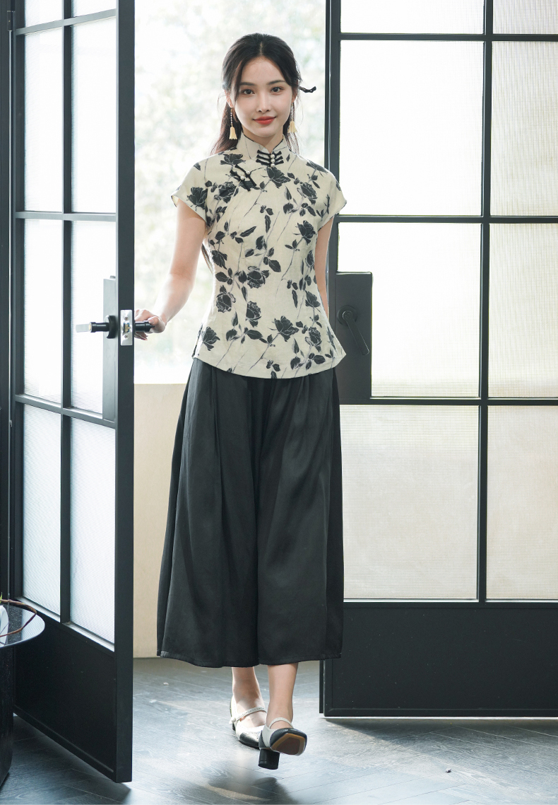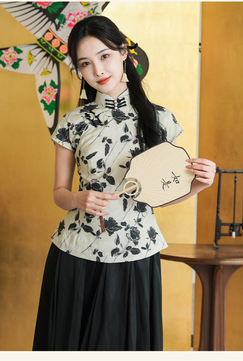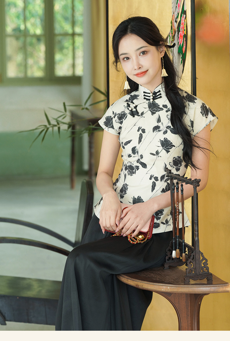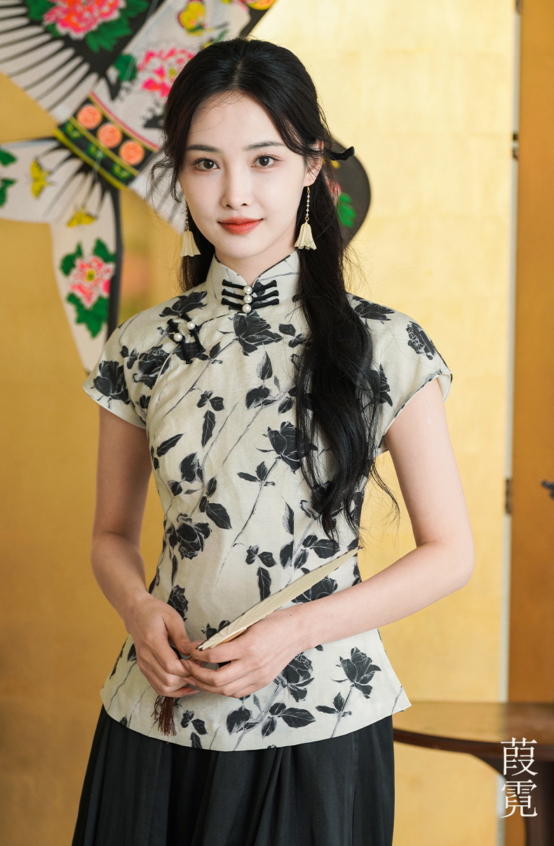 上海逸红颜葭霓2025年夏季新款天丝涤玫瑰印花新中式A版旗袍上衣