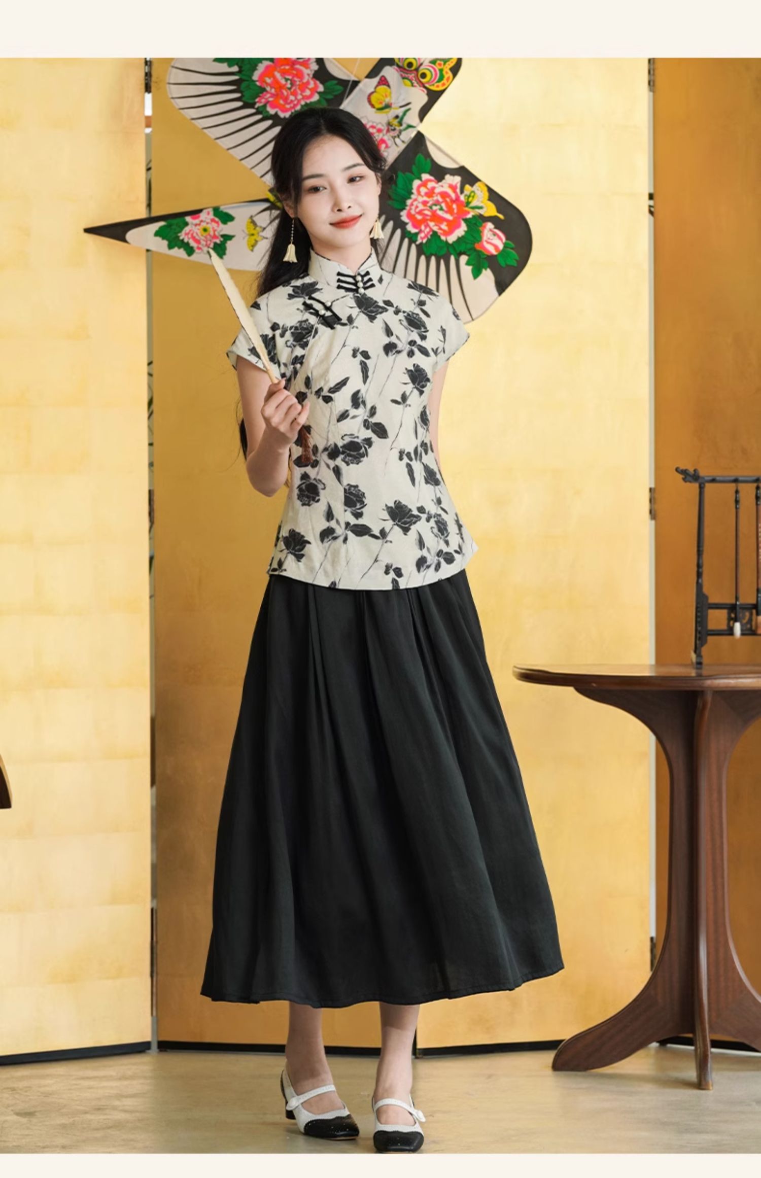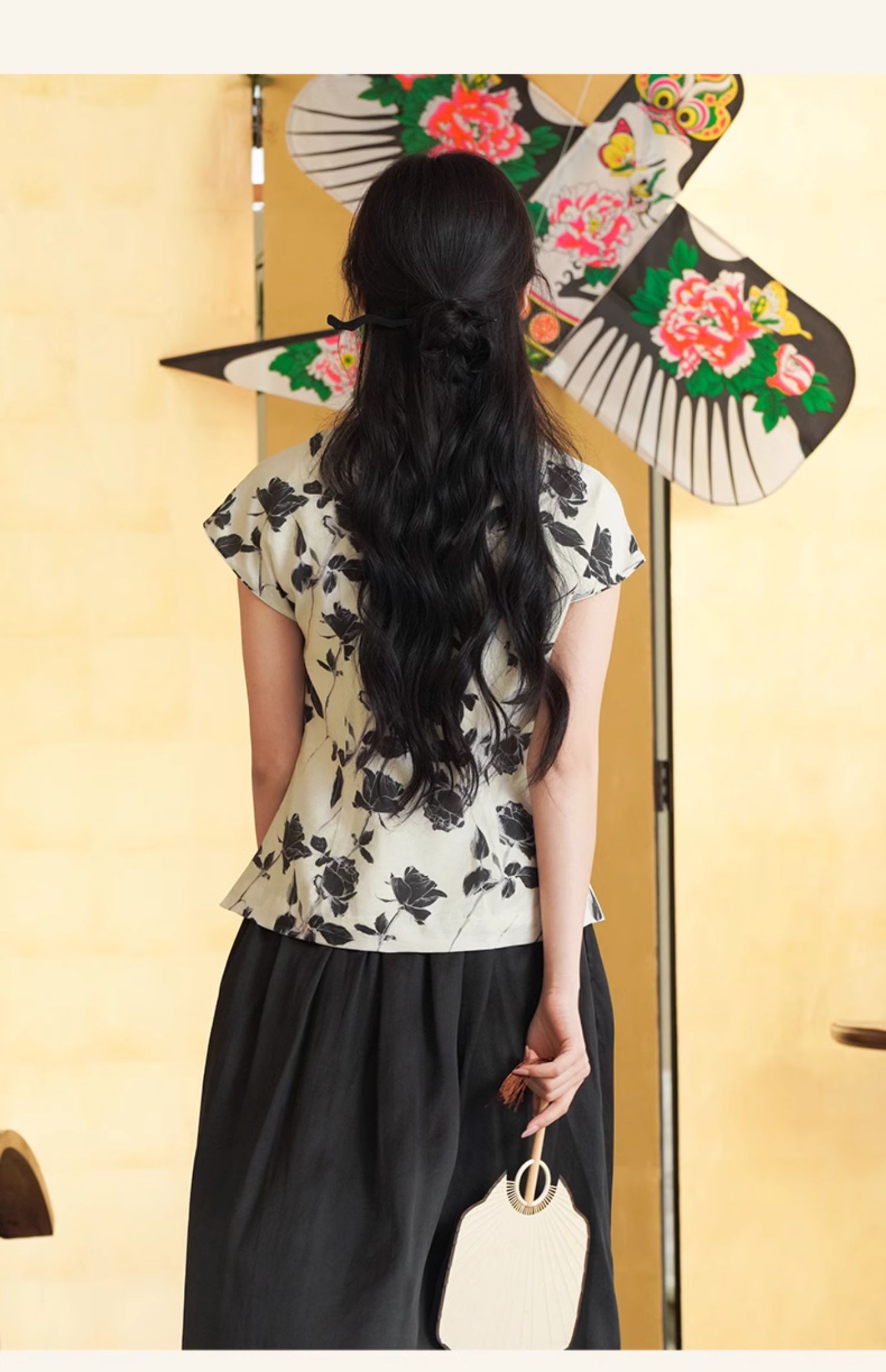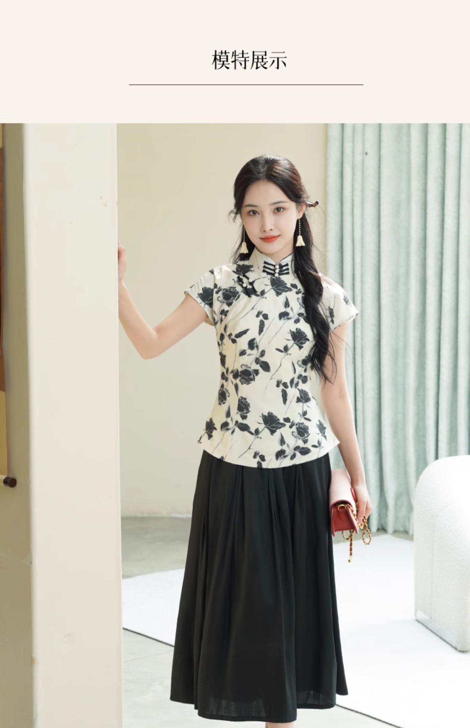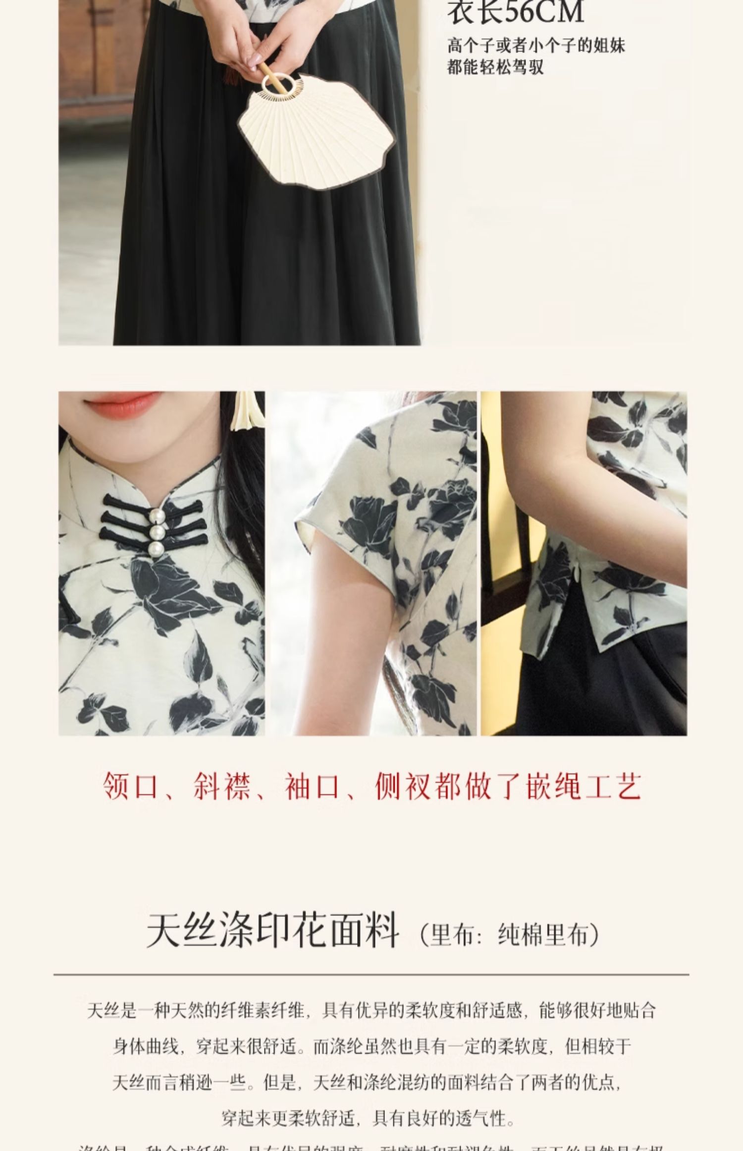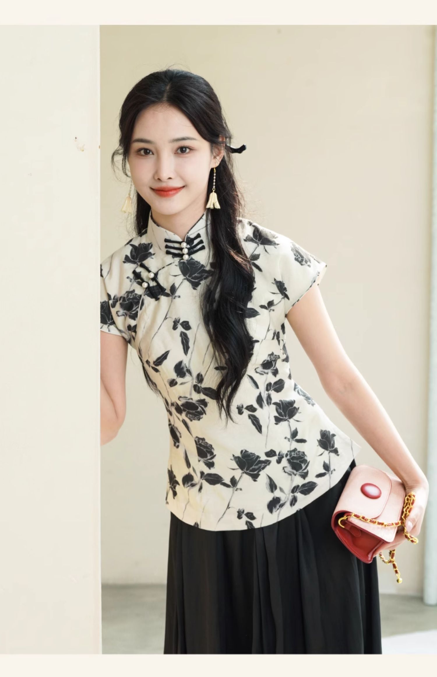 上海逸红颜葭霓2025年夏季新款天丝涤玫瑰印花新中式A版旗袍上衣