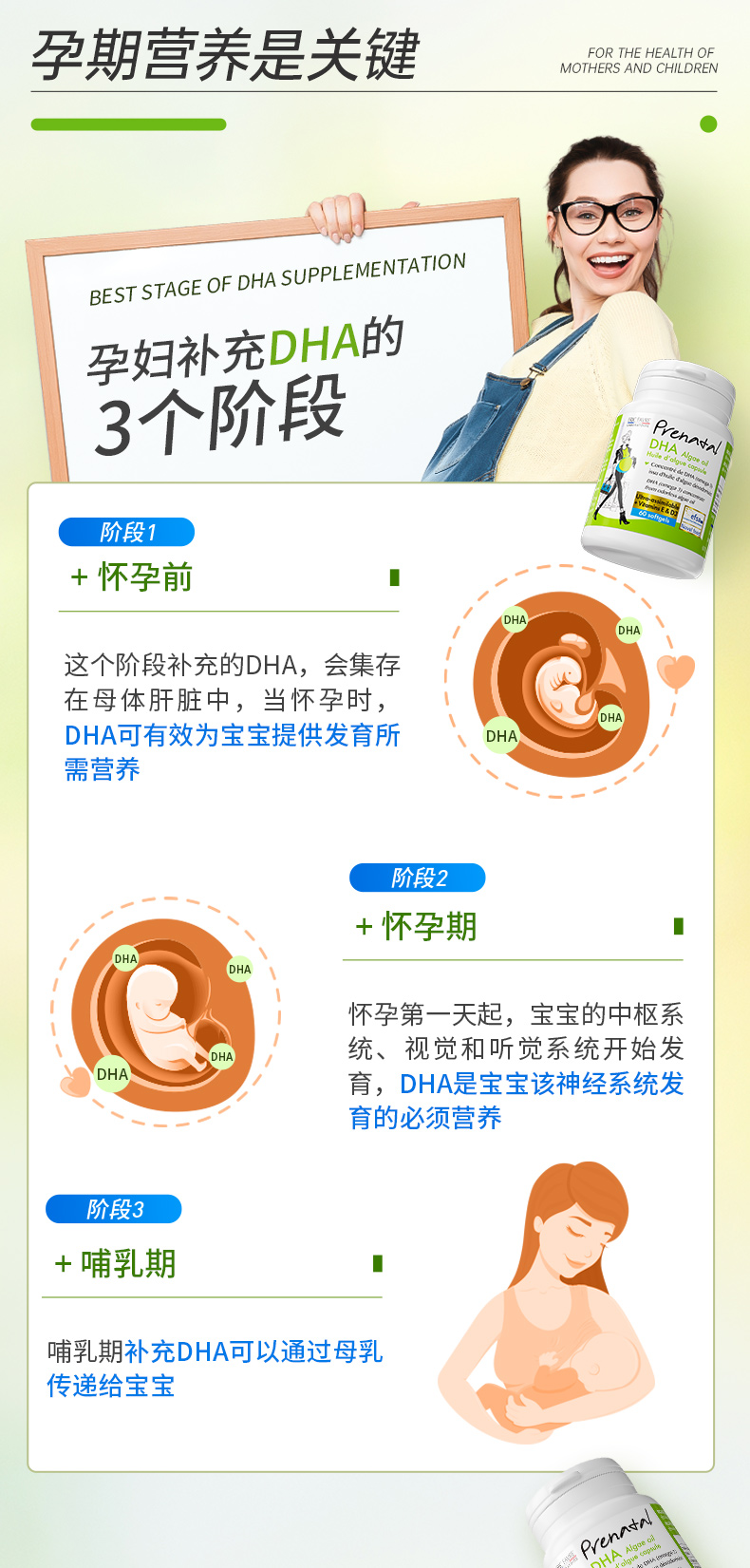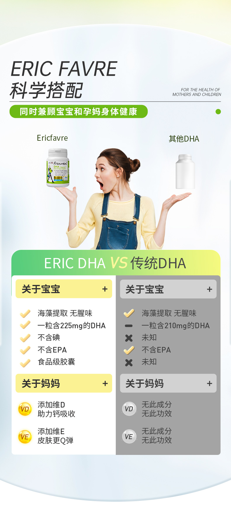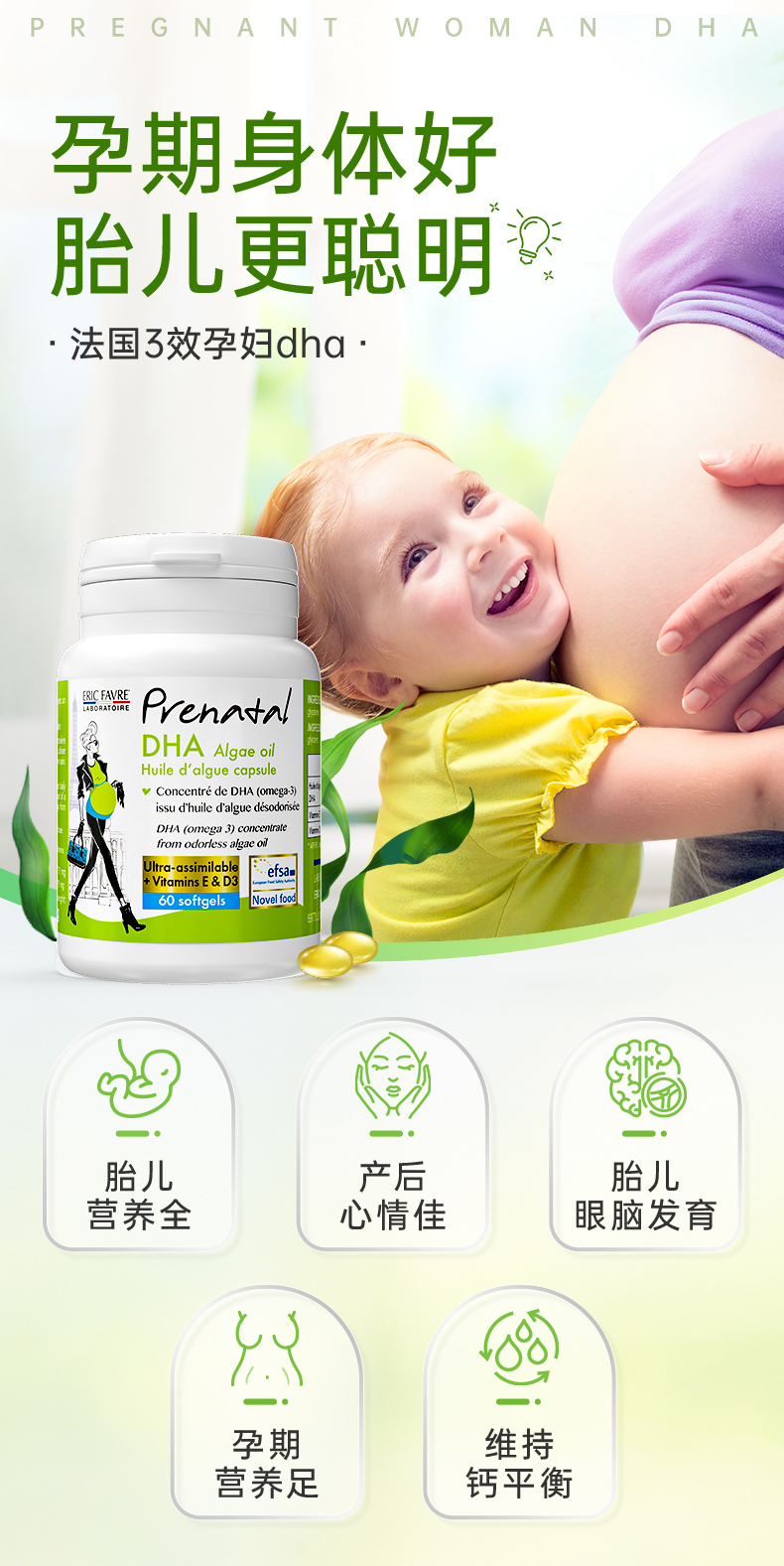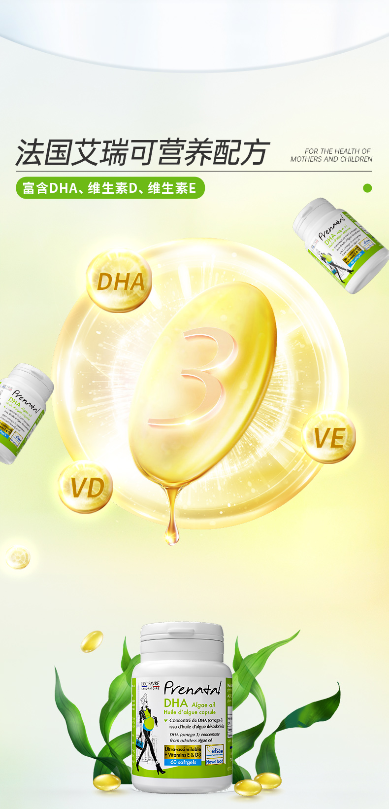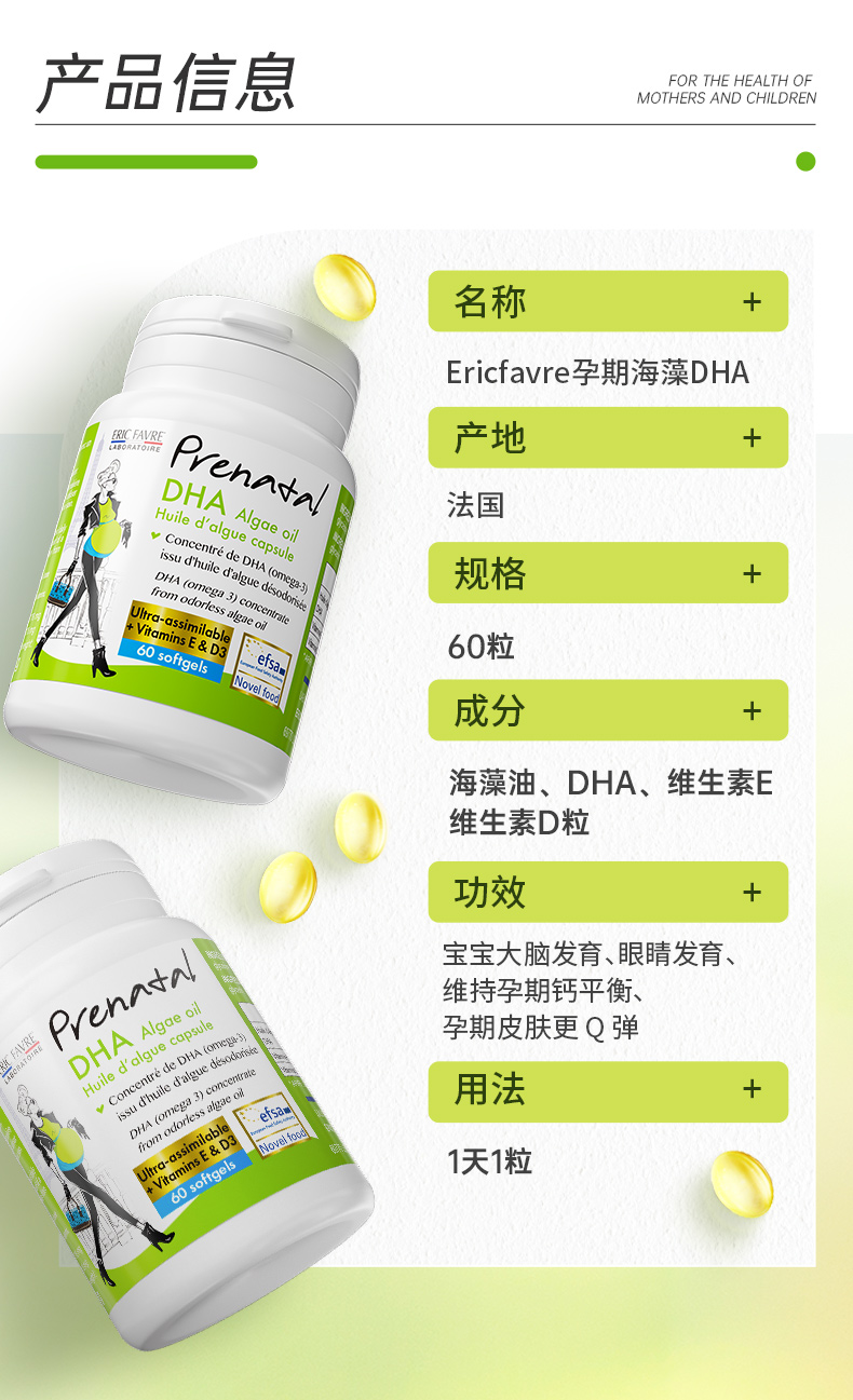 【总代】法国Eric Farve 艾瑞可 孕妇海藻油DHA胶囊 60粒/瓶