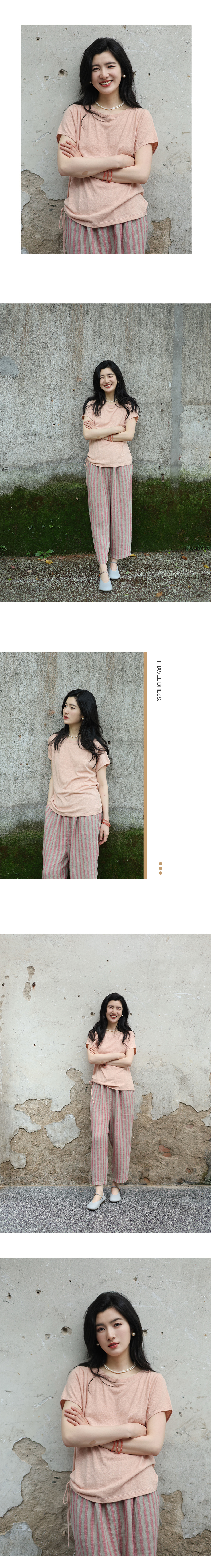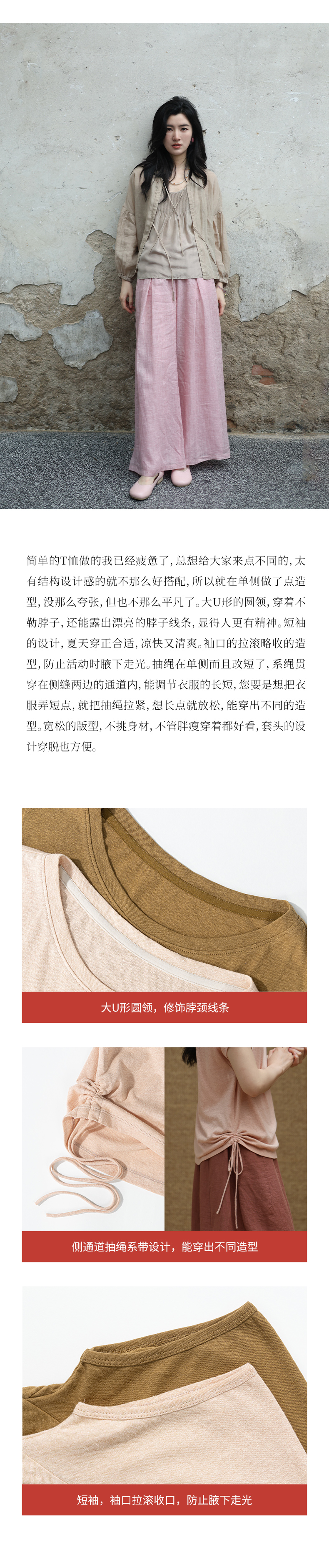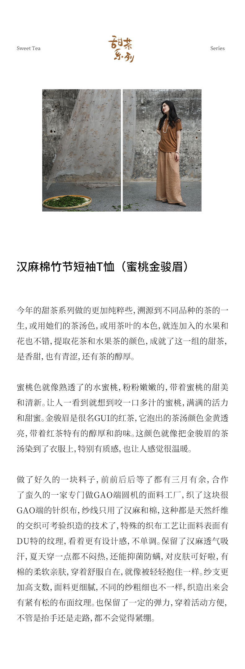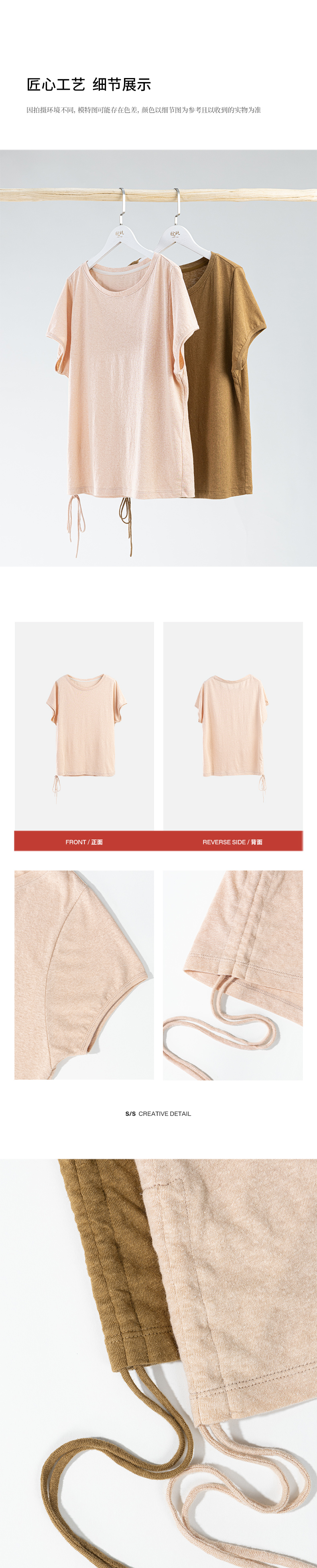 绽放女装308朵/【甜茶系列·蜜桃金骏眉】汉麻棉竹节抽绳短袖T恤