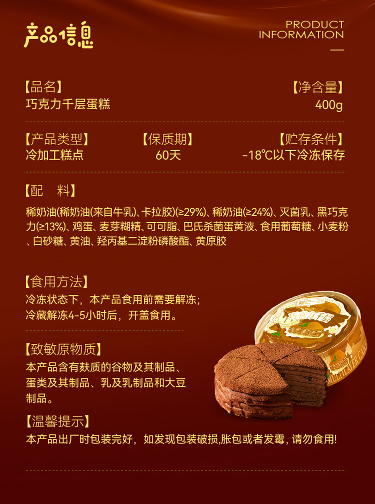 【美味1+1】 榴芒一刻六英寸金枕榴莲千层500g*1+六英寸抹茶蛋糕420克*1/六英寸巧克力千层蛋糕400克*1