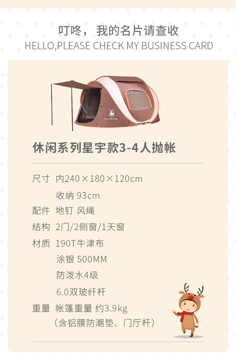 徽羚羊 防晒休闲系列 星宇3-4人抛帐(米白)