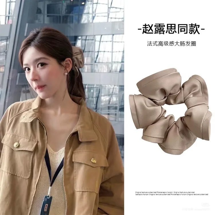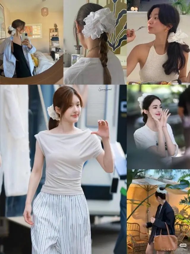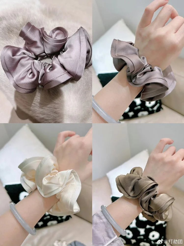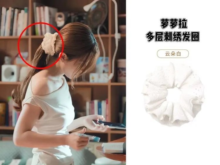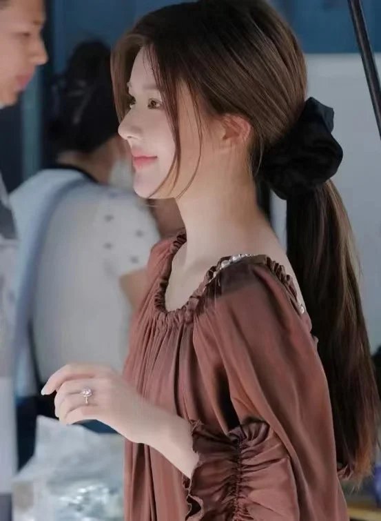 许妍戴的这款荷叶边缎面大肠发圈,把“职场甜妹感”玩明白了,看完直接冲去下单!