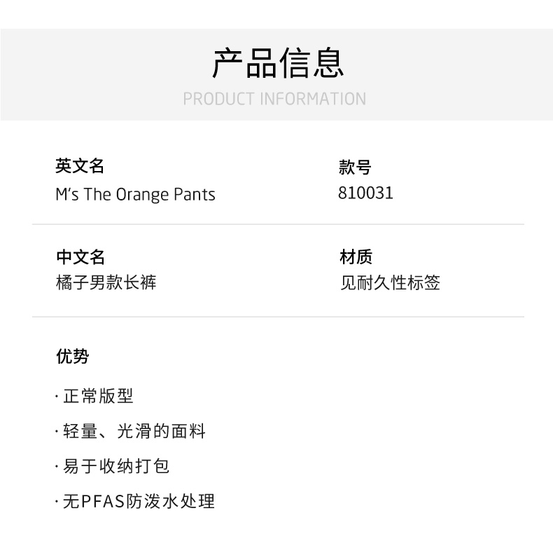 HOUDINI 胡丁尼 Orange Pants橘子 户外男越野跑防泼水长裤810031