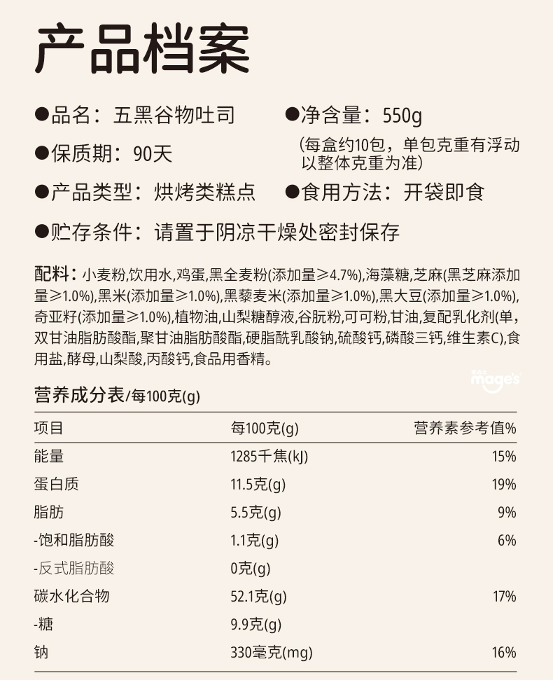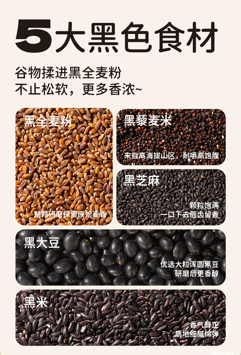 麦吉士无蔗糖五黑全谷物厚切吐司全麦面包健康营养早餐