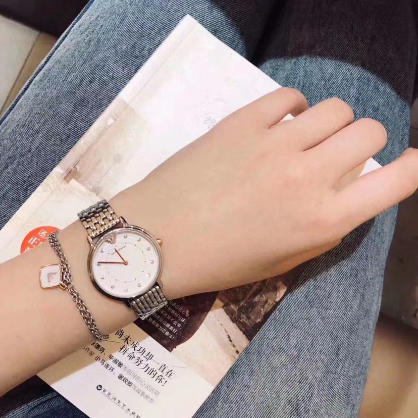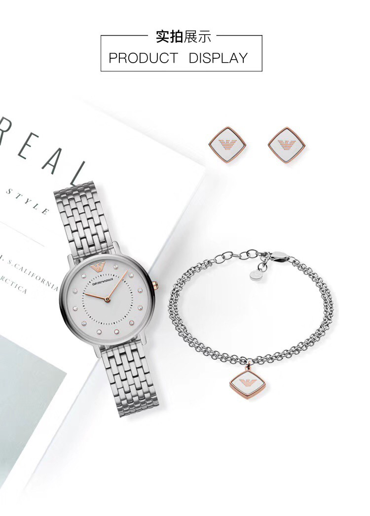 ¥1099直邮!Armani AR80023 阿玛尼手表礼盒⌚️表盘内11颗水晶镶嵌刻度,石英机芯女士腕表,时尚LOGO手链➕耳钉,百搭经典,太美了,精致优雅女人必备款!表盘32mm