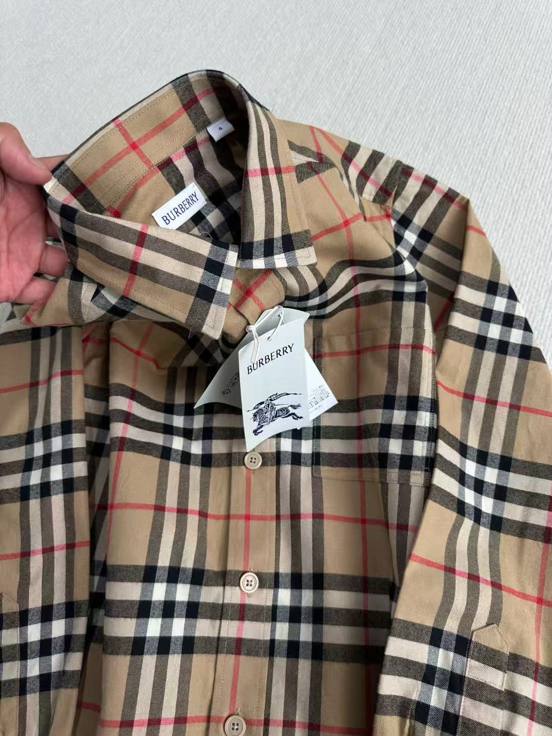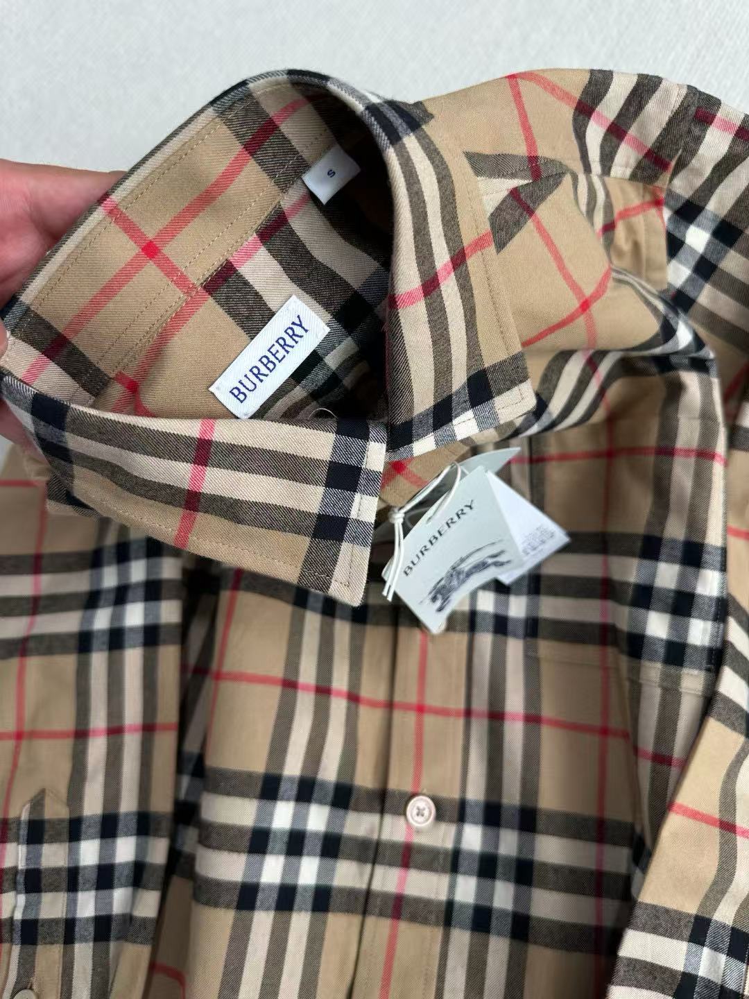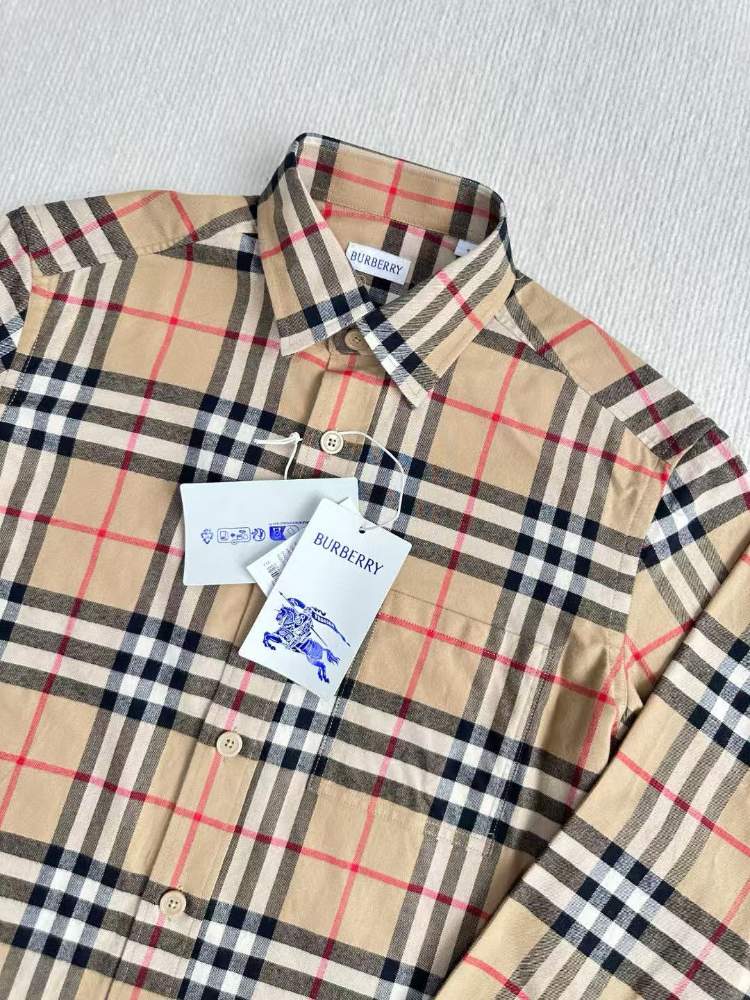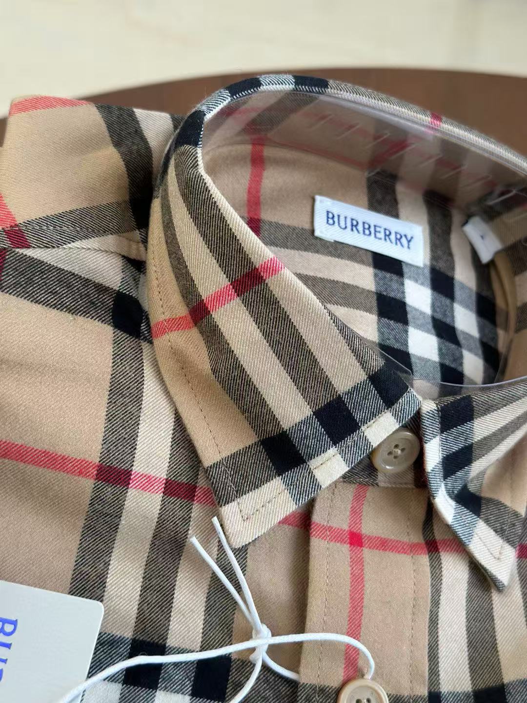 独家现货 随便对比专柜 2024最新款 巴宝莉秋冬季情侣棉质翻领长袖衬衫 棉质格子衬衫