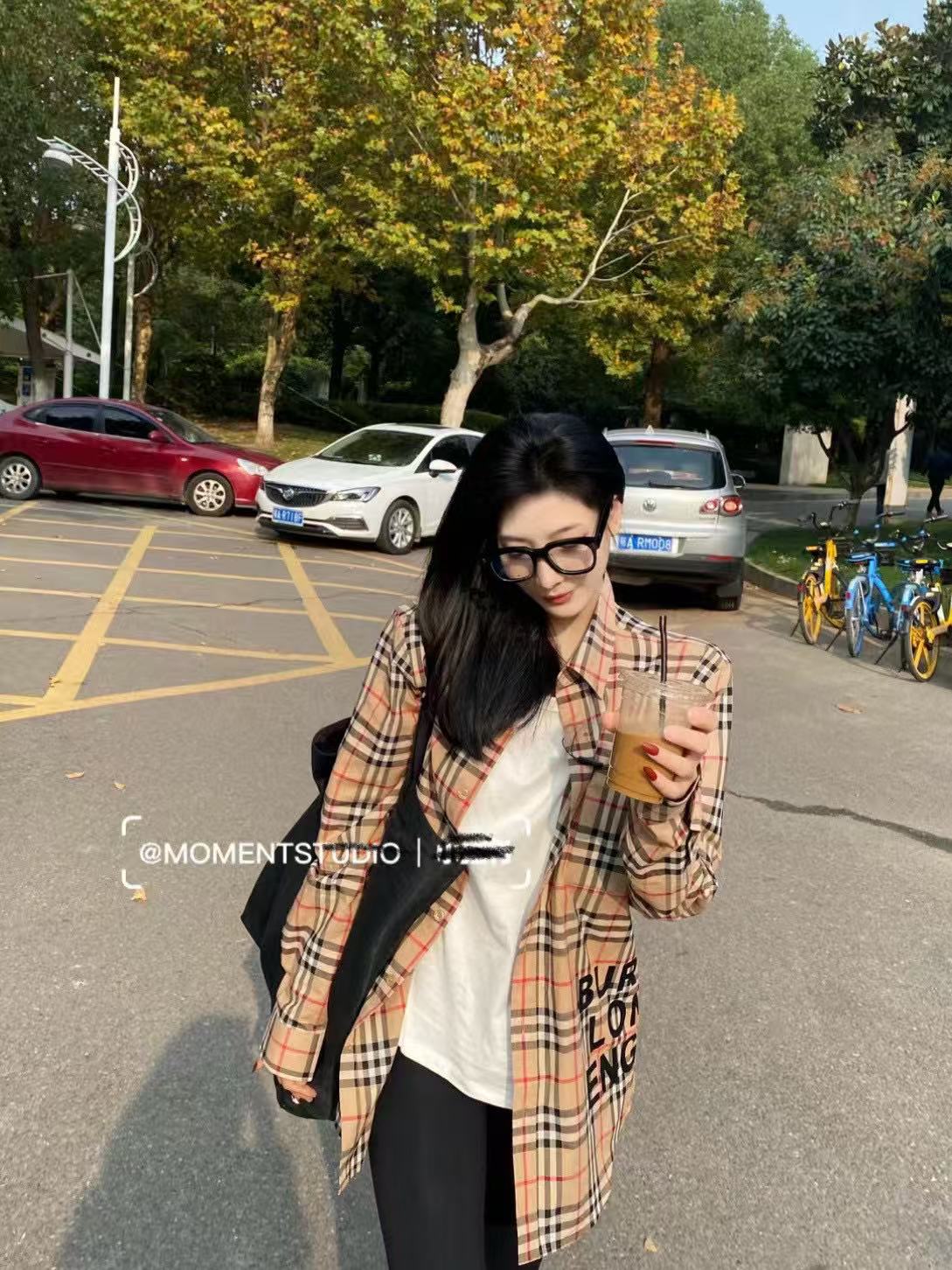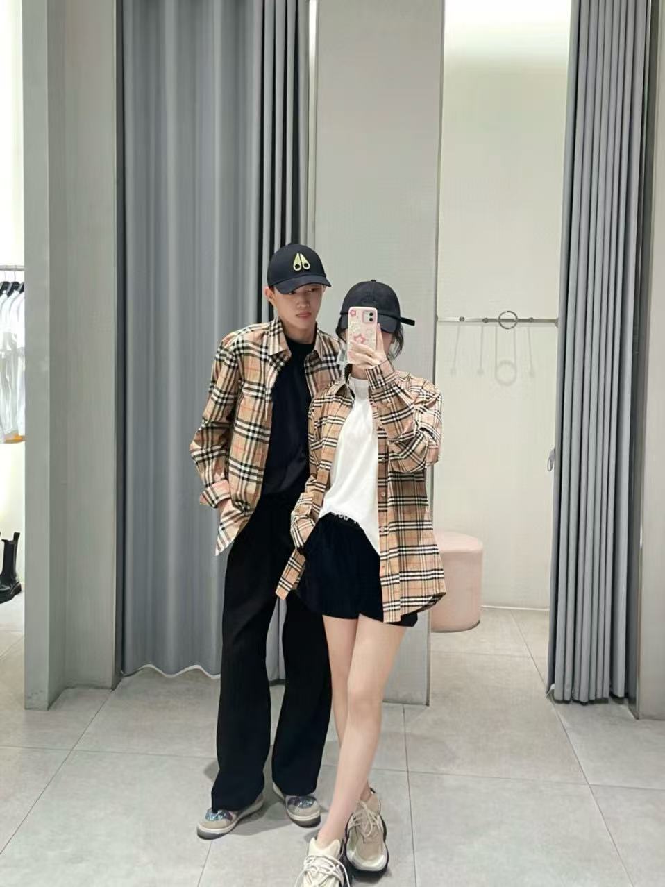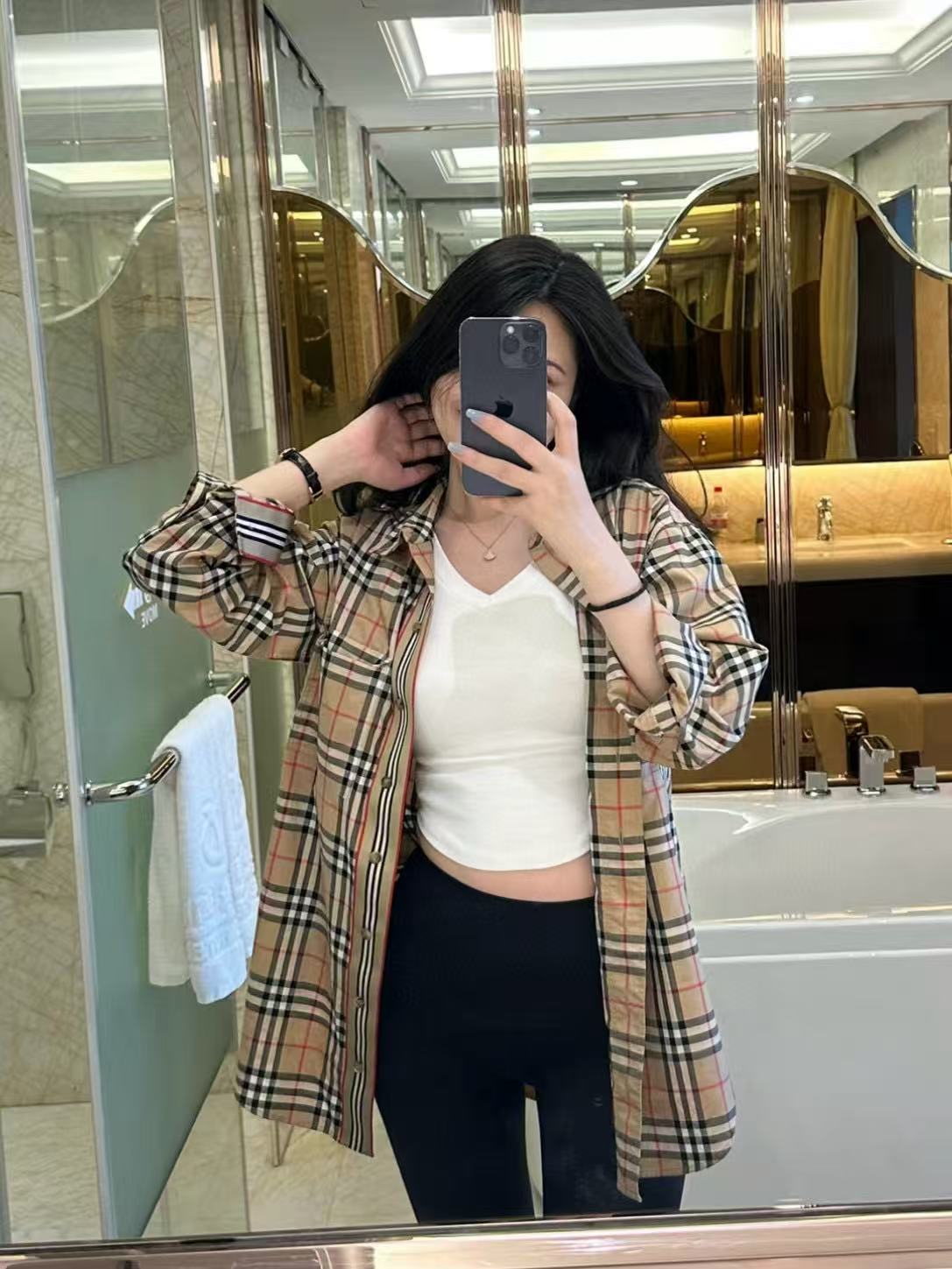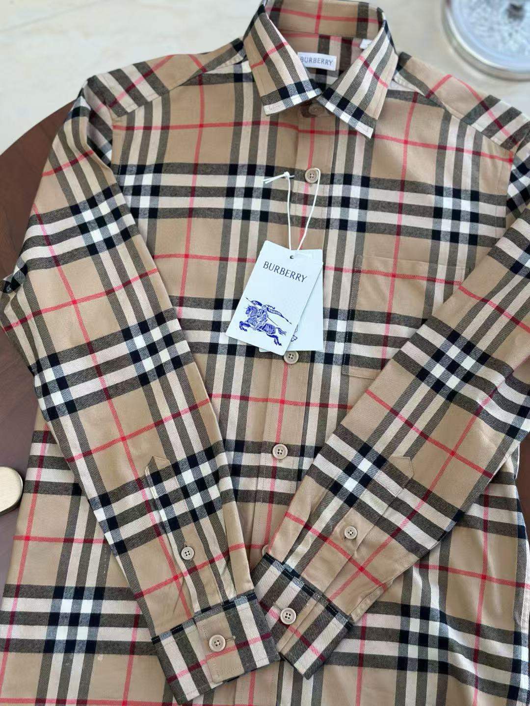 独家现货 随便对比专柜 2024最新款 巴宝莉秋冬季情侣棉质翻领长袖衬衫 棉质格子衬衫