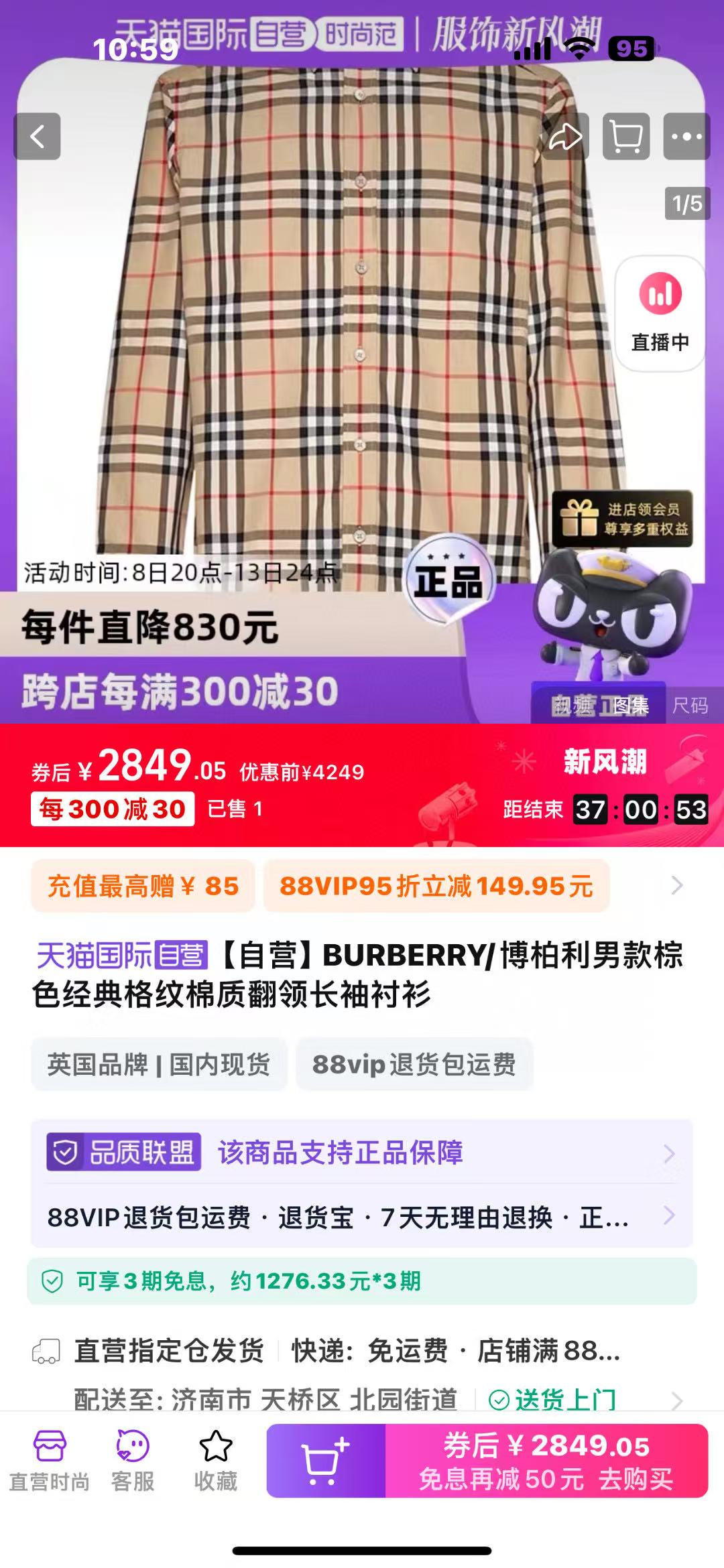 Burberry巴宝莉冬季情侣棉质翻领长袖衬衫!