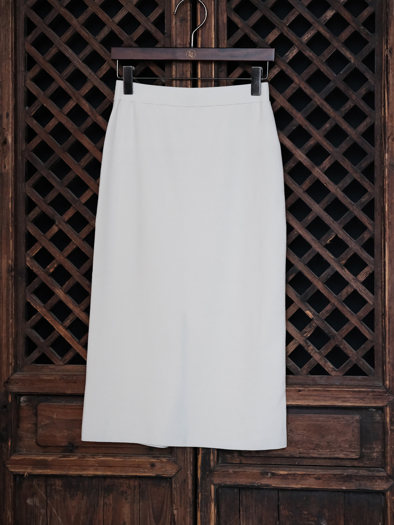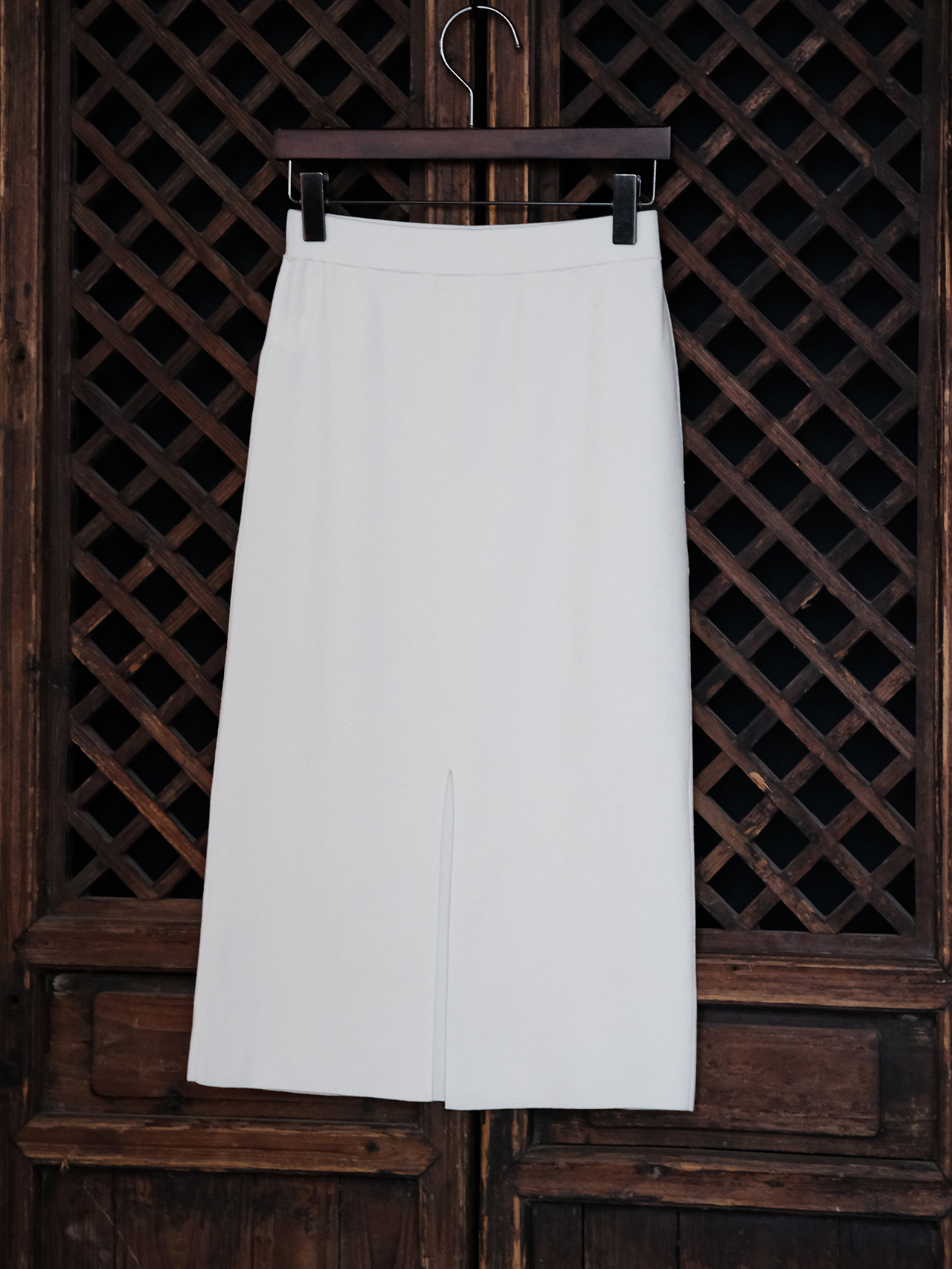 盛唐婧| 精纺羊毛四平加弹针织包臀裙-白色