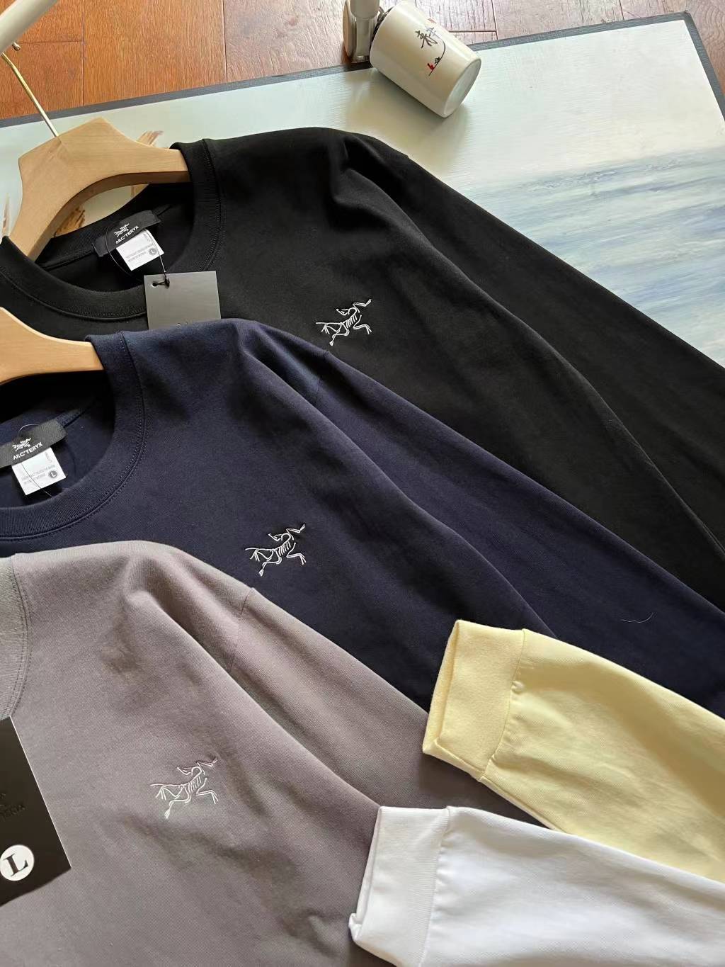 圆领百搭弹力棉刺绣款长袖T恤 这款打底衫面料全棉双面长绒棉棉料 300克 实用百搭打底款式 简简单单一件打底 可外穿 可叠穿!可以过完整个秋冬!纯色T恤是每个男人衣柜里的b备单品!微微绒的那种手感 这样的长袖醉适合初秋单独穿搭 即使到冬季也可以做保暖打底穿搭 实用性非常强 有一点那种微绒的感觉 有点婴儿棉的感觉,触感非常舒服软糯,自带弹力哈 舒适稳定不会变形!