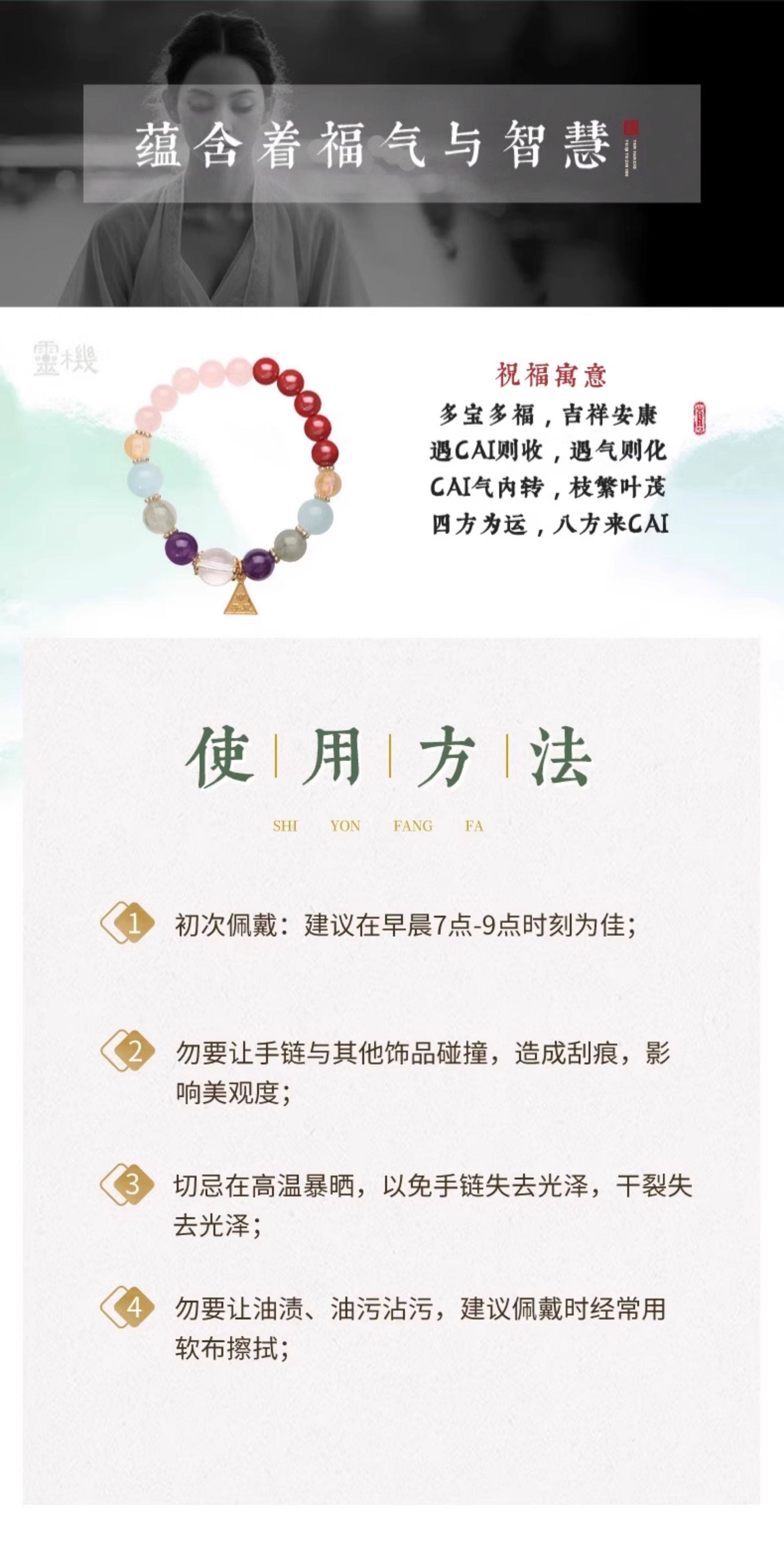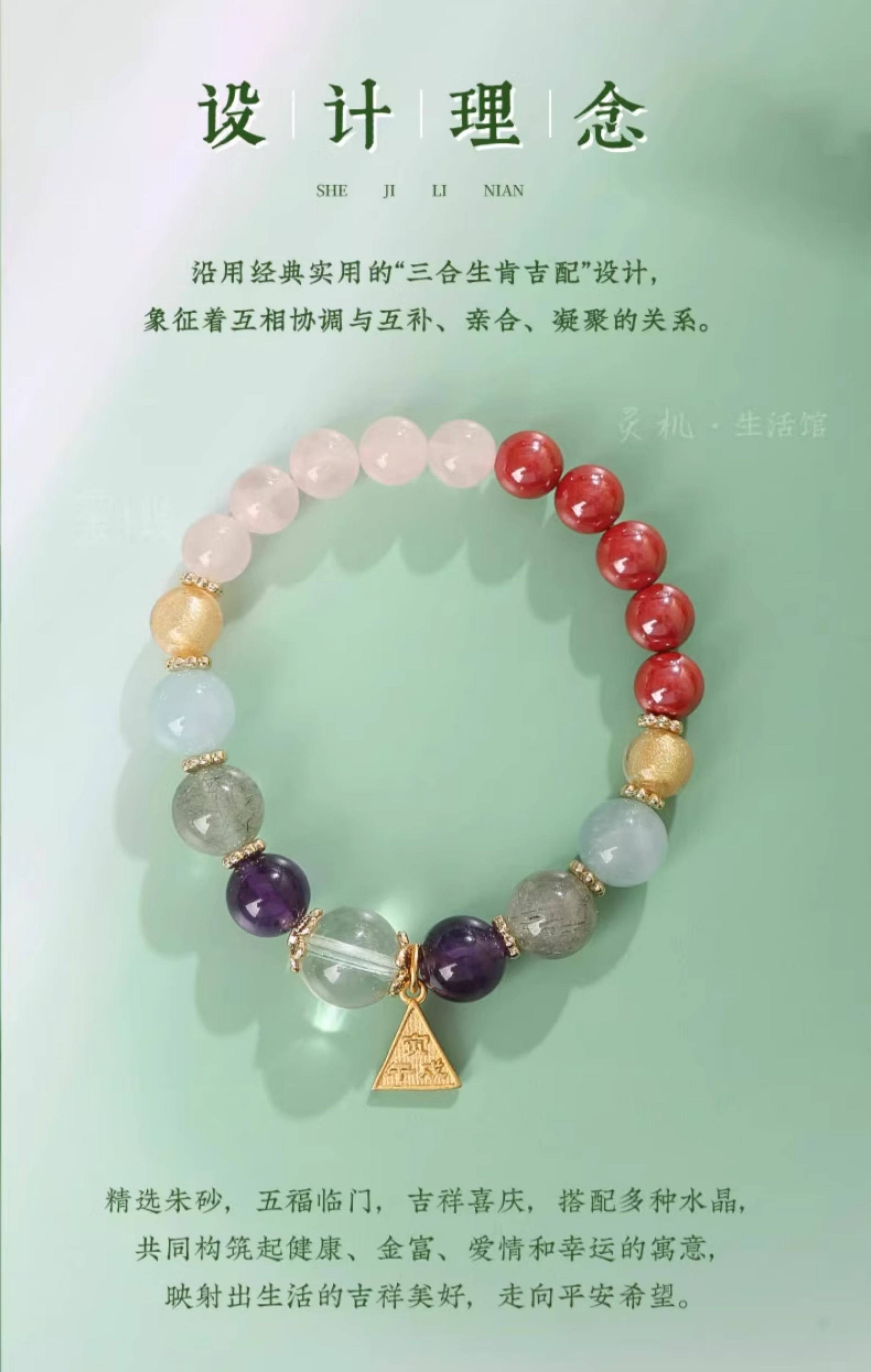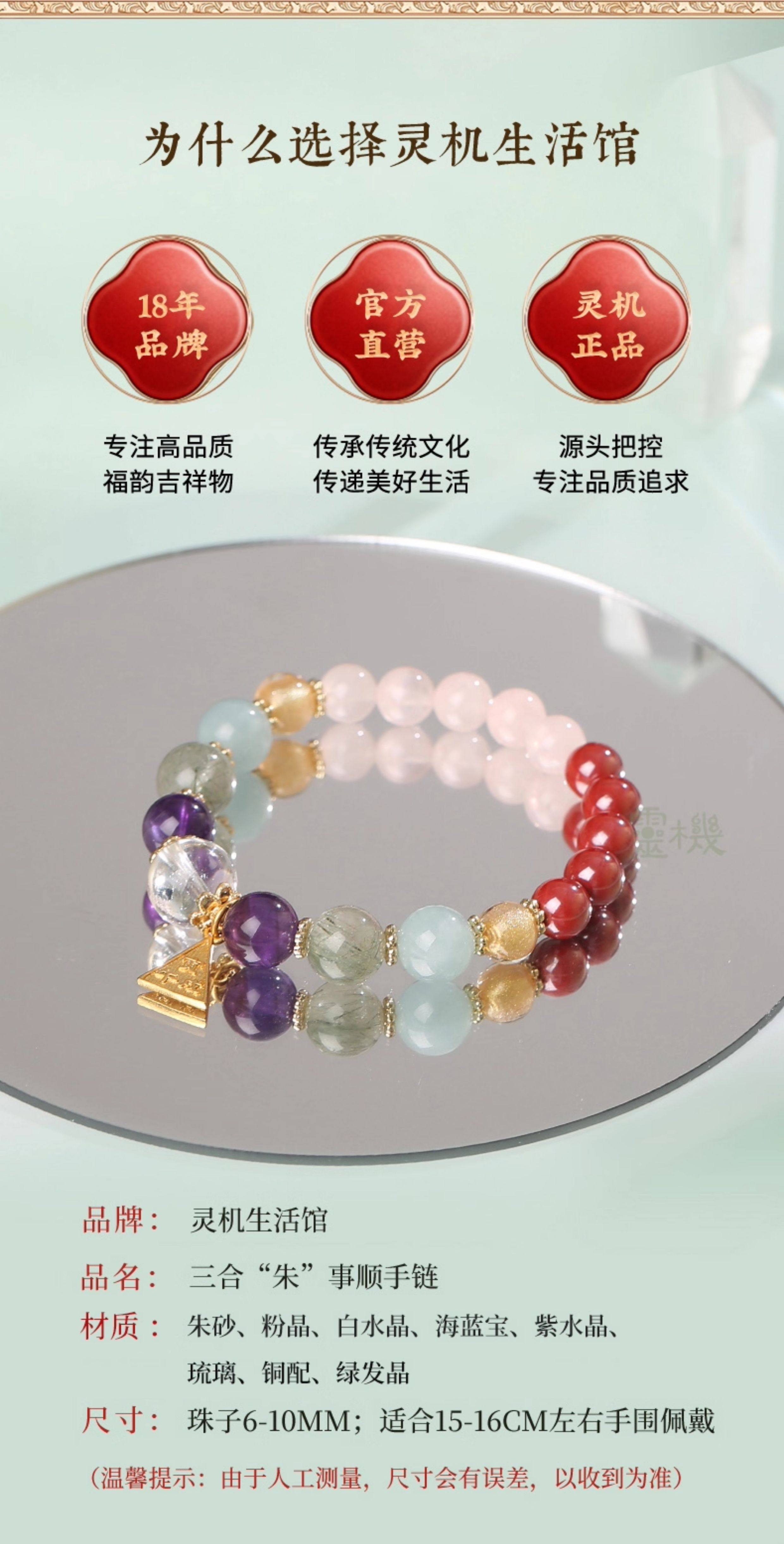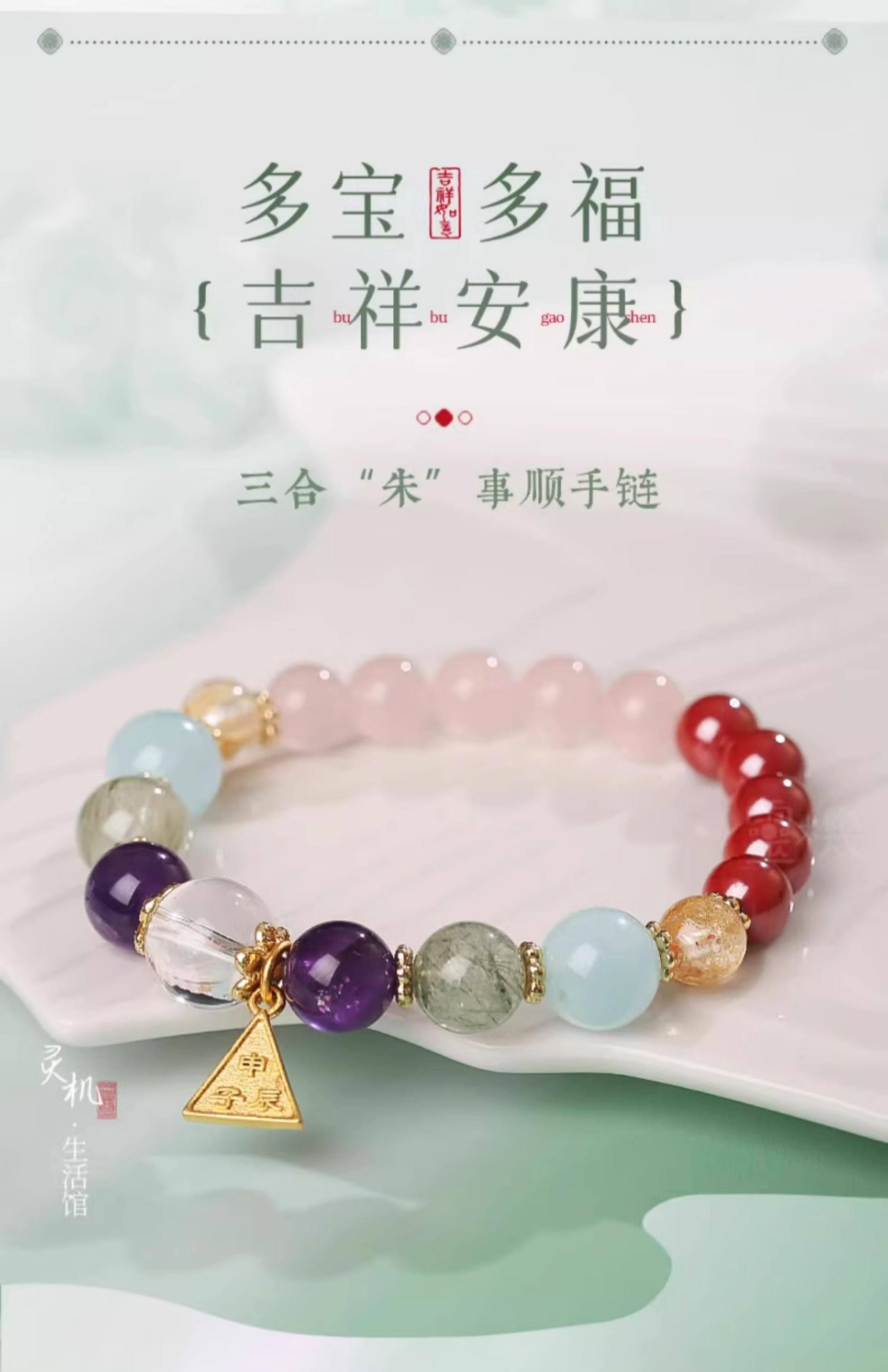 【祈愿吉品】三合朱事顺 七福珍宝 手串手链女