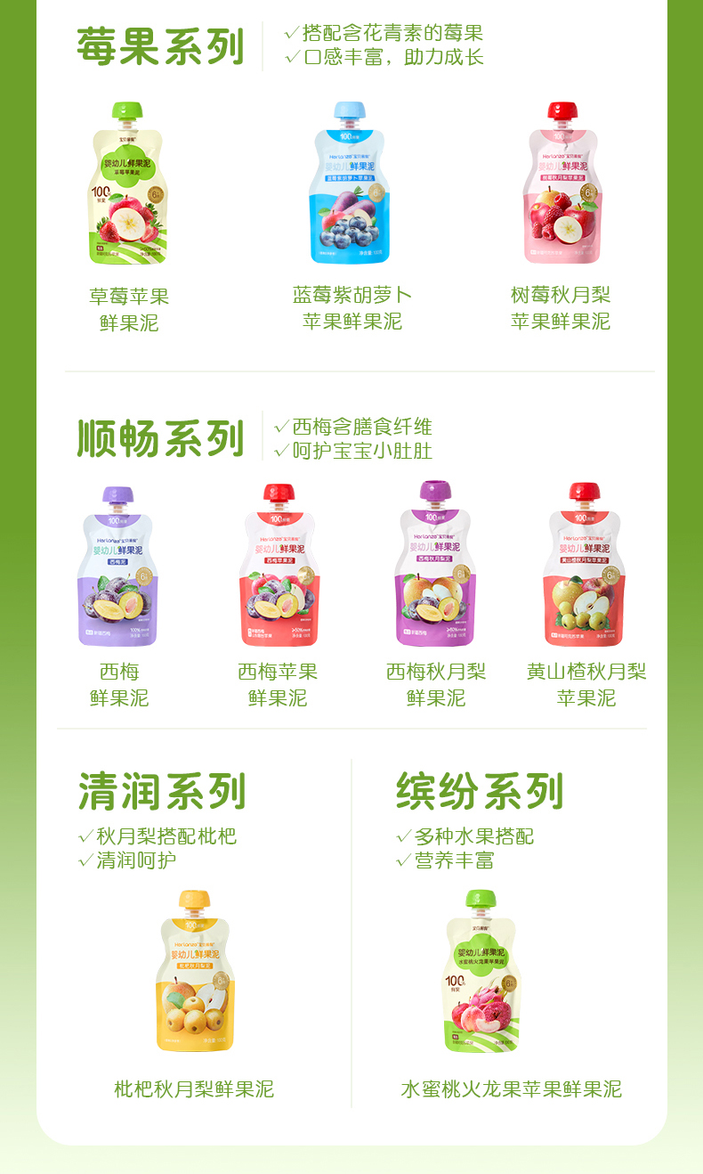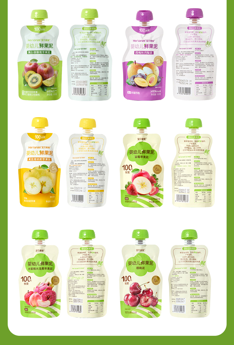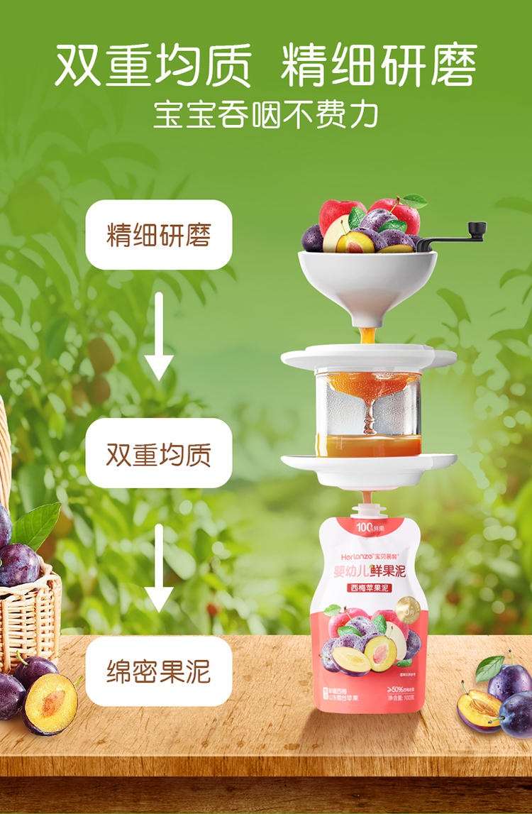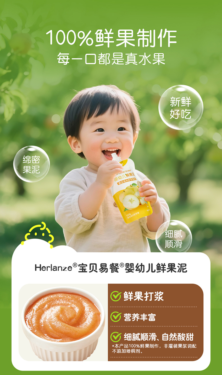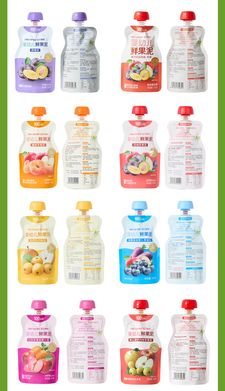 Herlanze宝贝易餐婴幼儿鲜果泥100g 西梅/苹果/蓝苺/蟠桃 多款可选