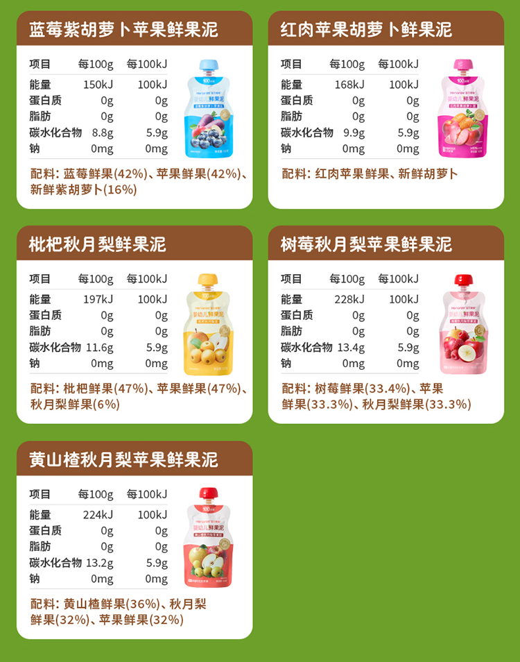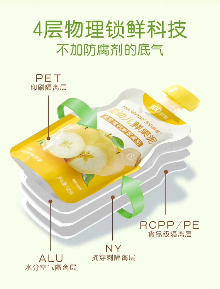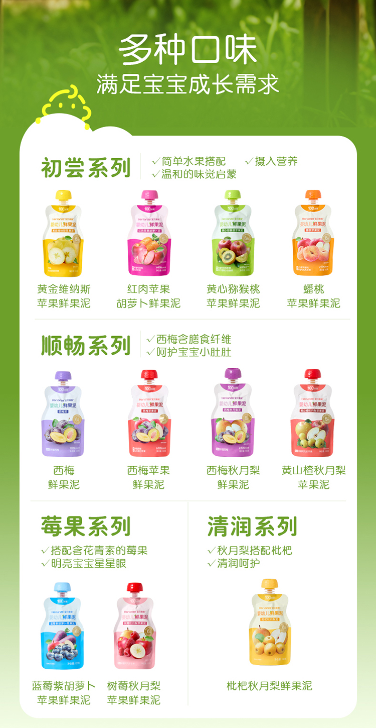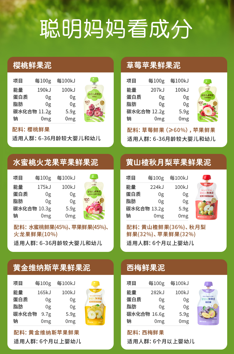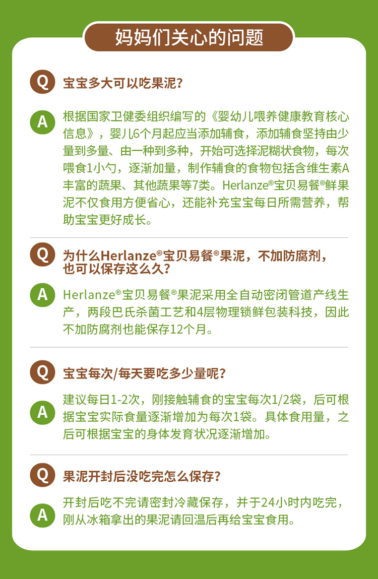 Herlanze宝贝易餐婴幼儿鲜果泥100g 西梅/苹果/蓝苺/蟠桃 多款可选