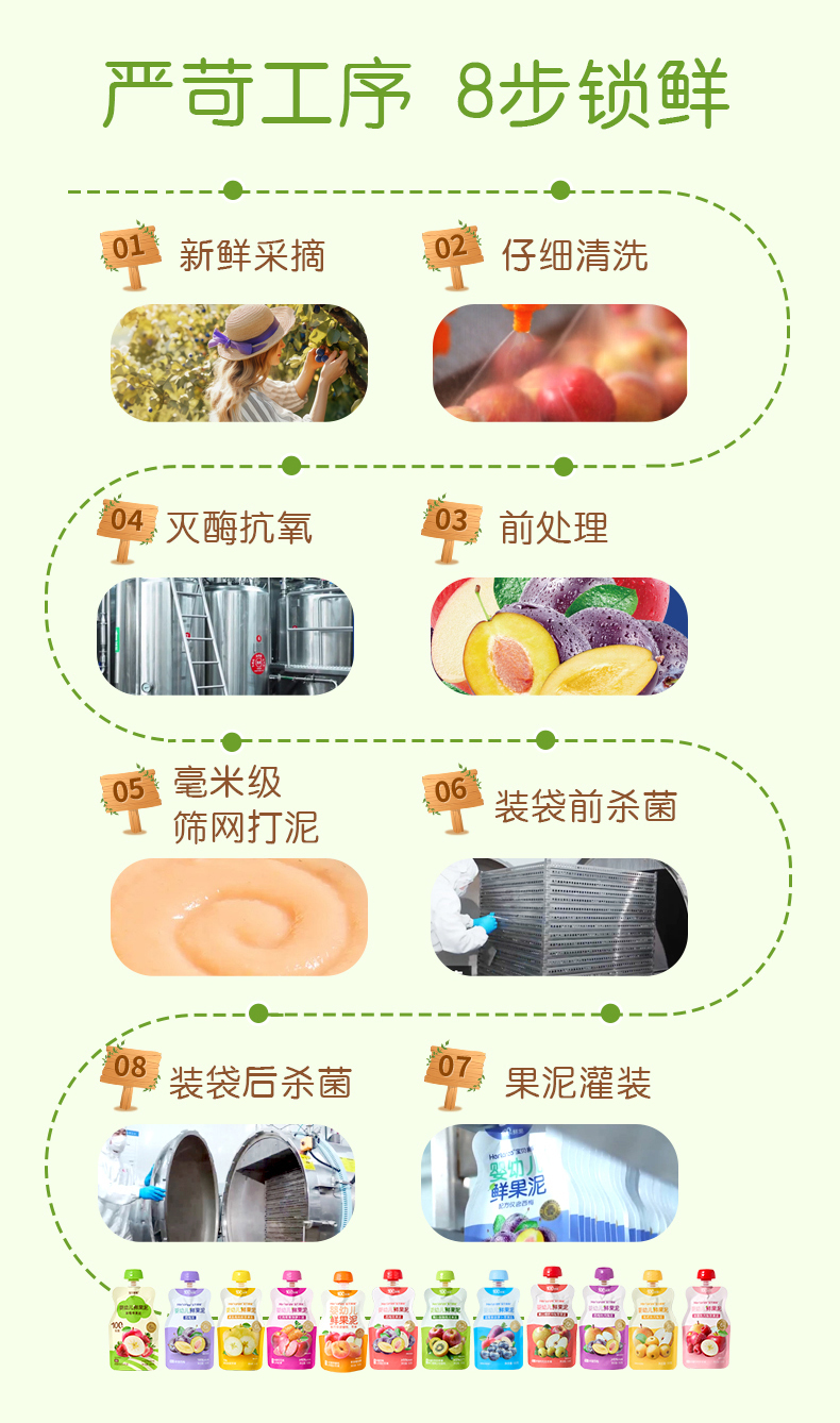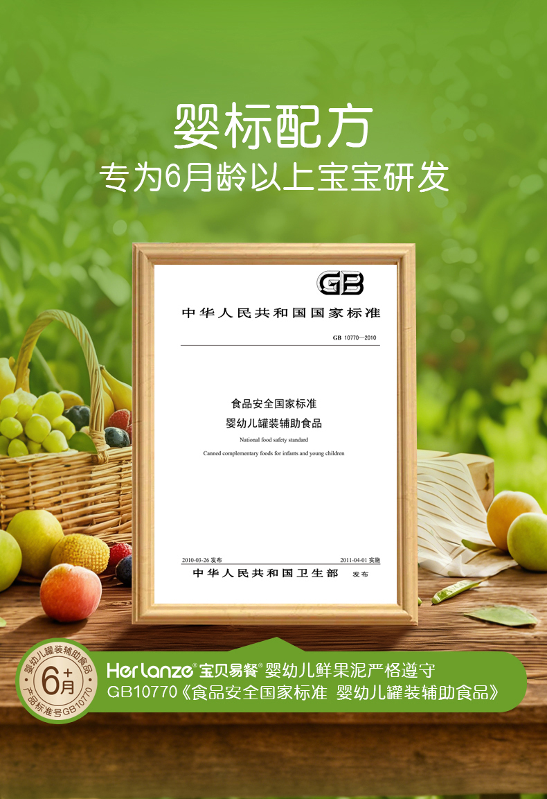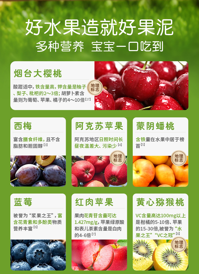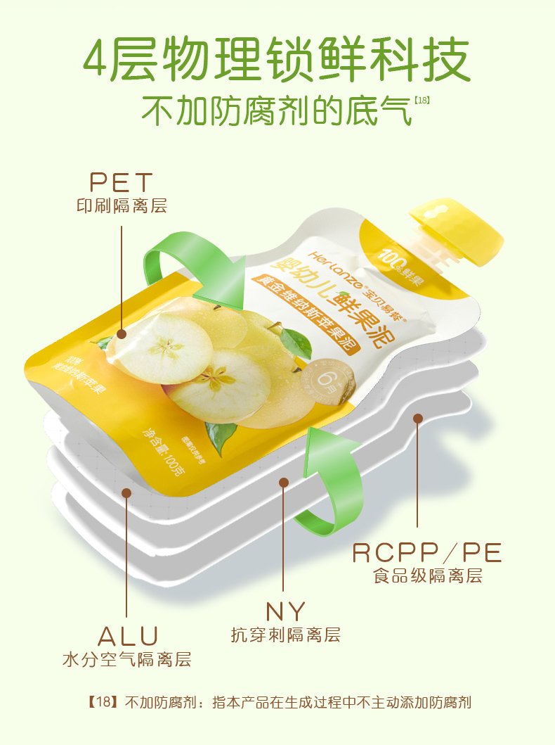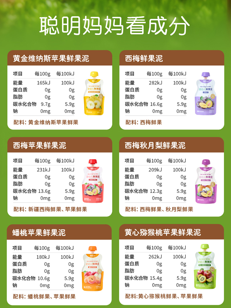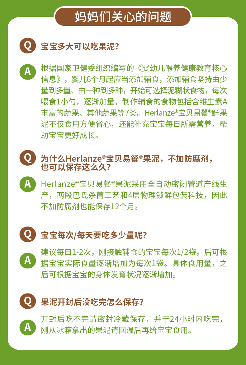 Herlanze宝贝易餐婴幼儿鲜果泥100g 西梅/苹果/蓝苺/蟠桃 多款可选