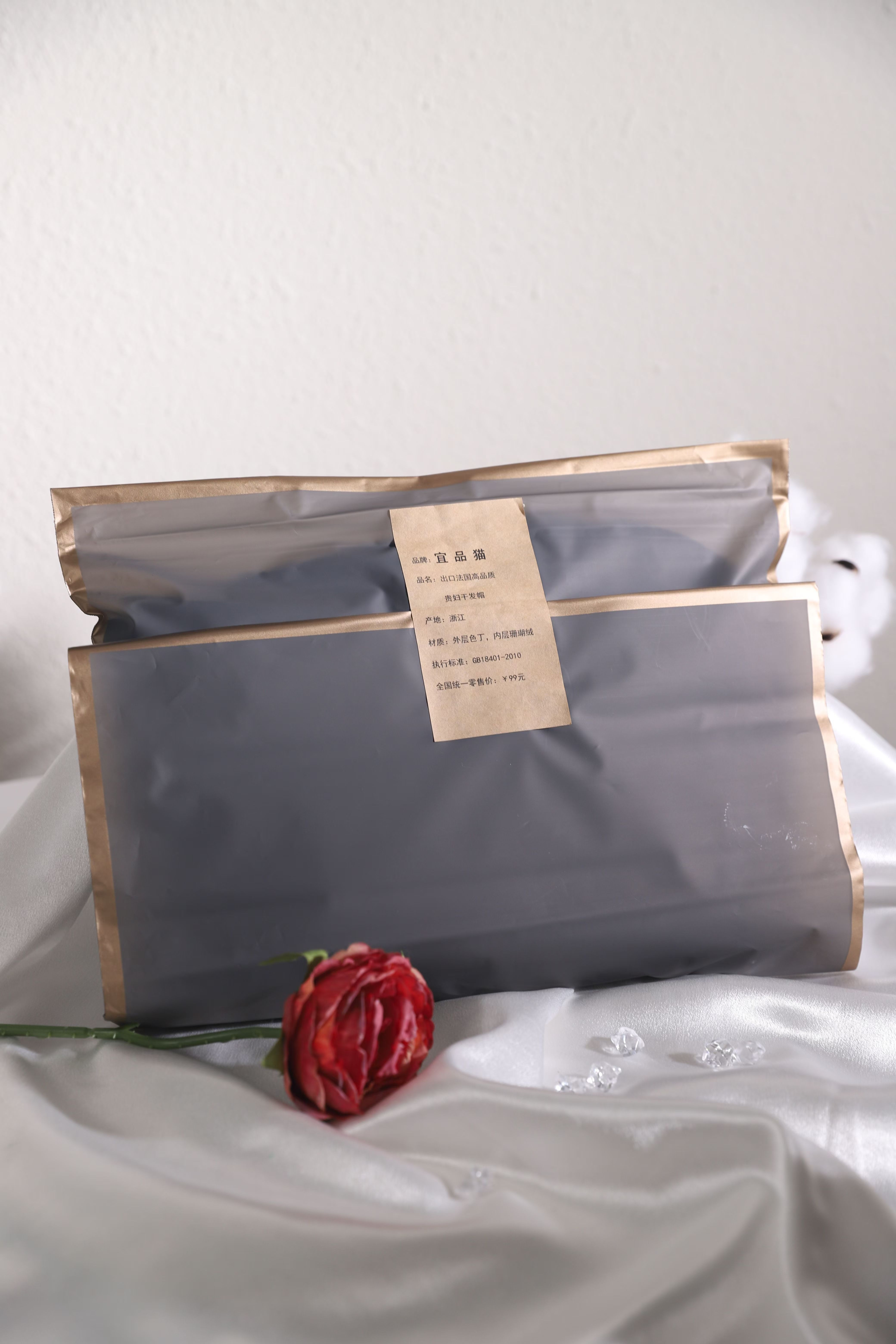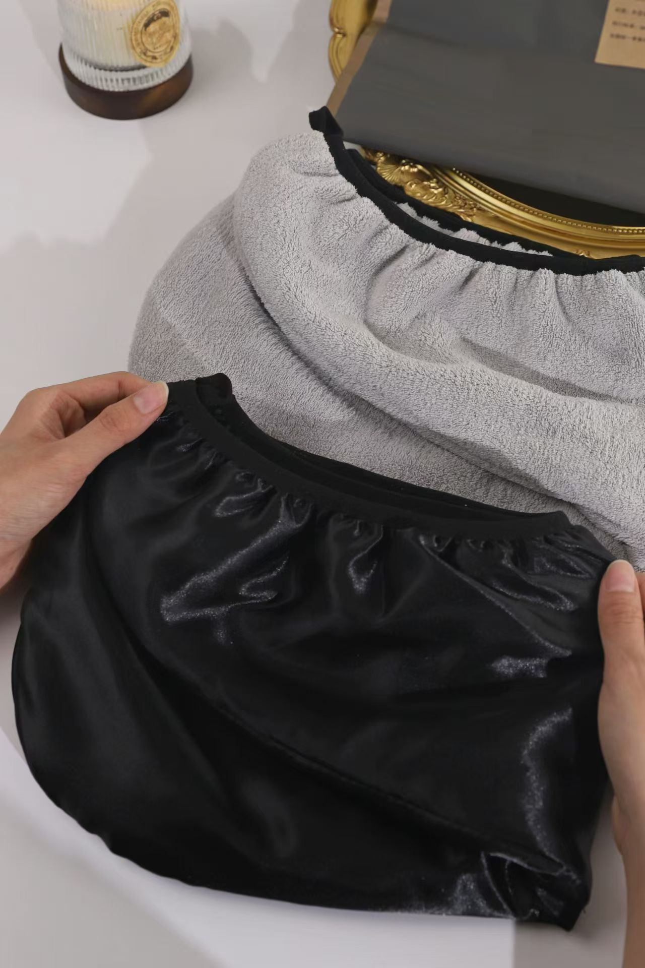 外层奢华仿缎面,丝滑触感 内层黑科技吸水面料,瞬吸速干
