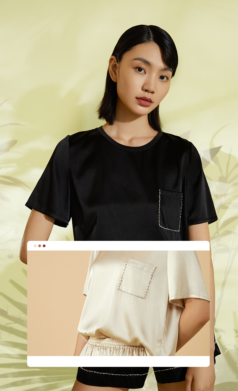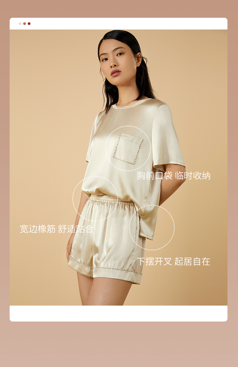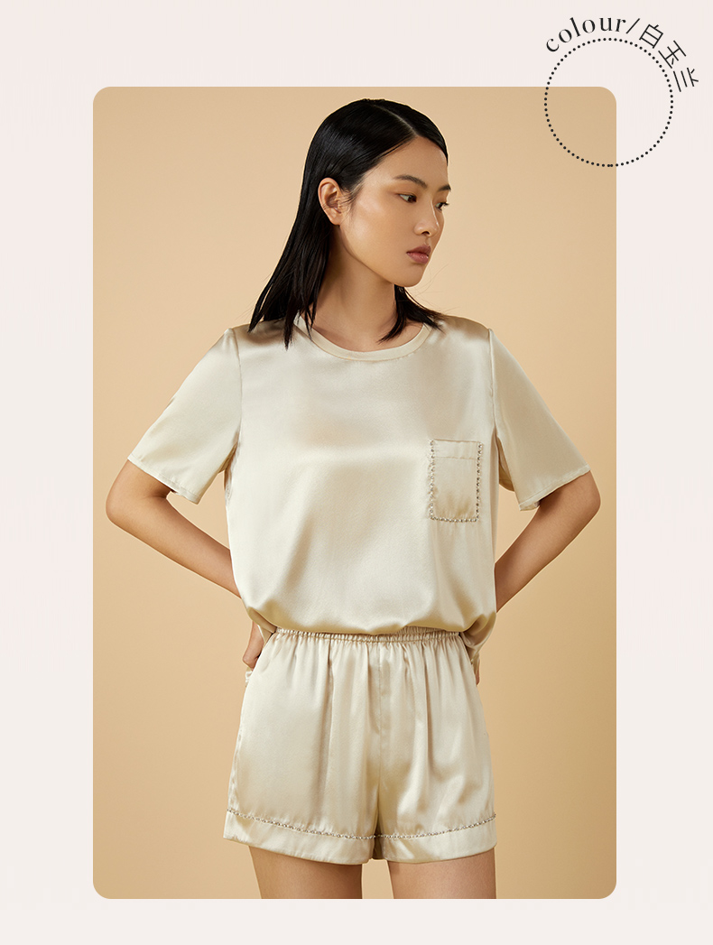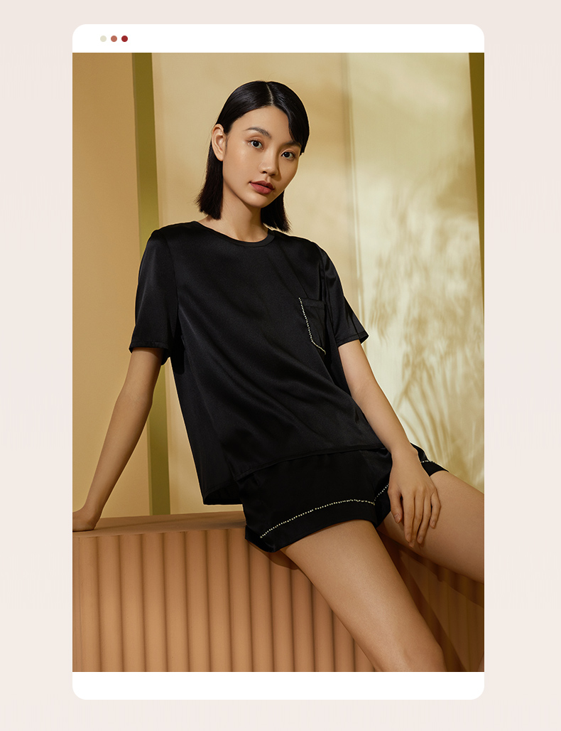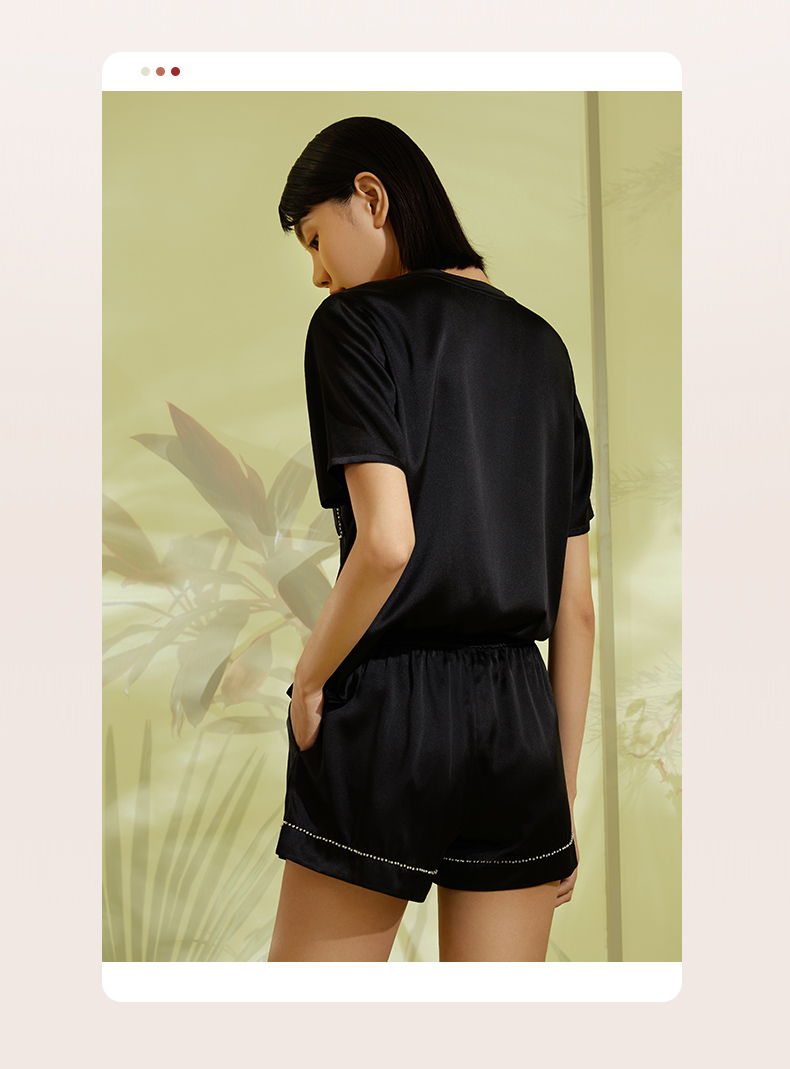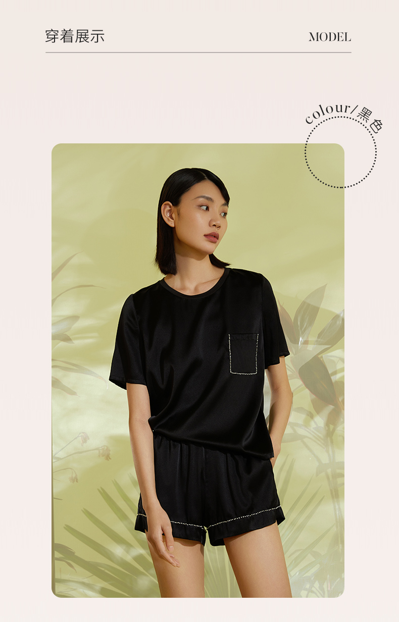 金三塔桑蚕丝弹力缎女士舒适凉爽可外穿钉珠时尚衣裤套家居服新品 YSFCA404
