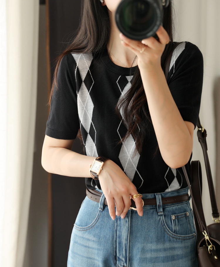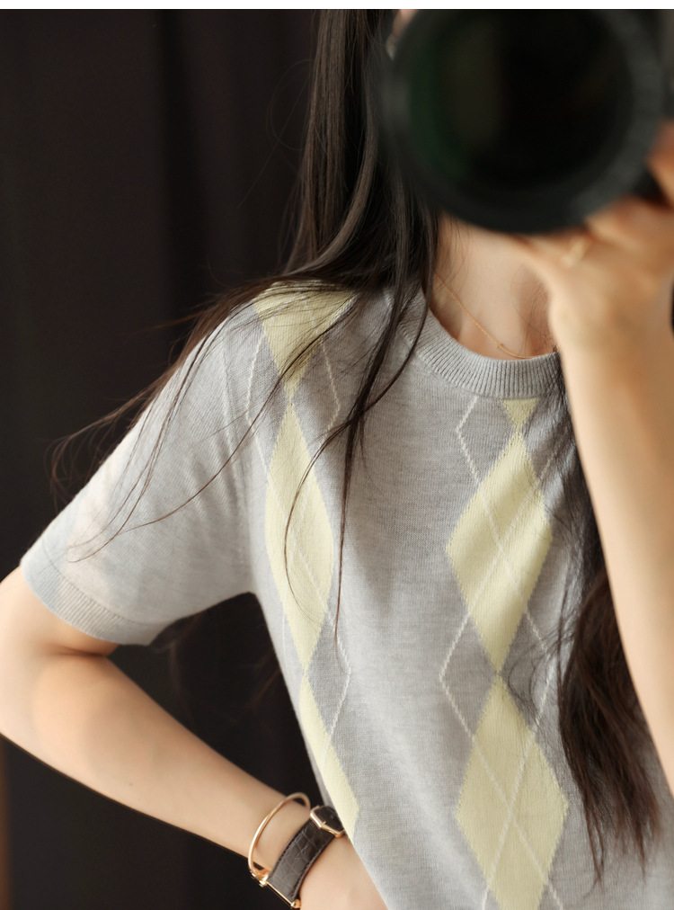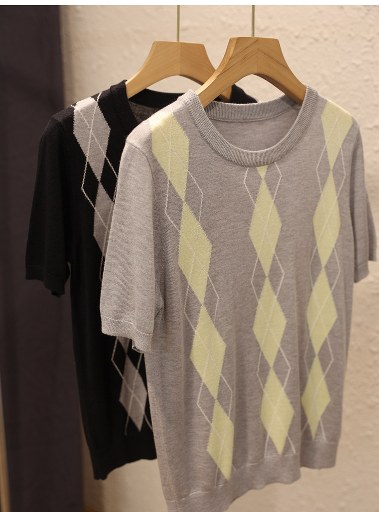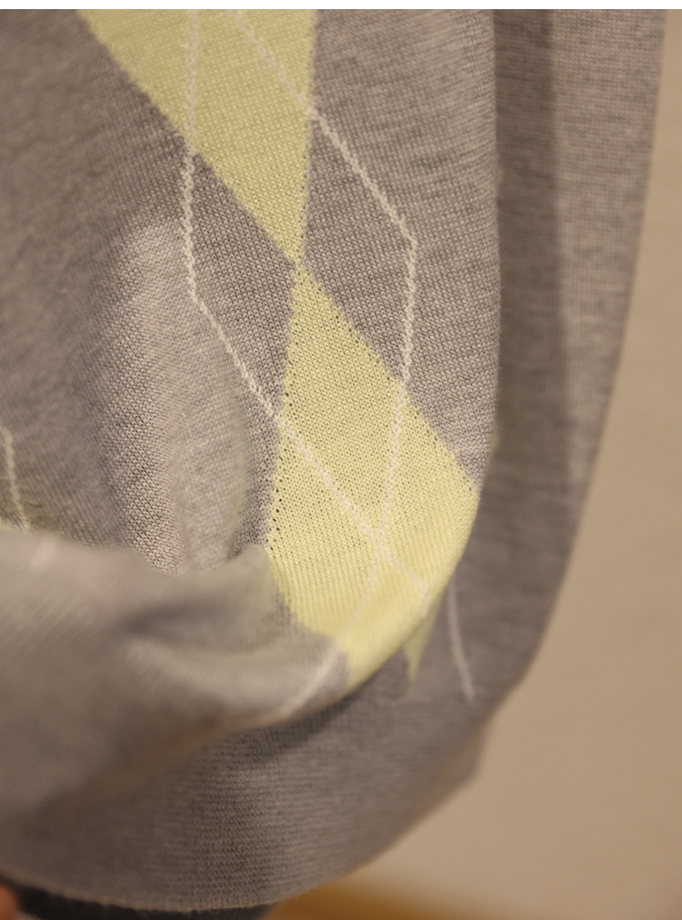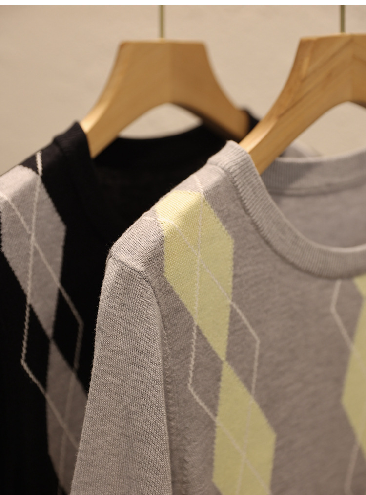 宽松小随身版,卡码往大拍, 英伦风菱格撞色提花,视觉丰富,配色养眼。