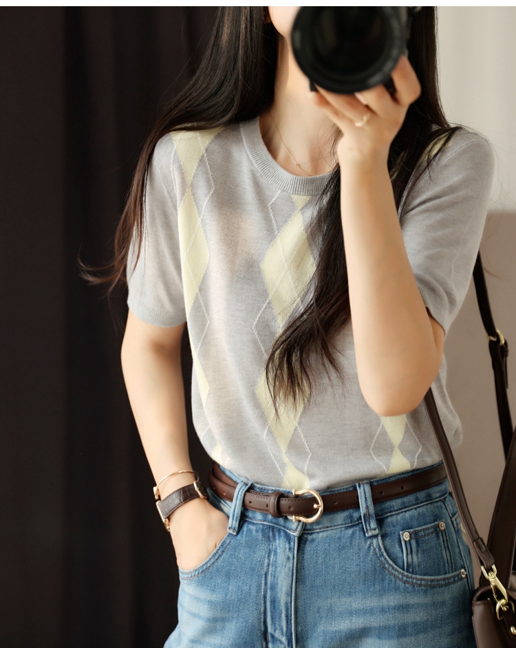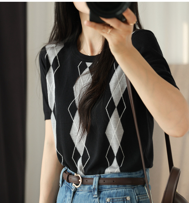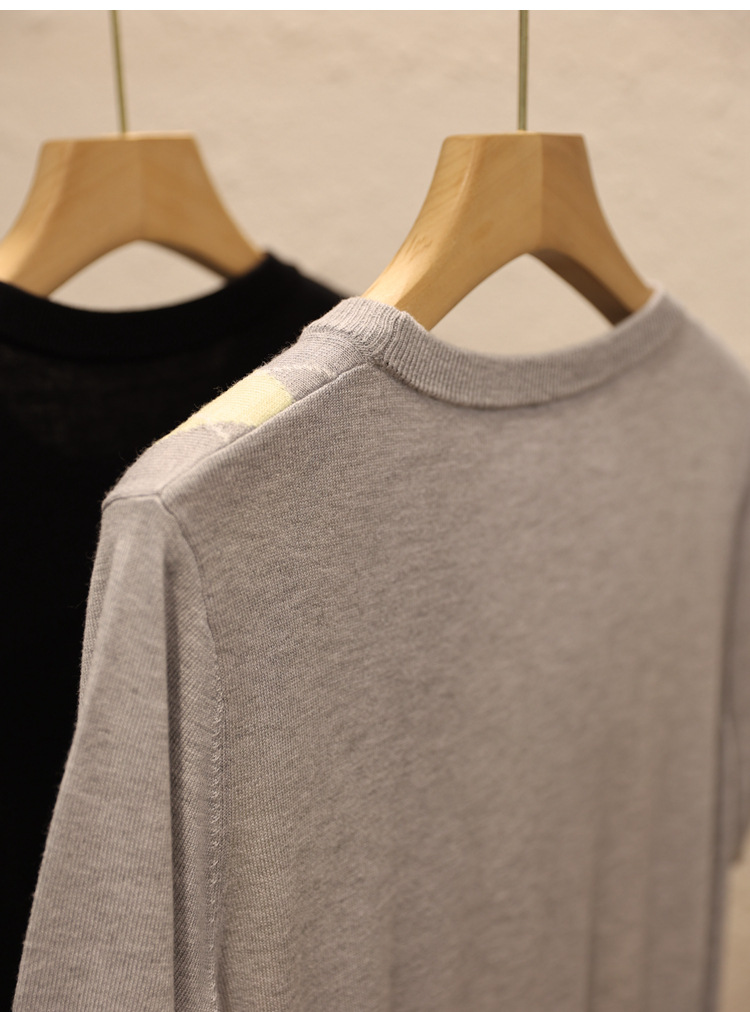 结合菱格提花,比普通的光板针织好看许多,宽松有度,上身显瘦,螺纹领口,耐穿耐洗,细节讲究。