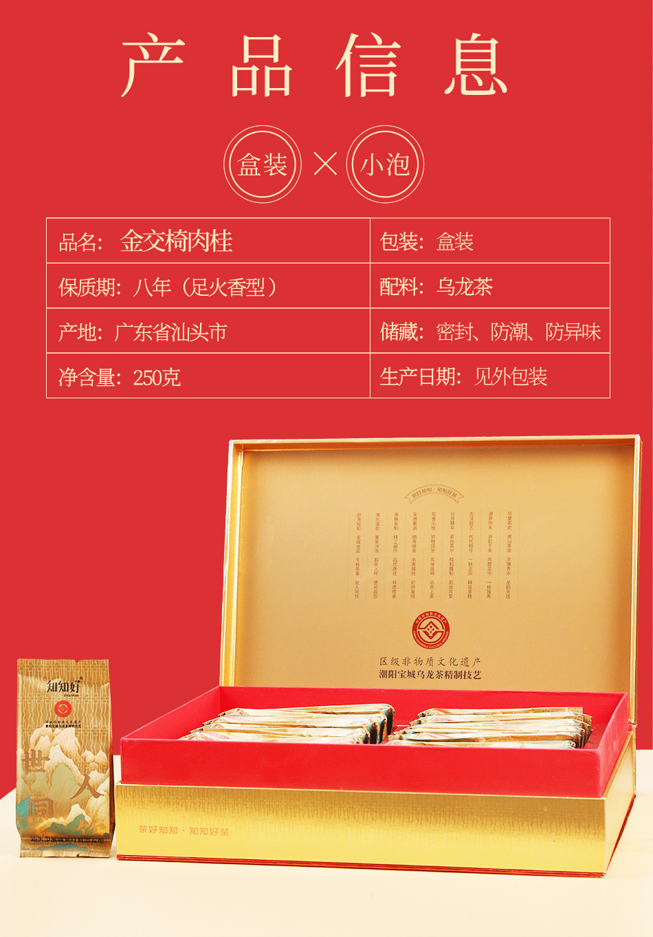 宝城知知好金交椅肉桂岩茶250克小泡装礼盒装高档送礼Z101