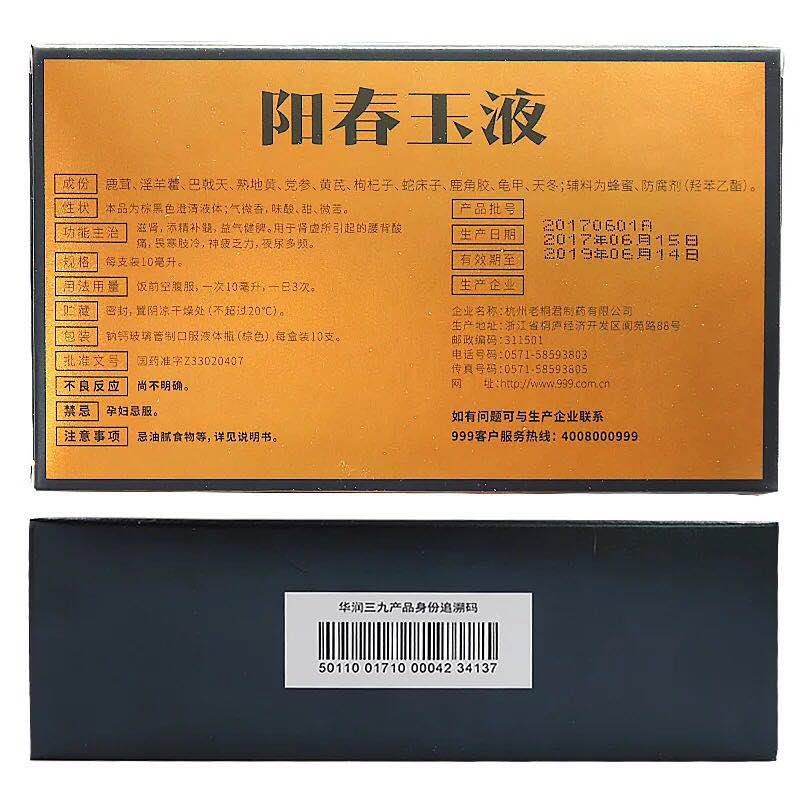 999阳春玉液10ml/支*10支装添精滋肾补髓 用于肾虚引起神疲乏力sz
