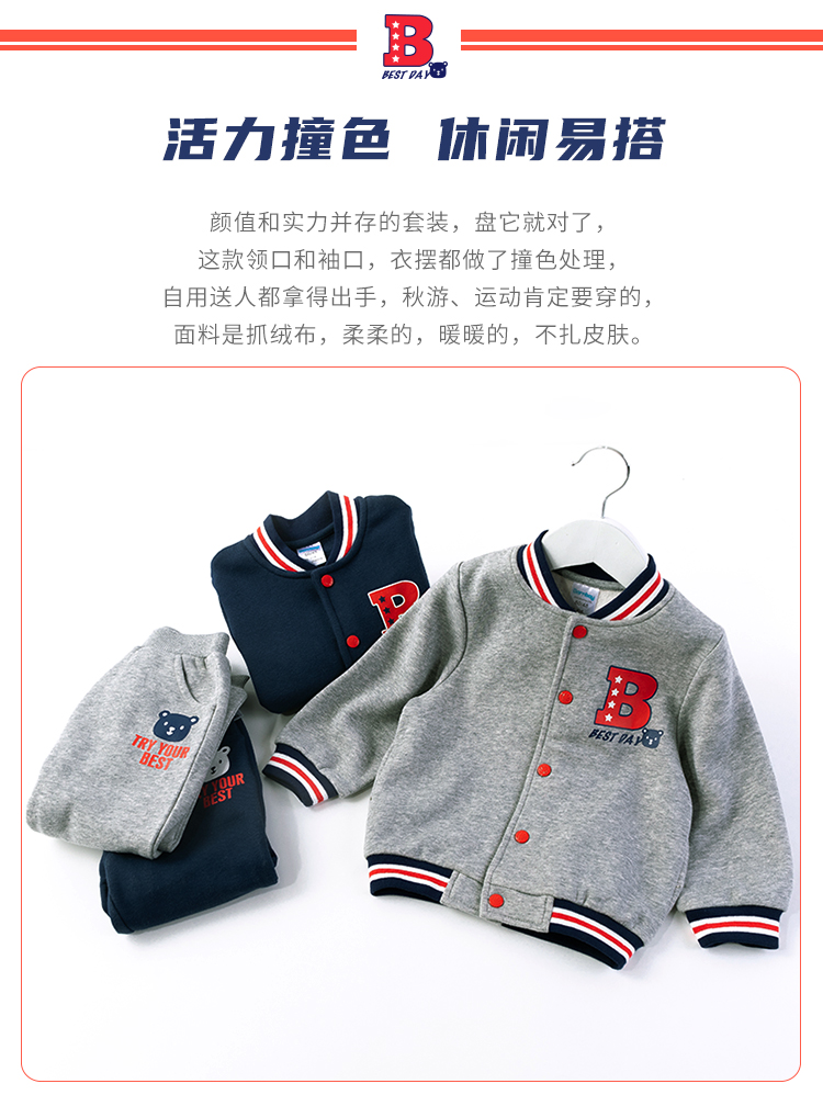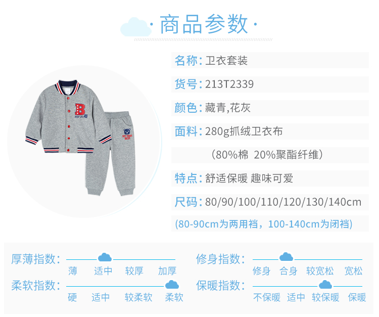 贝贝怡男童春秋长袖运动卫衣套装213T2339
