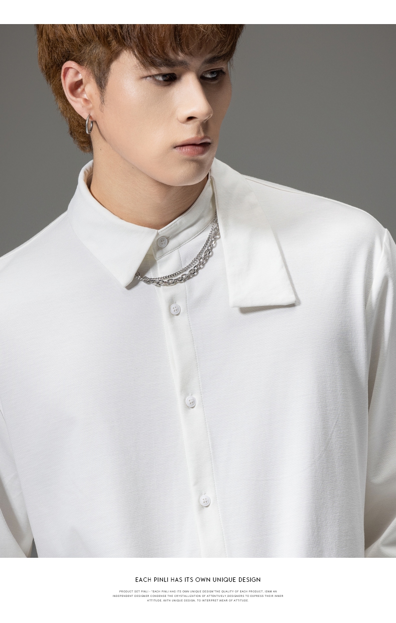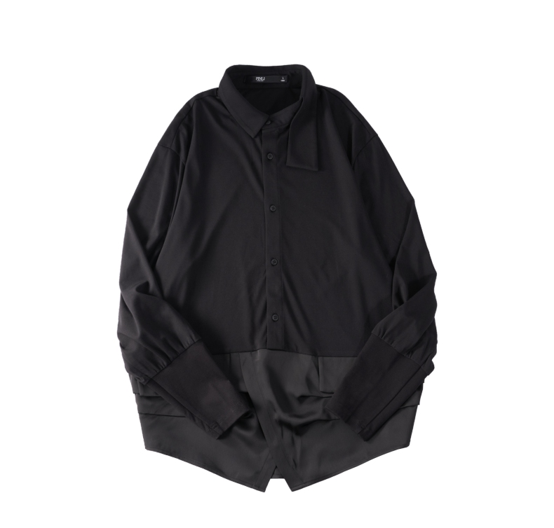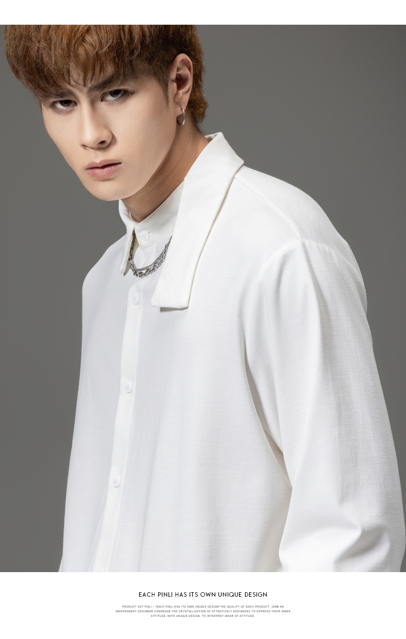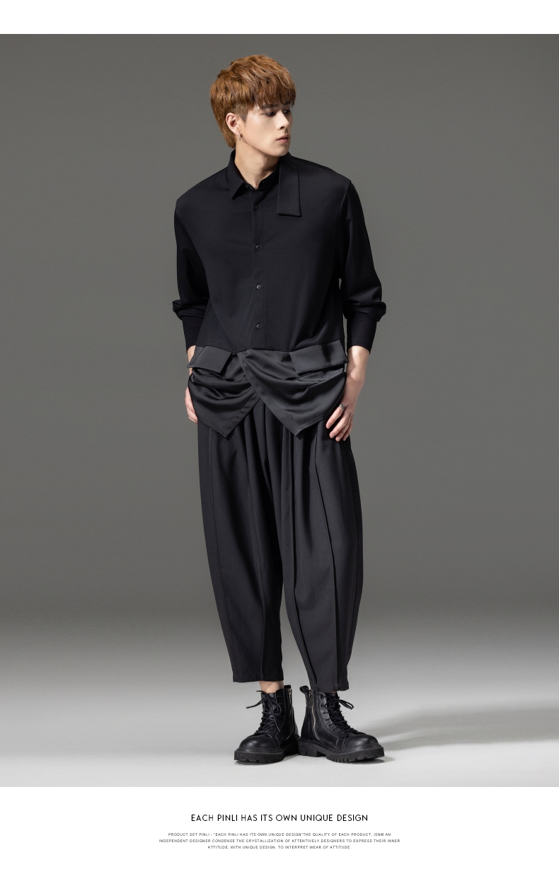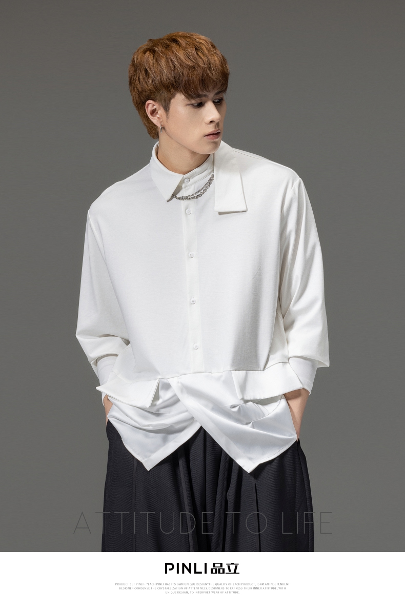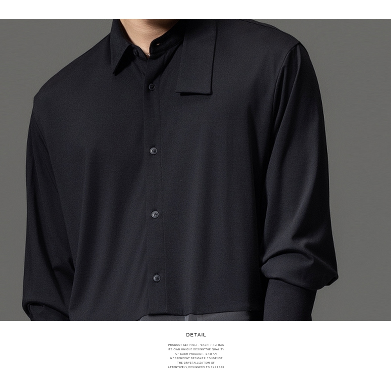 PINLI品立裁魂秋季新品尖领纯色长袖衬衫拼接休闲潮牌男衬衣BC233113005