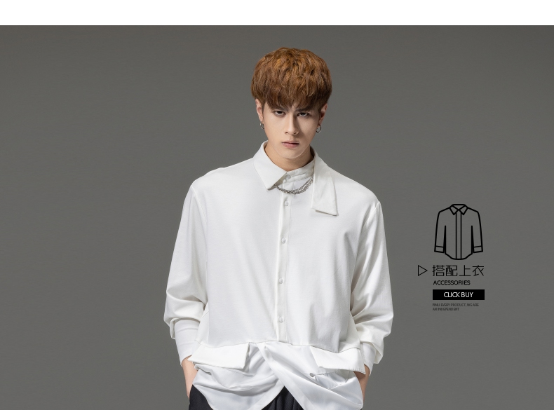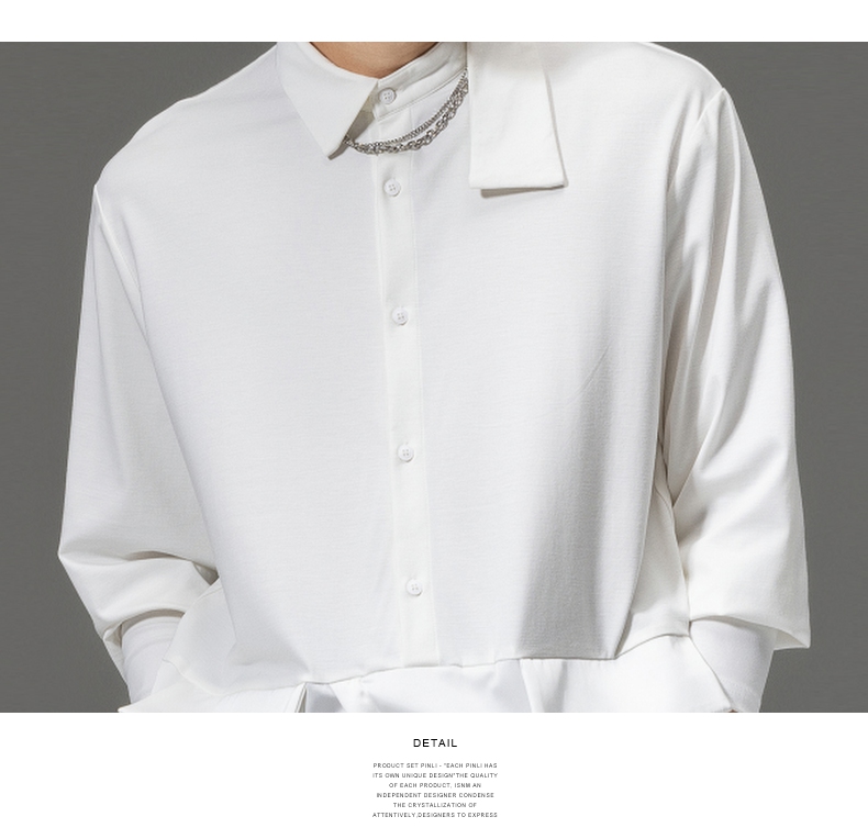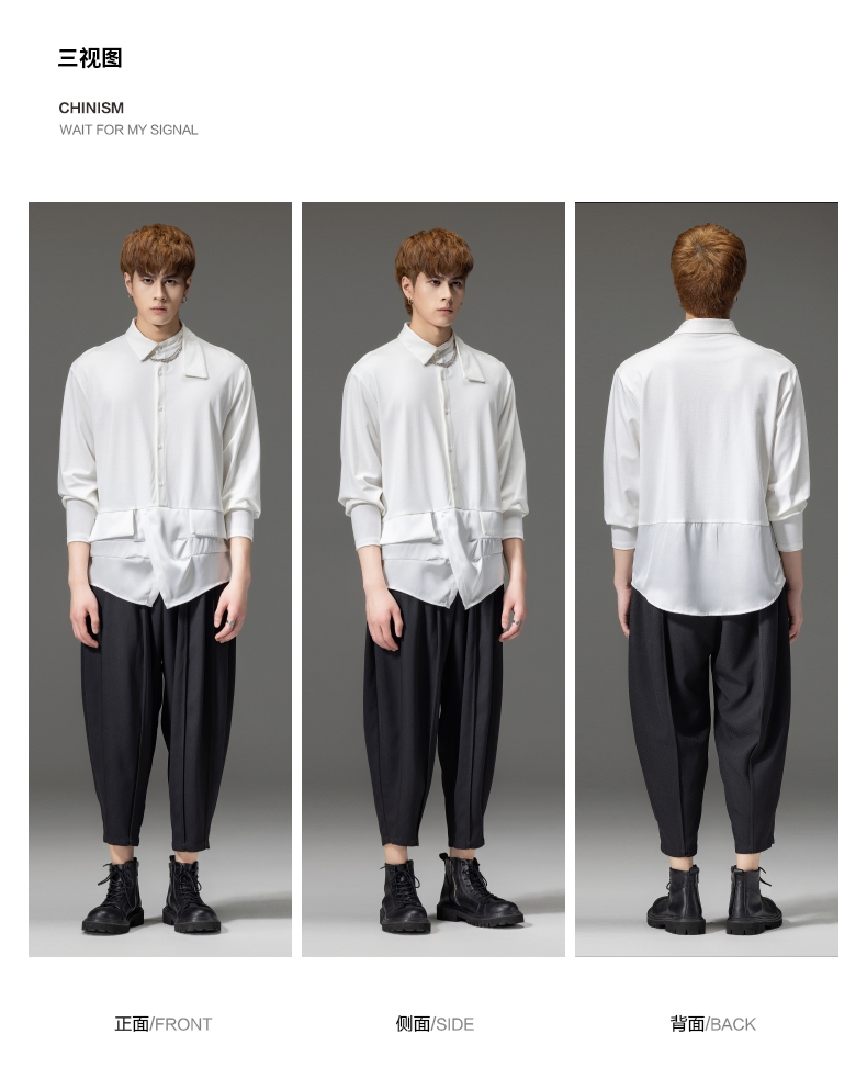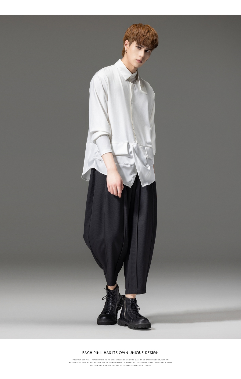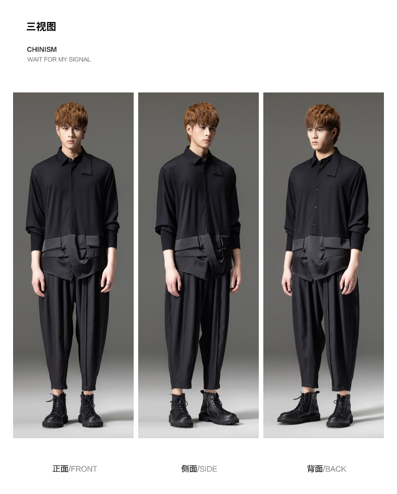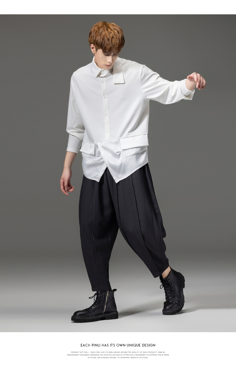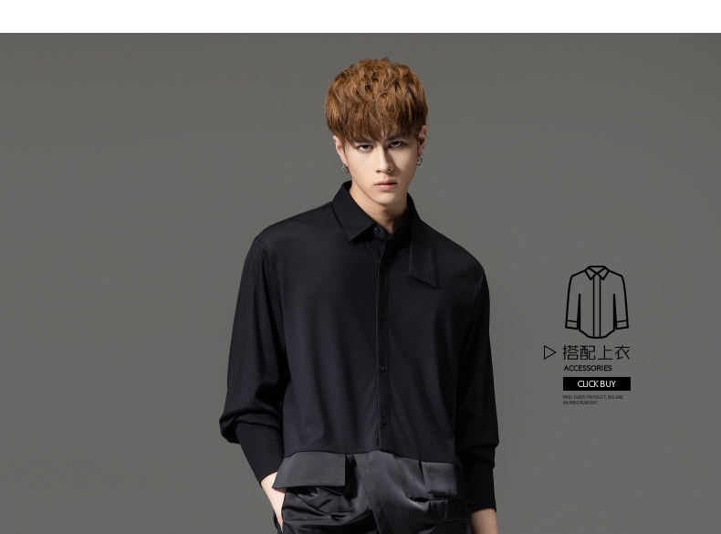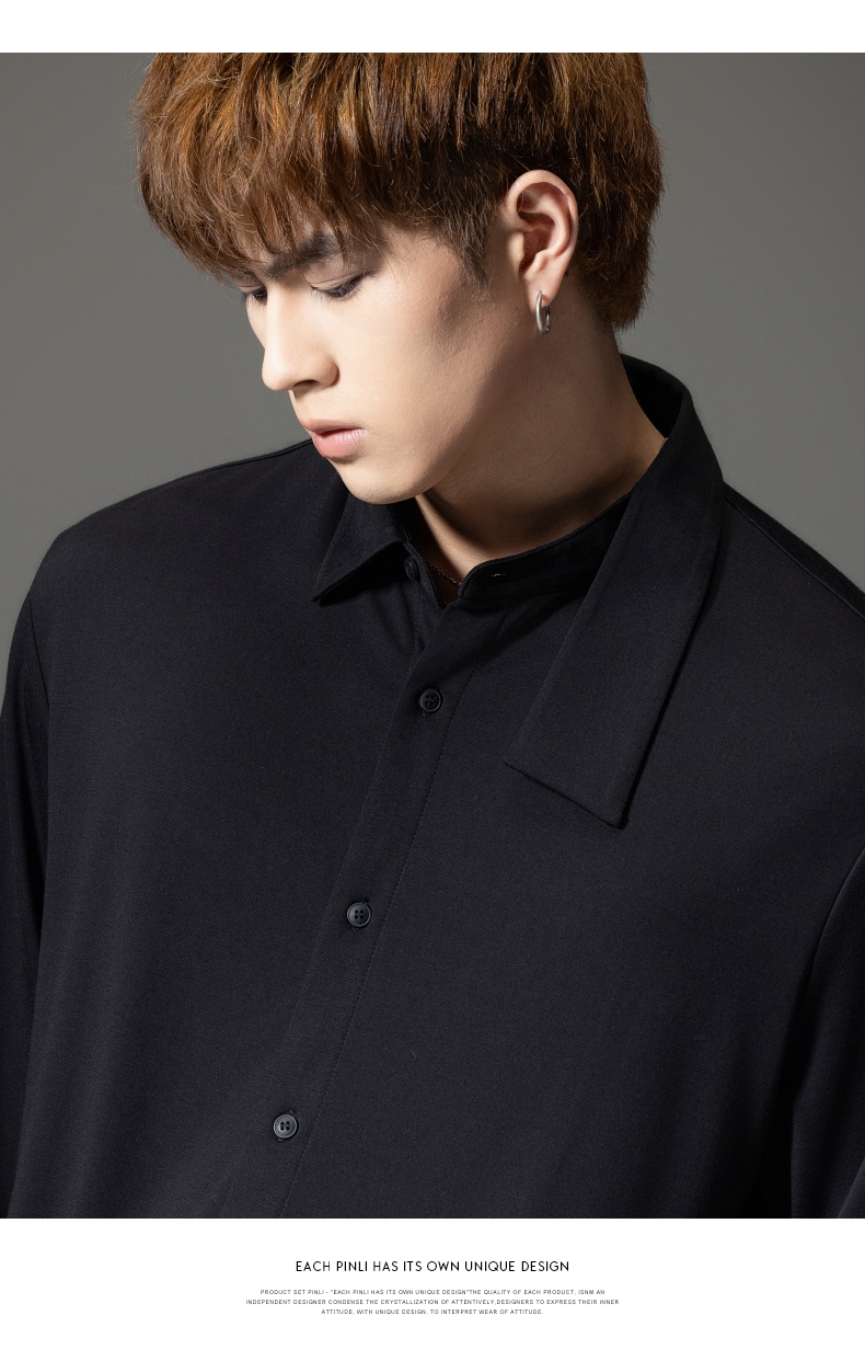 PINLI品立裁魂秋季新品尖领纯色长袖衬衫拼接休闲潮牌男衬衣BC233113005