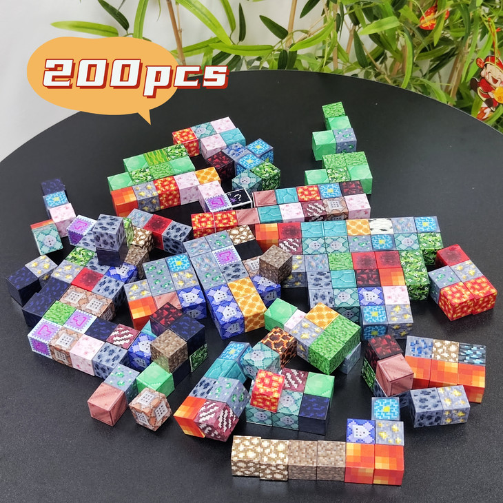 到手200pcs!! 玩法超多!!不仅可以拼搭游戏的世界,也可以拼搭数字,字母等等..... 直接要娃发挥自己的想象力!随机图案磁力积木!