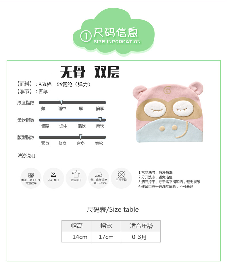 【优棉当道 透气吸汗】婴儿帽子冬季棉质新款宝宝帽无骨双层卡通造型春秋新生儿胎帽