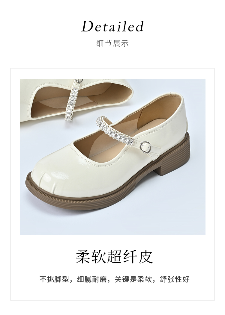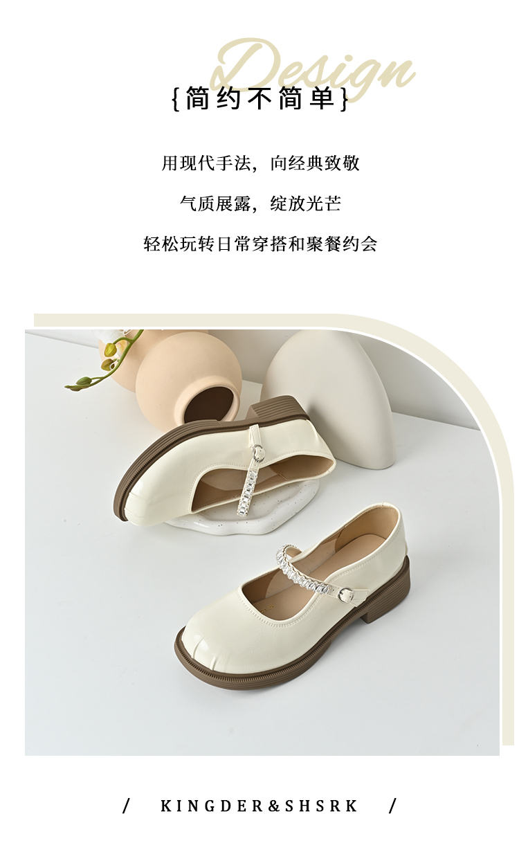 经典鲨2025秋季新品时尚百搭圆头水钻舒适通勤玛丽珍单鞋女KW119-537131
