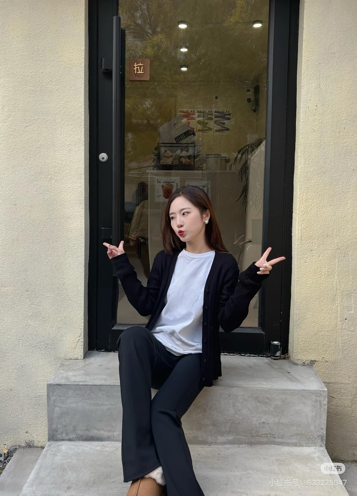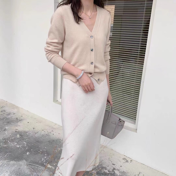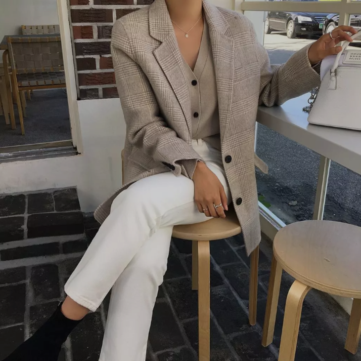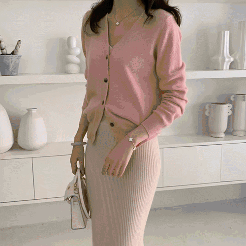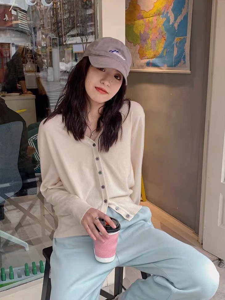 扣上纽扣,当成V领针织衫穿,更显脸小精致,浑身散发迷人女人味。